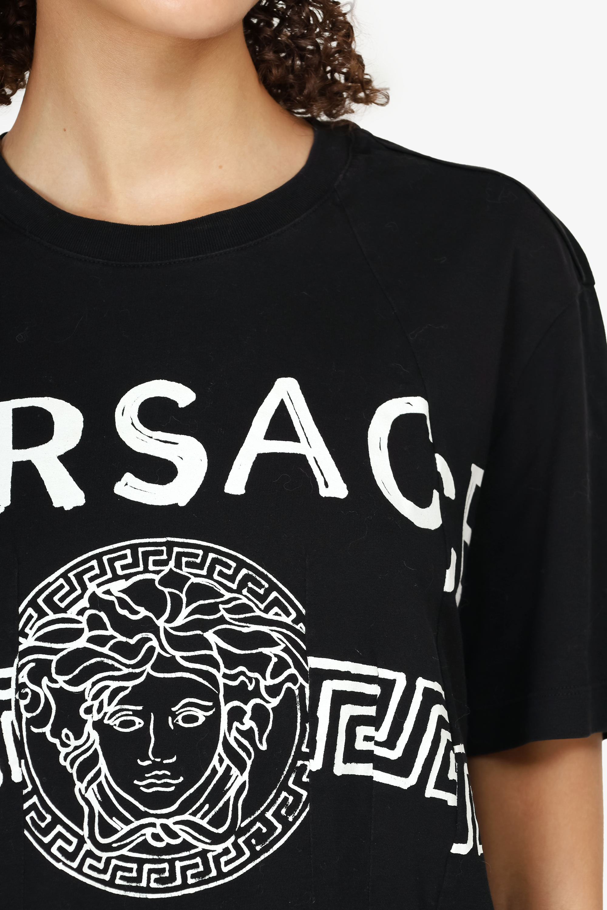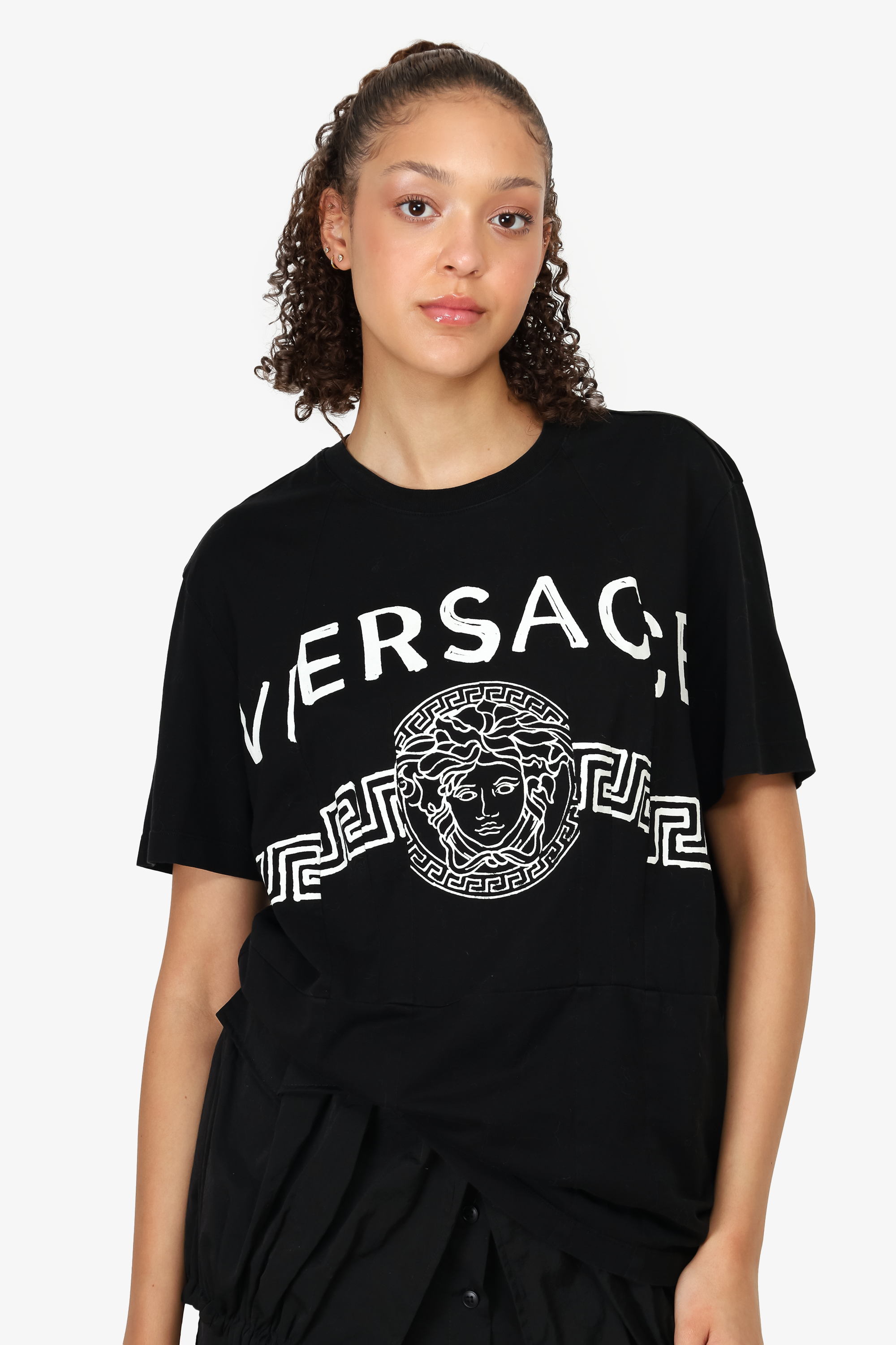 Refresh availabilityVersace Black/White Medusa Print T-Shirt. Pull-on. Round neckline. Short sleeve. Tonal stitching.