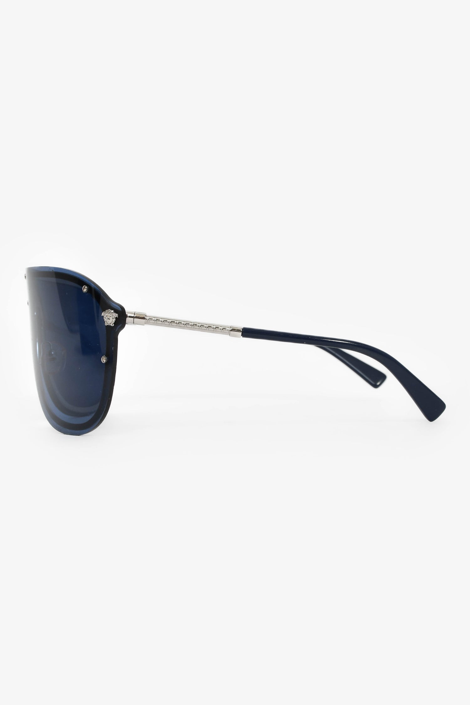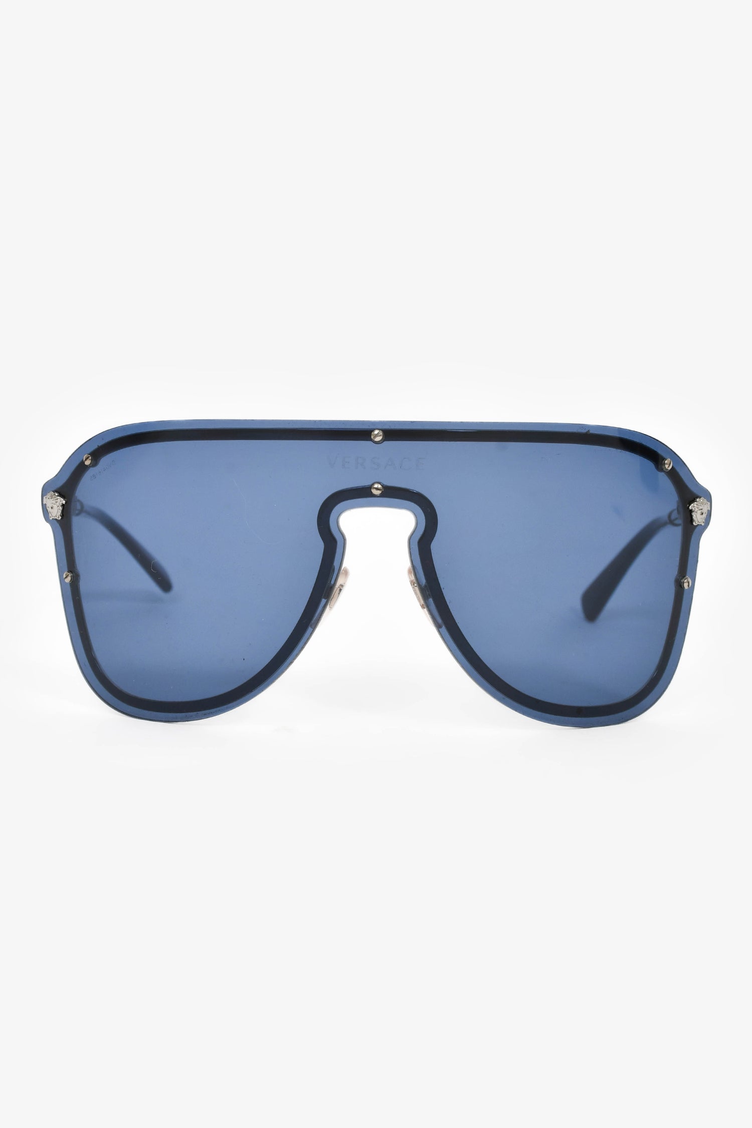 Refresh availabilityVersace Blue/Silver Toned '#Frenergy Visor' Sunglasses. Adjustable nose pads. Silver-tone hardware.