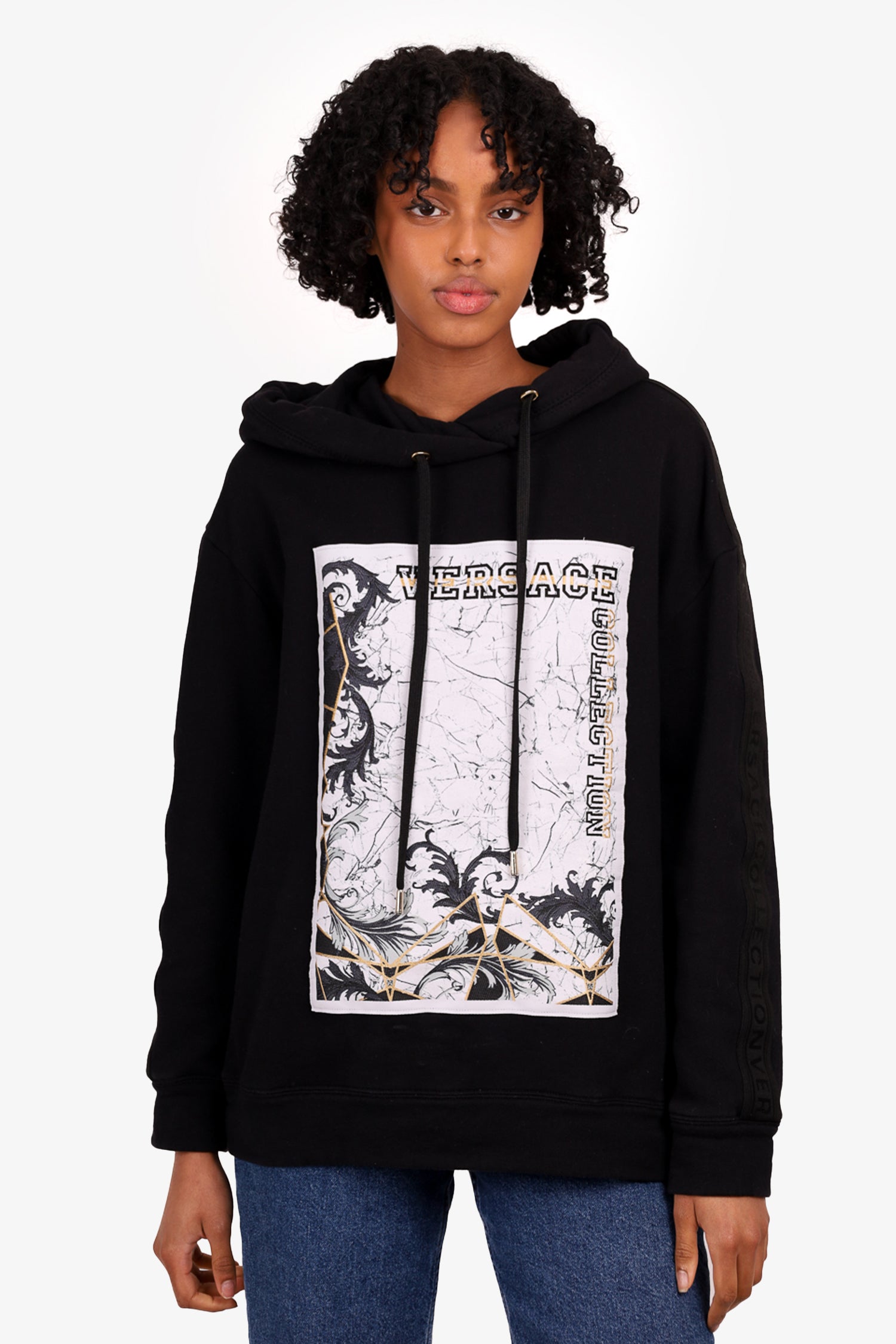 Refresh availabilityVersace Collection Black Printed Hoodie. Pull-over. Unlined. Tonal stitching. Gold-tone hardware.
