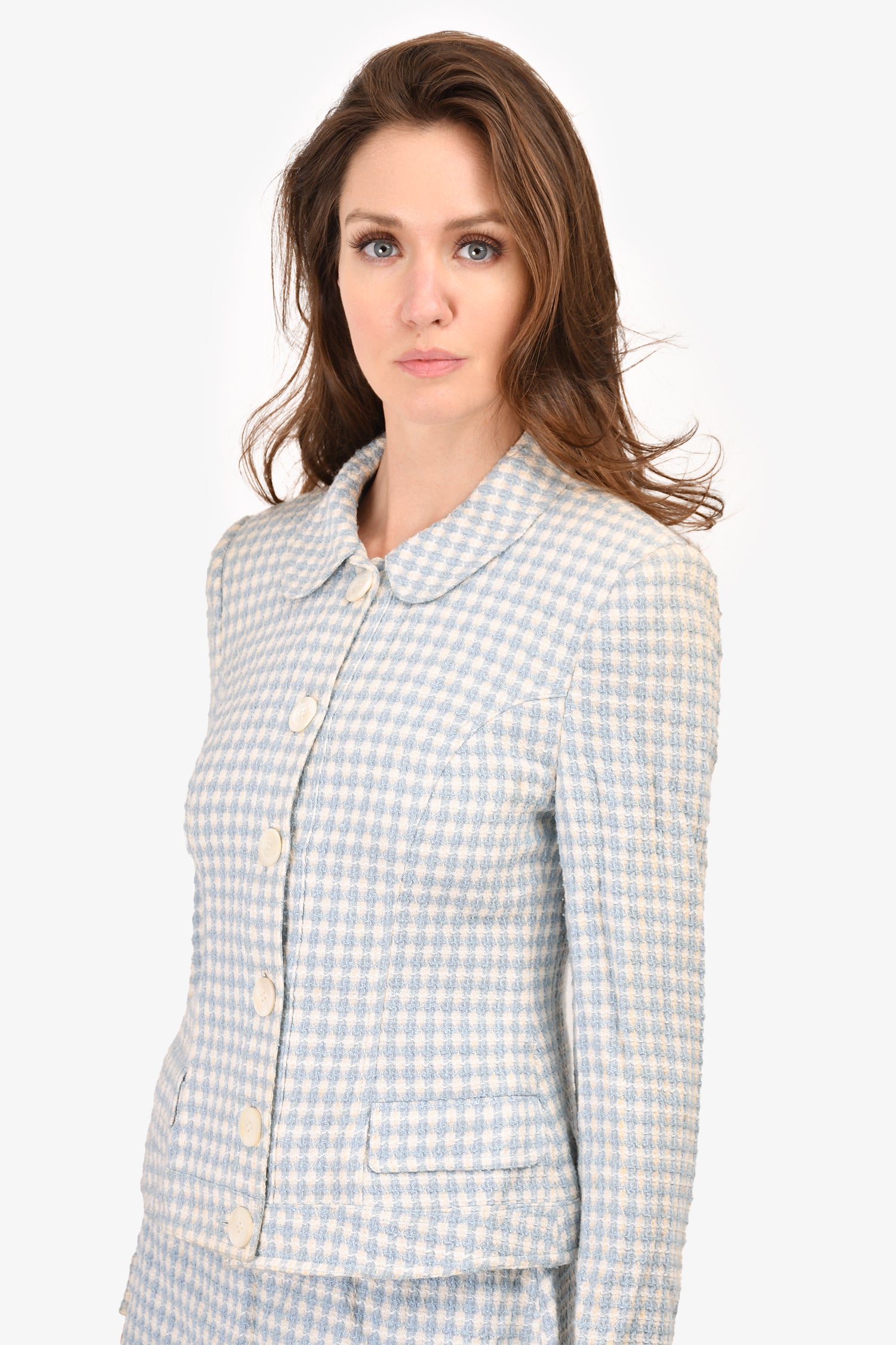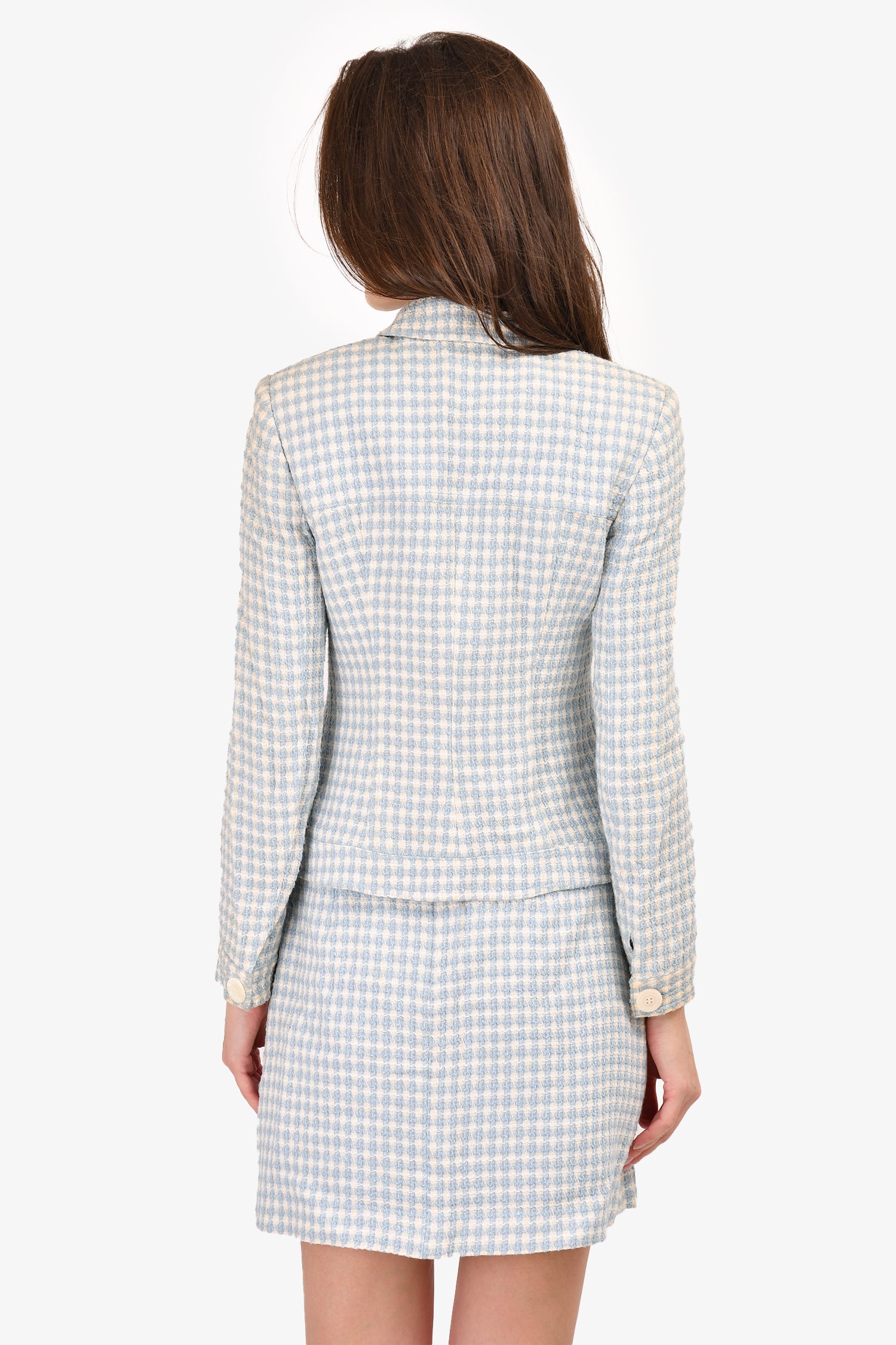 Versace Couture Blue/Cream Tweed Jacket/Skirt Set Size 42