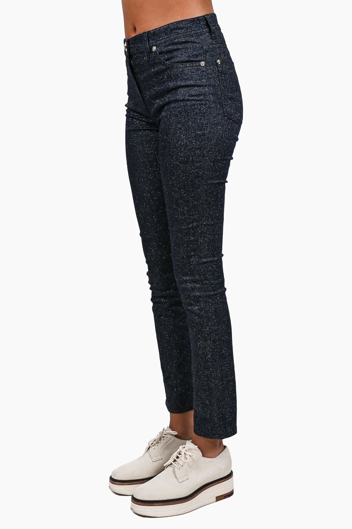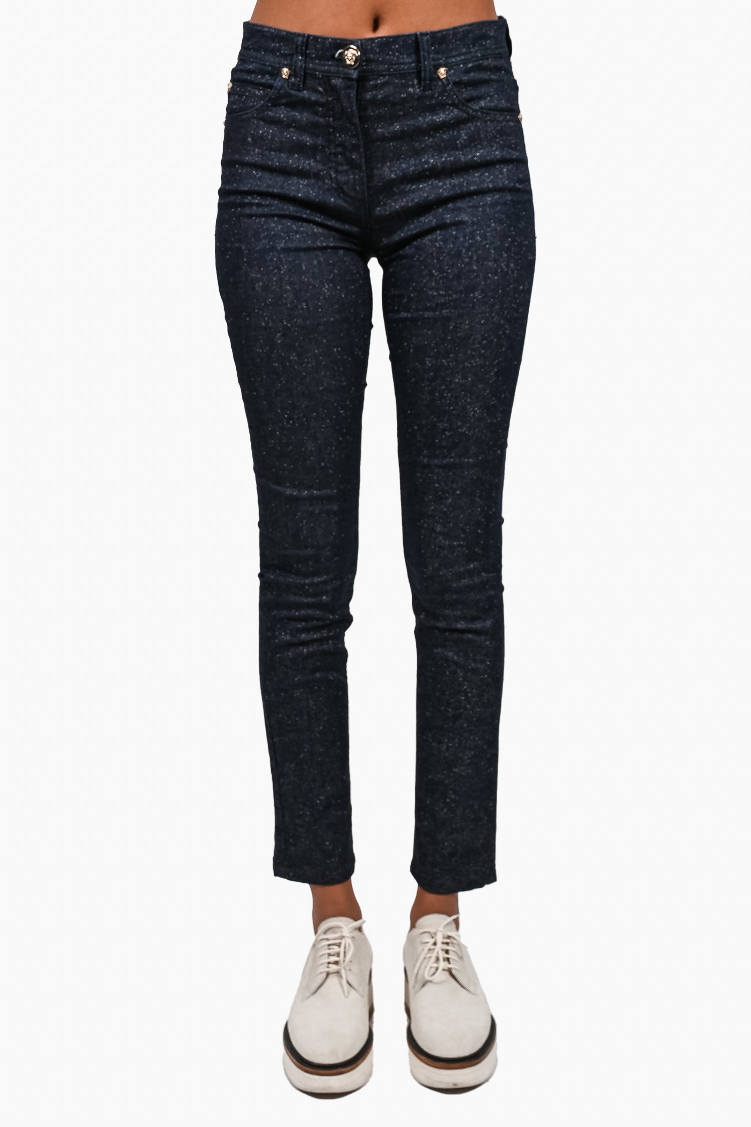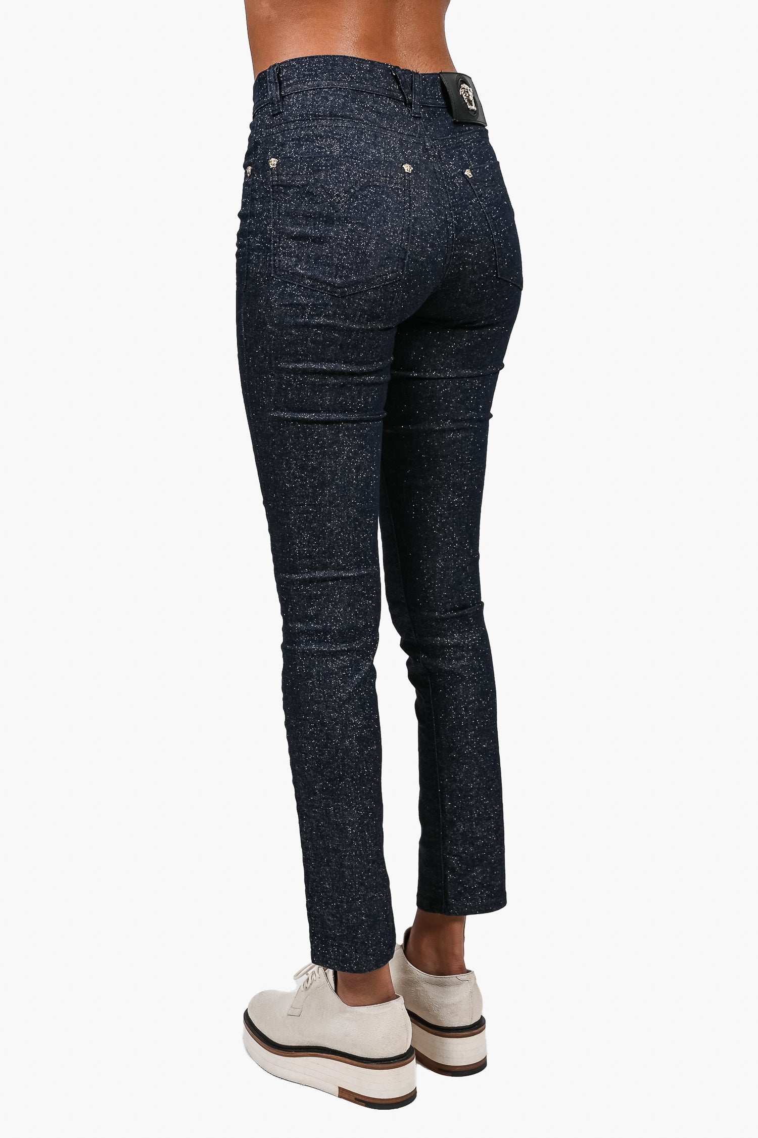 Versace Dark Blue Glitter High Waisted Jeans w/ Gold Medusa Buttons sz 24