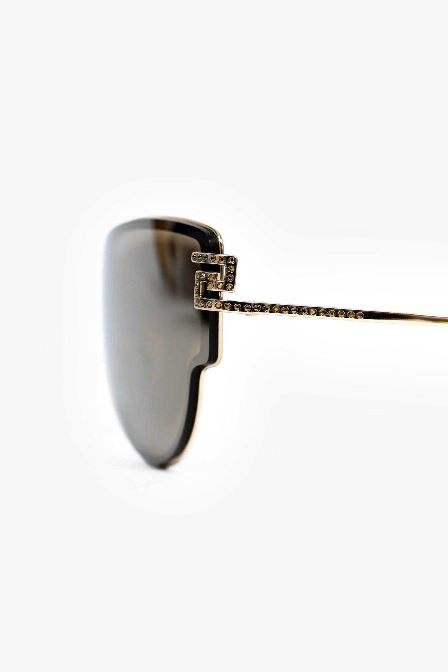 Versace Gold Mirrored Lens Crystal Side Sunglasses
