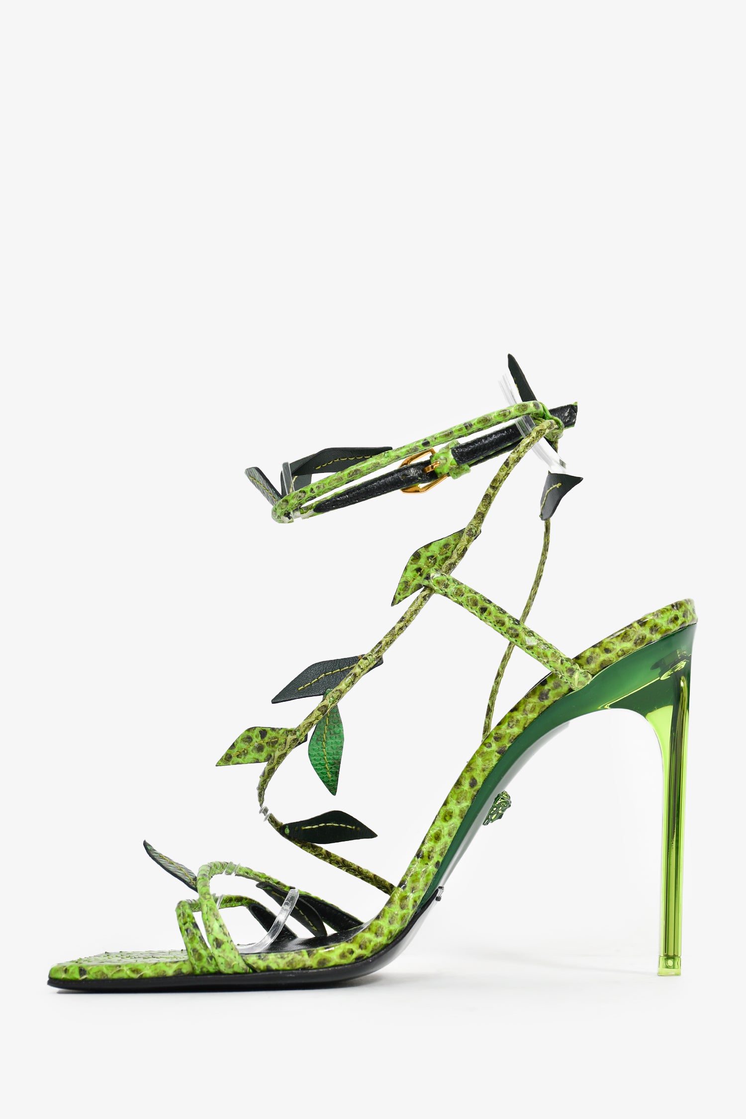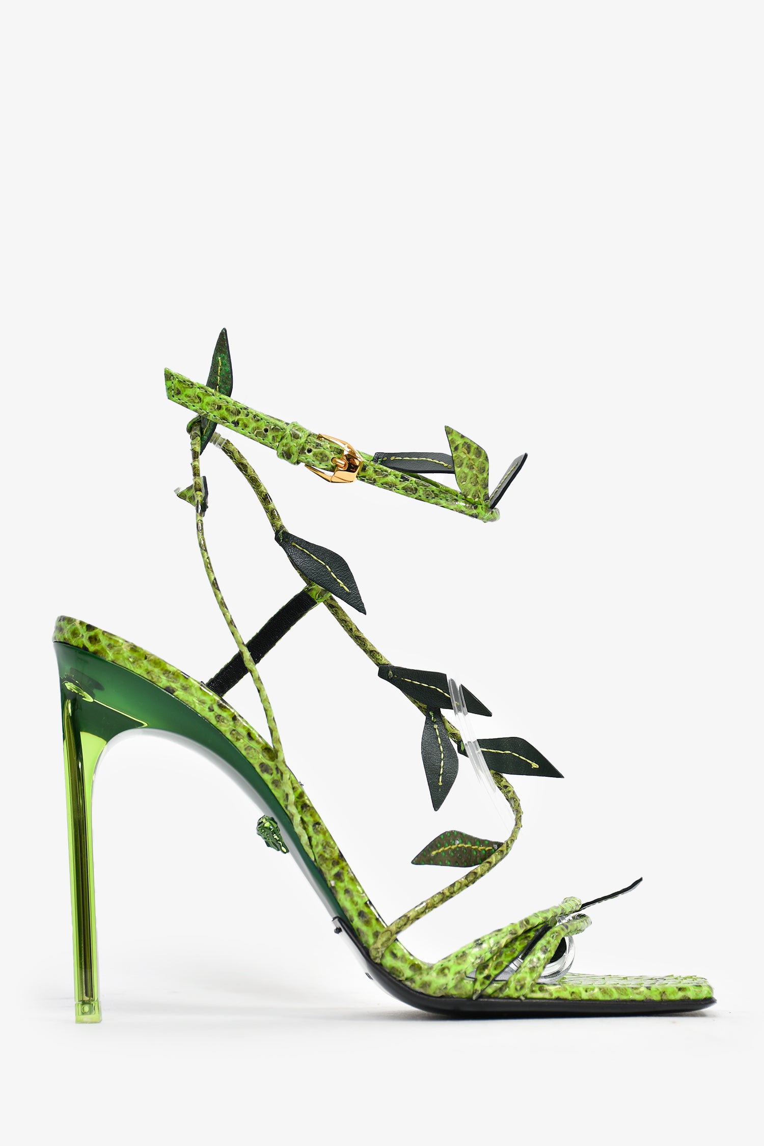 Refresh availabilityVersace Green Snakeskin 'Leaf' Wrap Heels. Slip-on. Square toe. Tonal stitching.