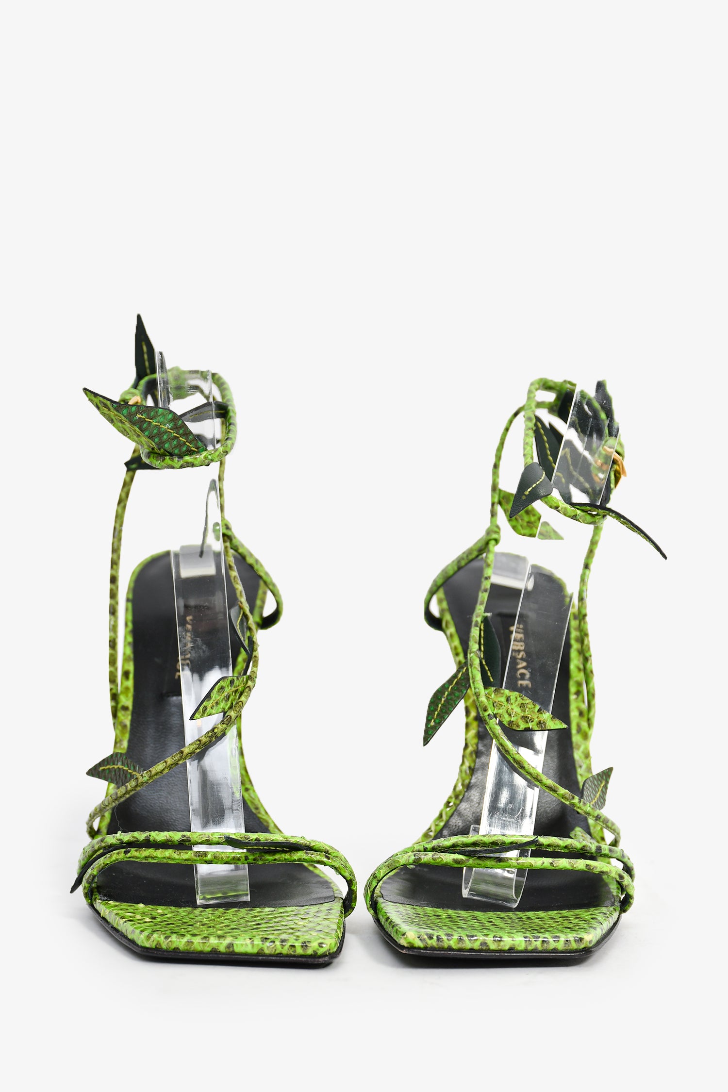 Versace Green Snakeskin 'Leaf' Wrap Heels Size 36