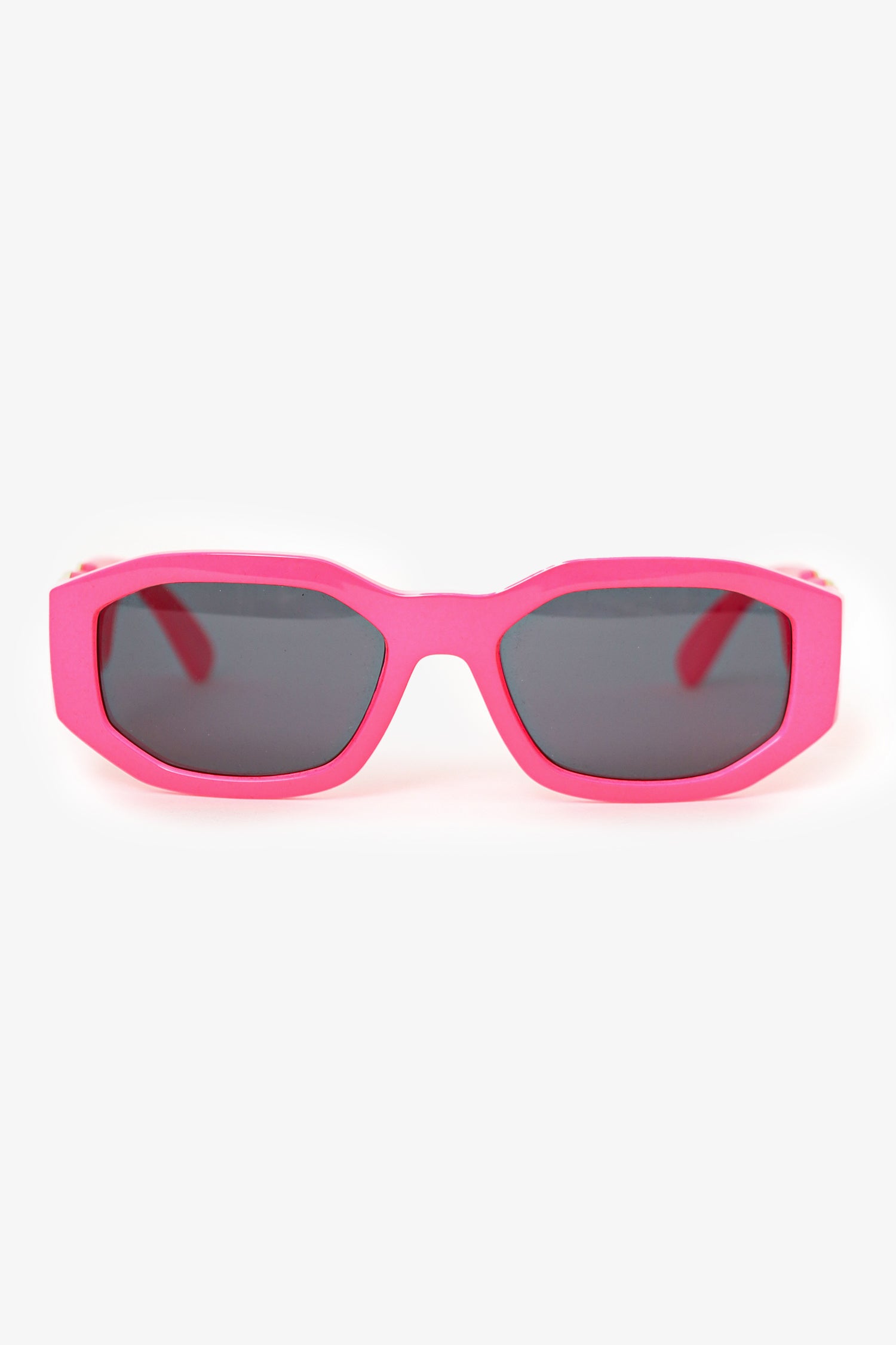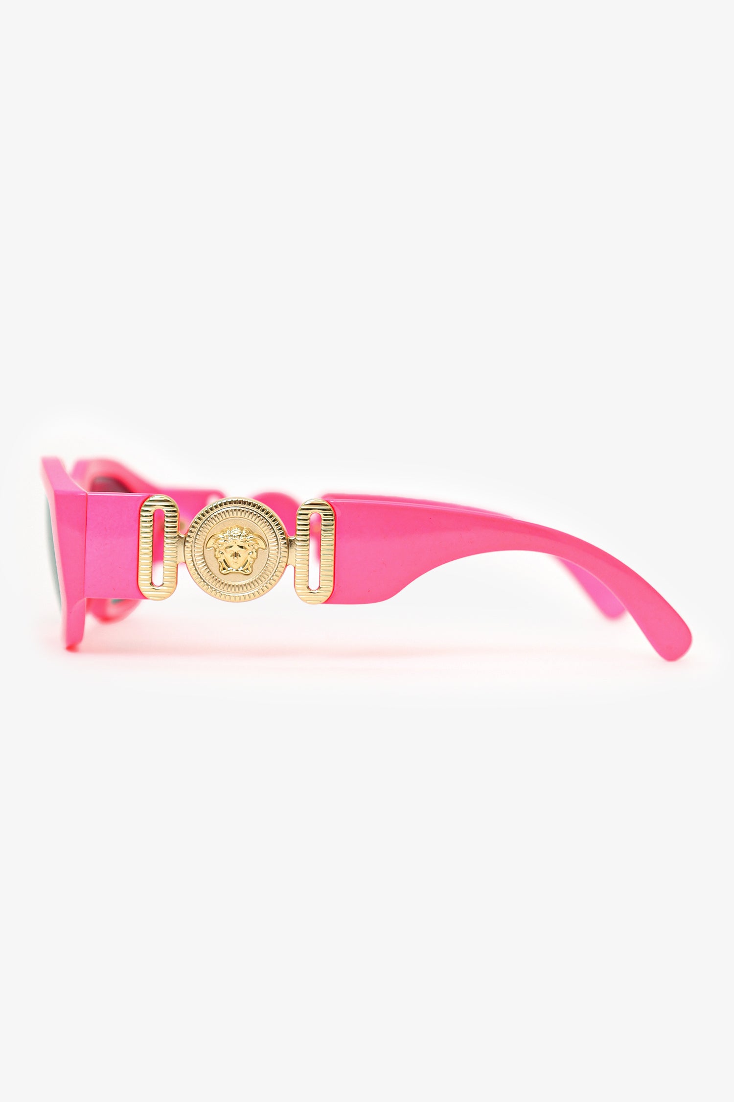Versace Hot Pink Frame Medusa Head Rectangle Sunglasses