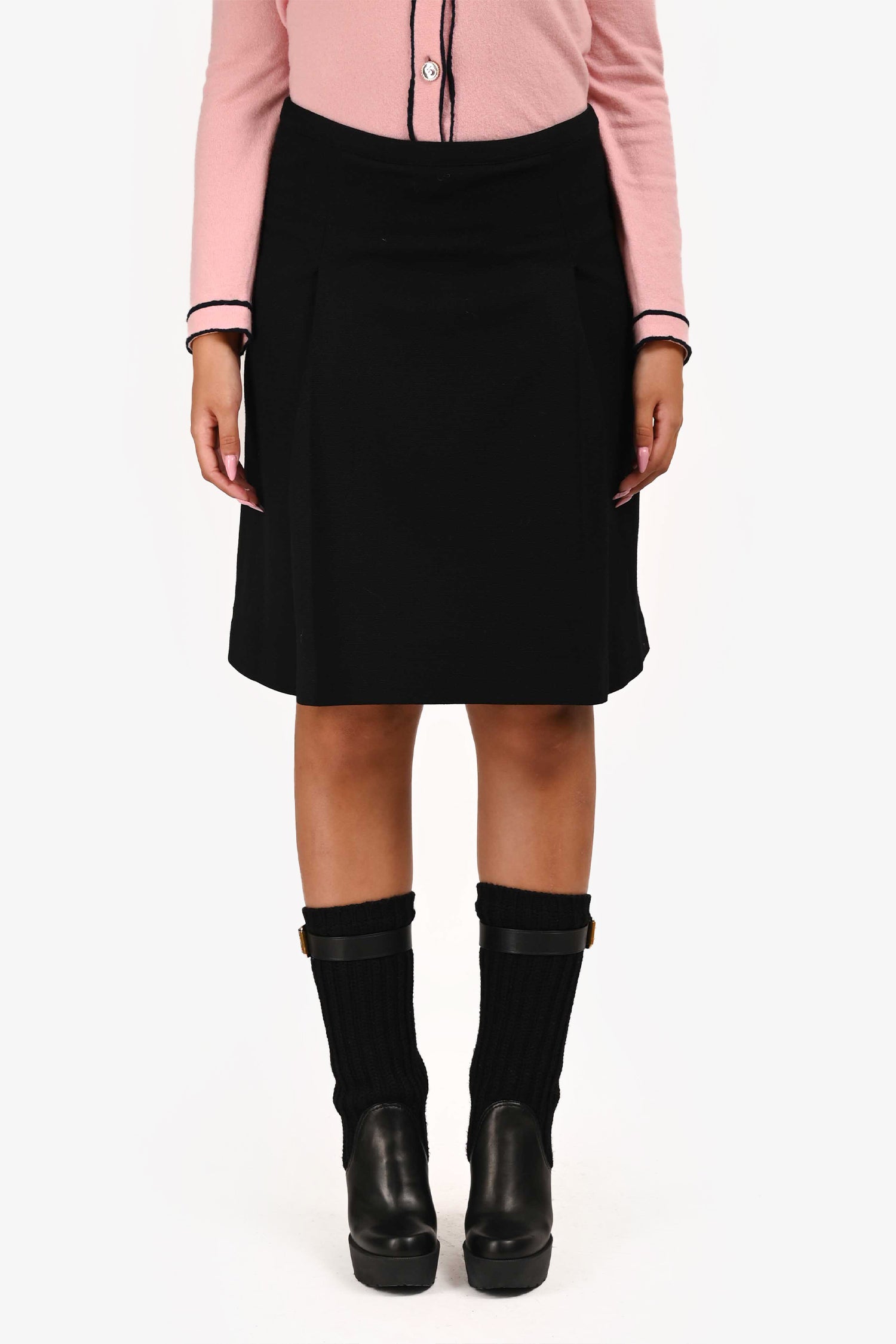 Refresh availabilityVersace Jeans Black Wool A-Line Skirt. Rear zip and hook closure. Lined.
