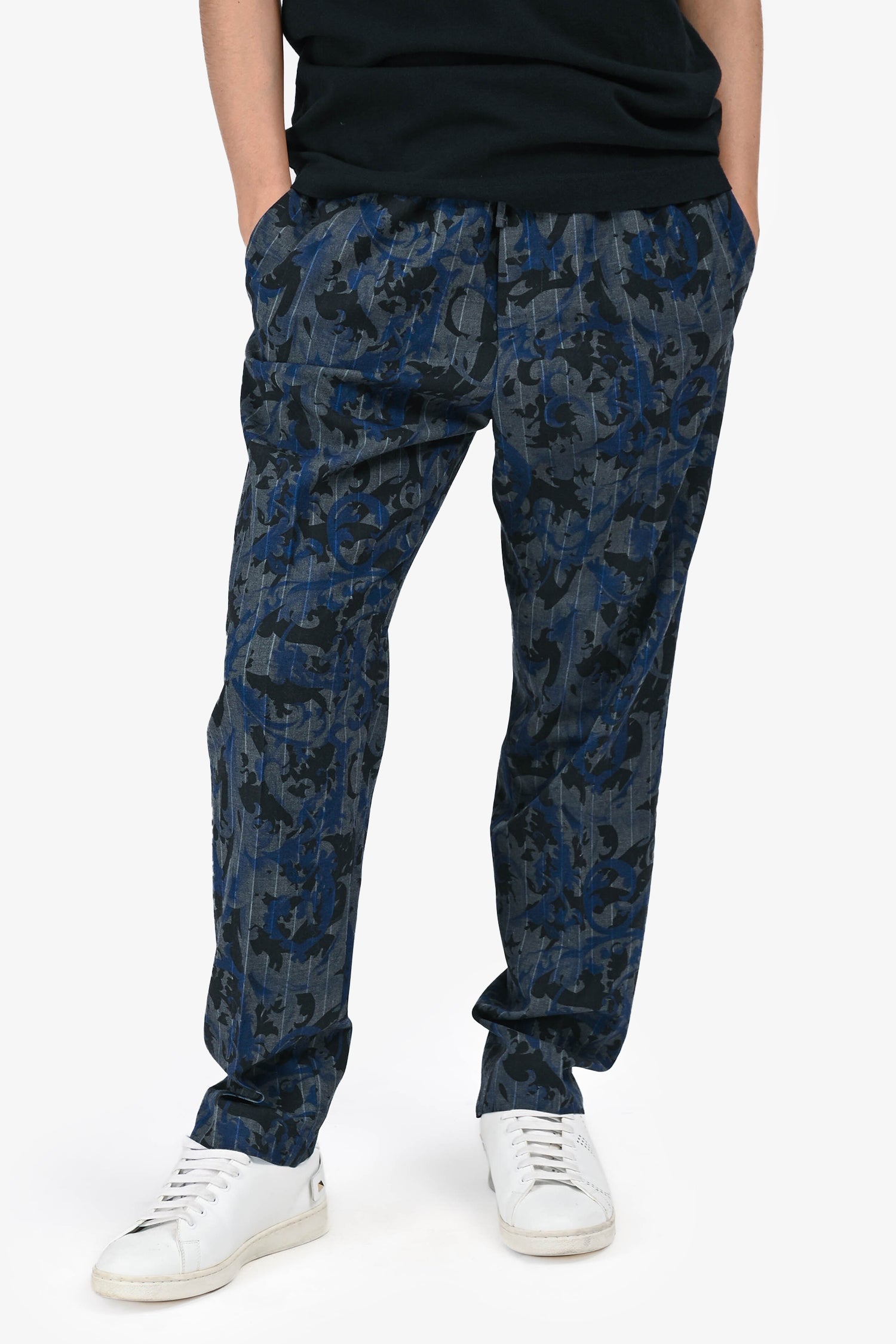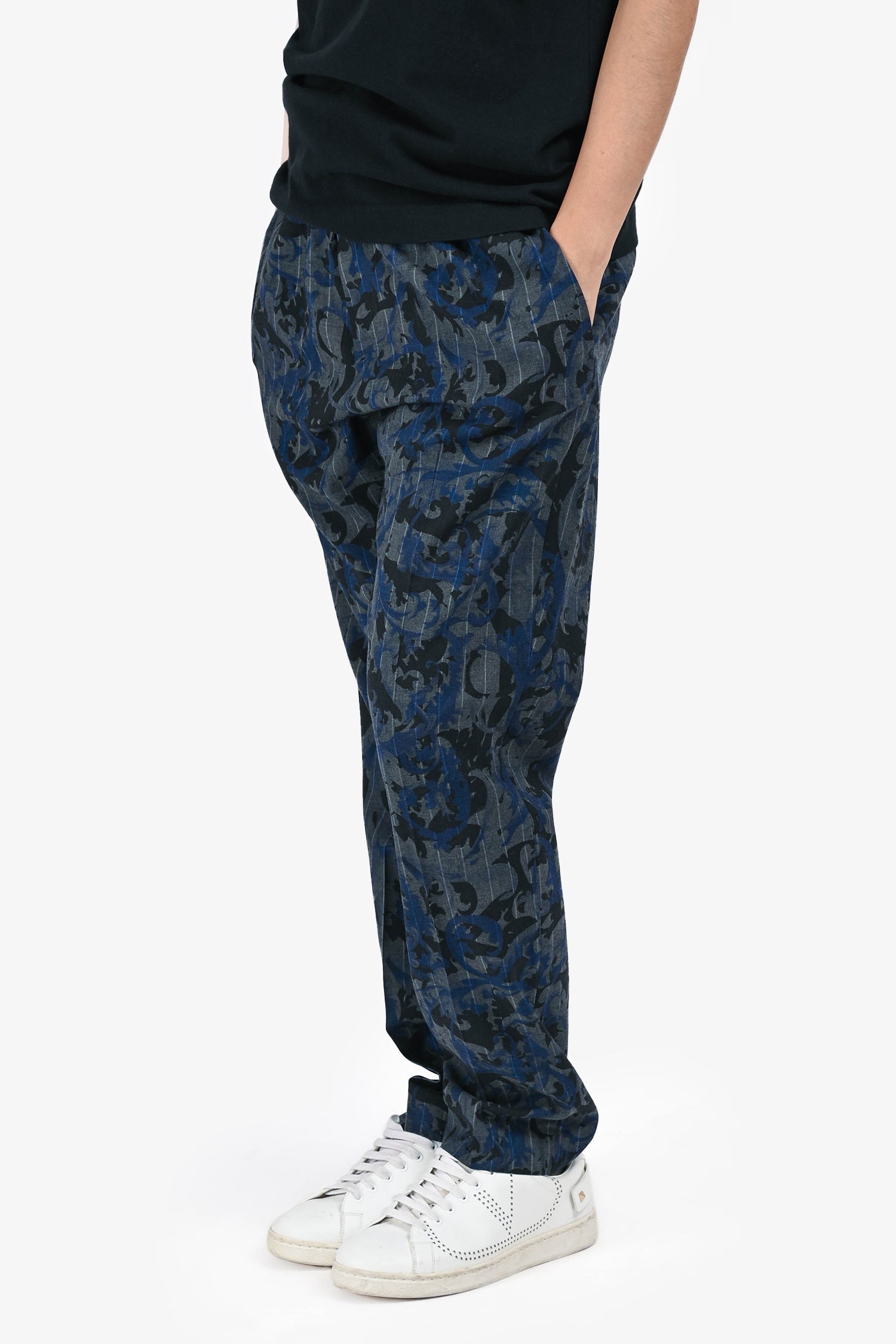 Versace Navy/Grey Printed Drawstring Joggers Size 48 Mens