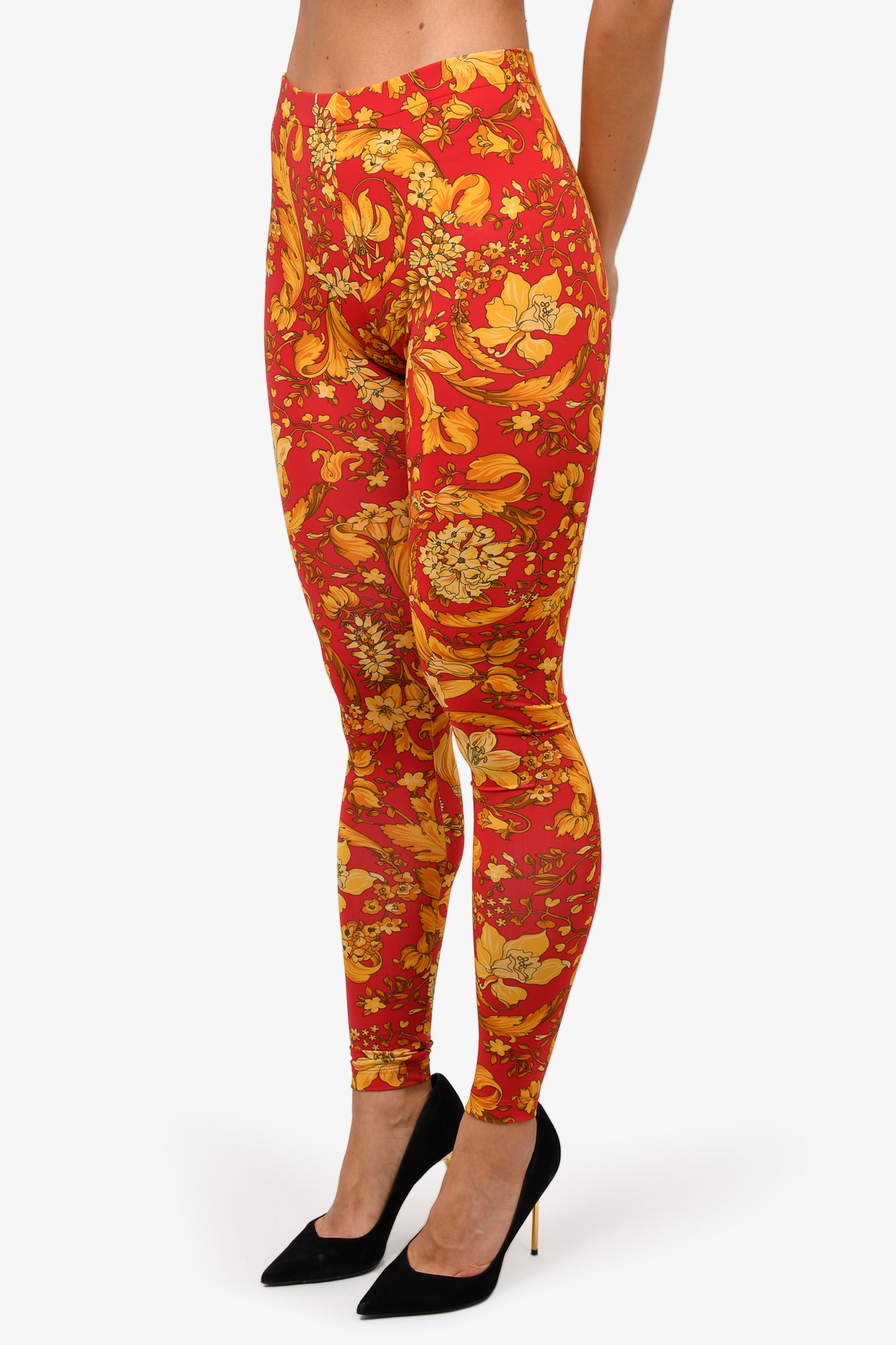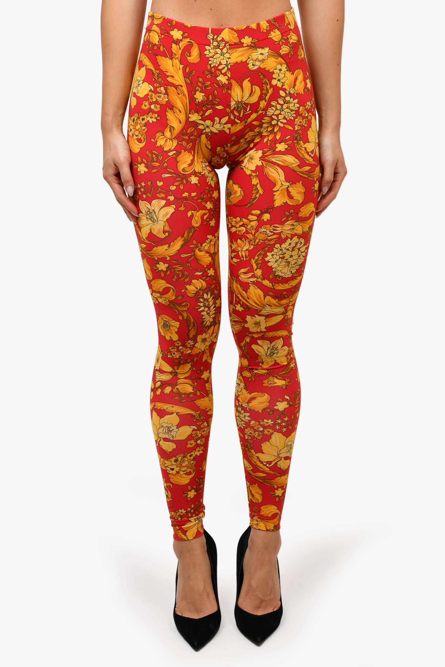 Refresh availabilityVersace Red Floral Printed Leggings. Elasticized waist. Tonal stitching.