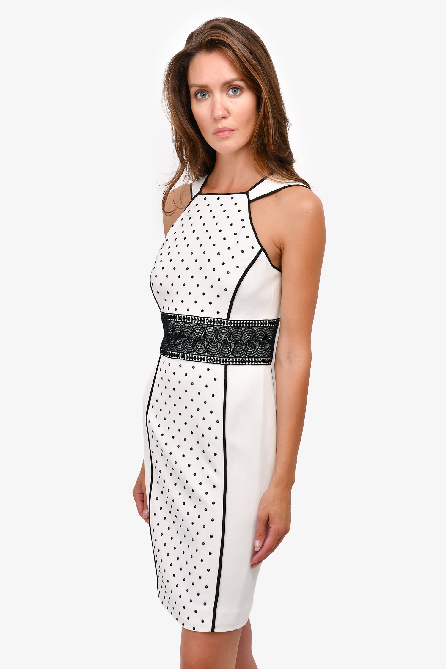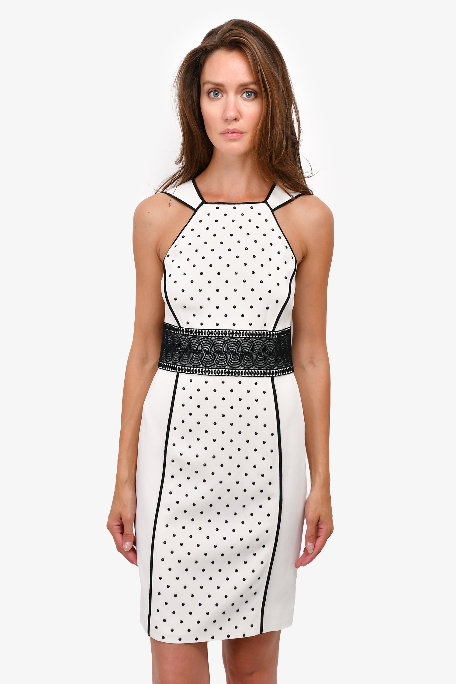 Refresh availabilityVersace White/Black Sleeveless Lace Detail Embellished Midi Dress. Rear zip up closure. Tonal Stitching