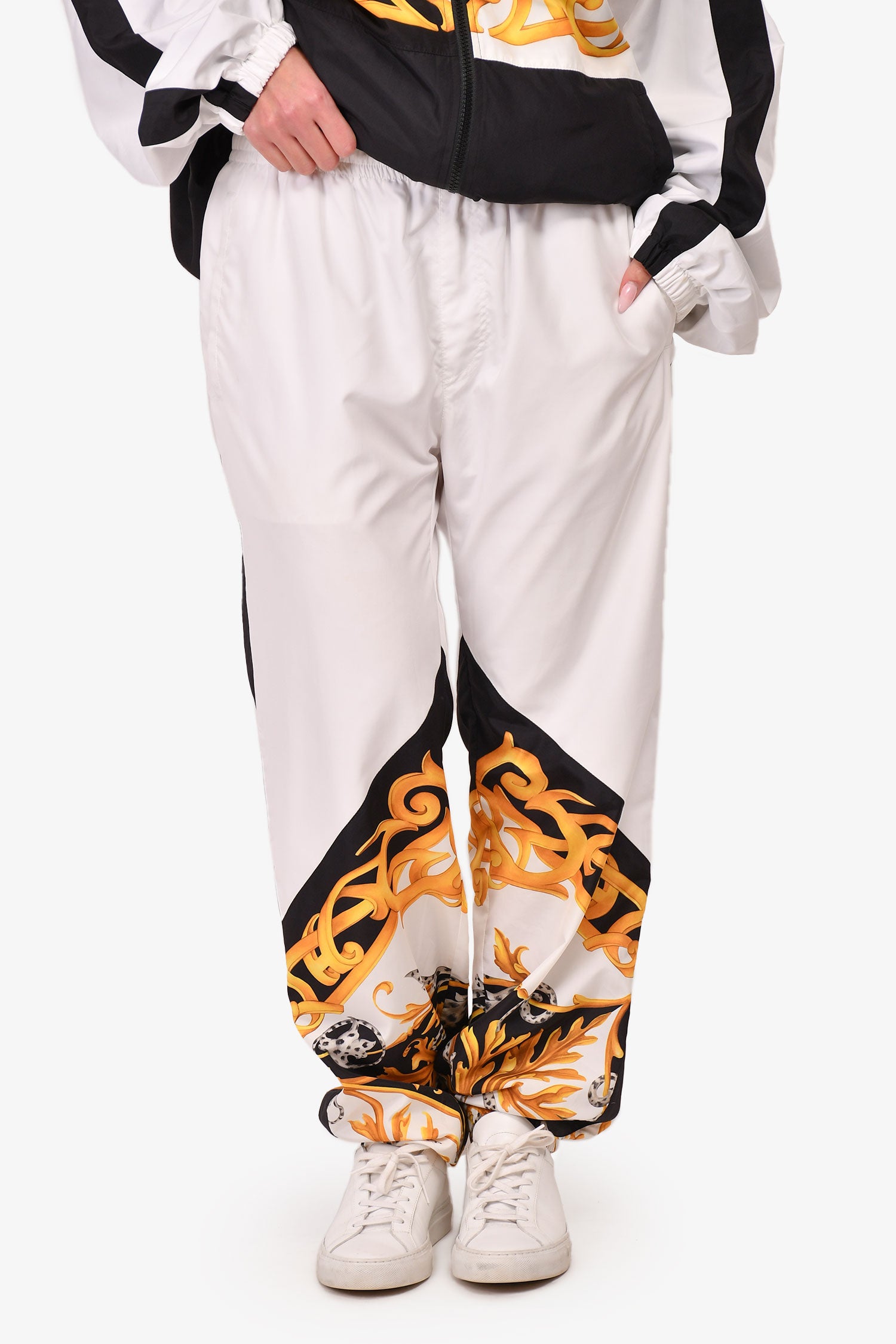 Refresh availabilityVersace White Printed Nylon Joggers. Tonal stitching.