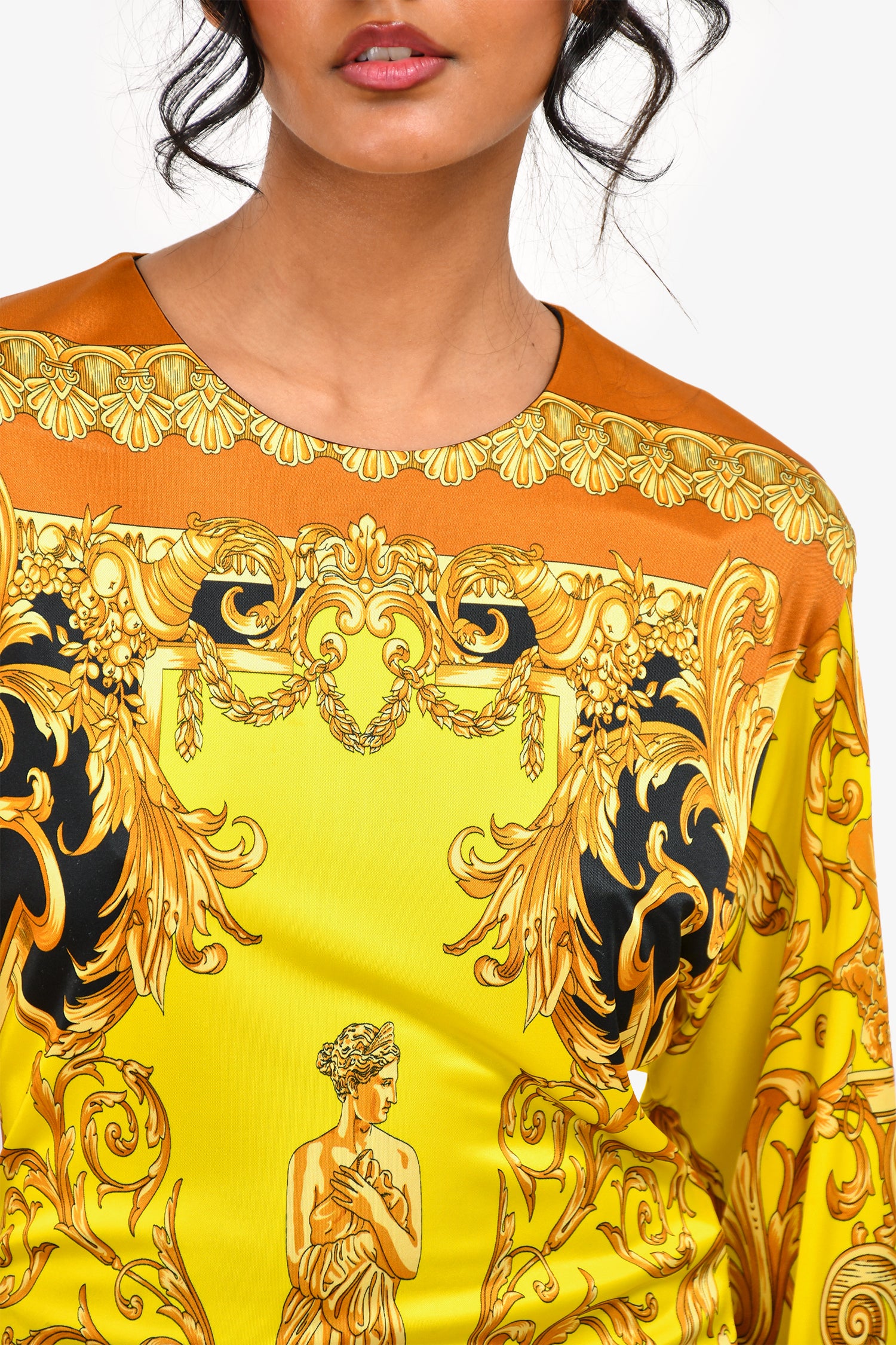Versace Yellow/Black Baroque Midi Dress Size 36