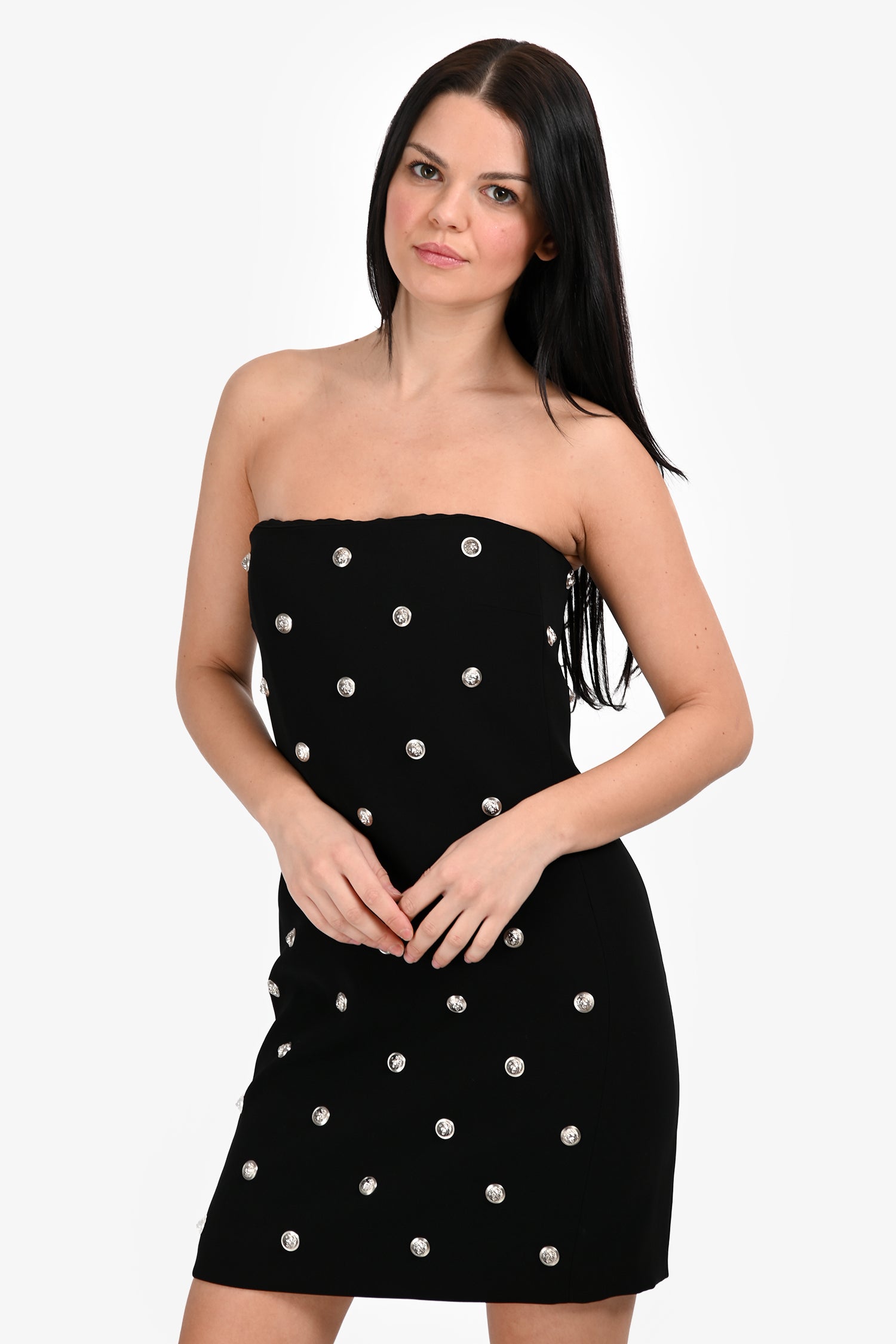 Refresh availabilityVersus Versace Black Silver-Studded Mini Dress. Strapless neckline. Rear zip closure. Fully lined interior. Gold-tone hardware. Tonal stitching.