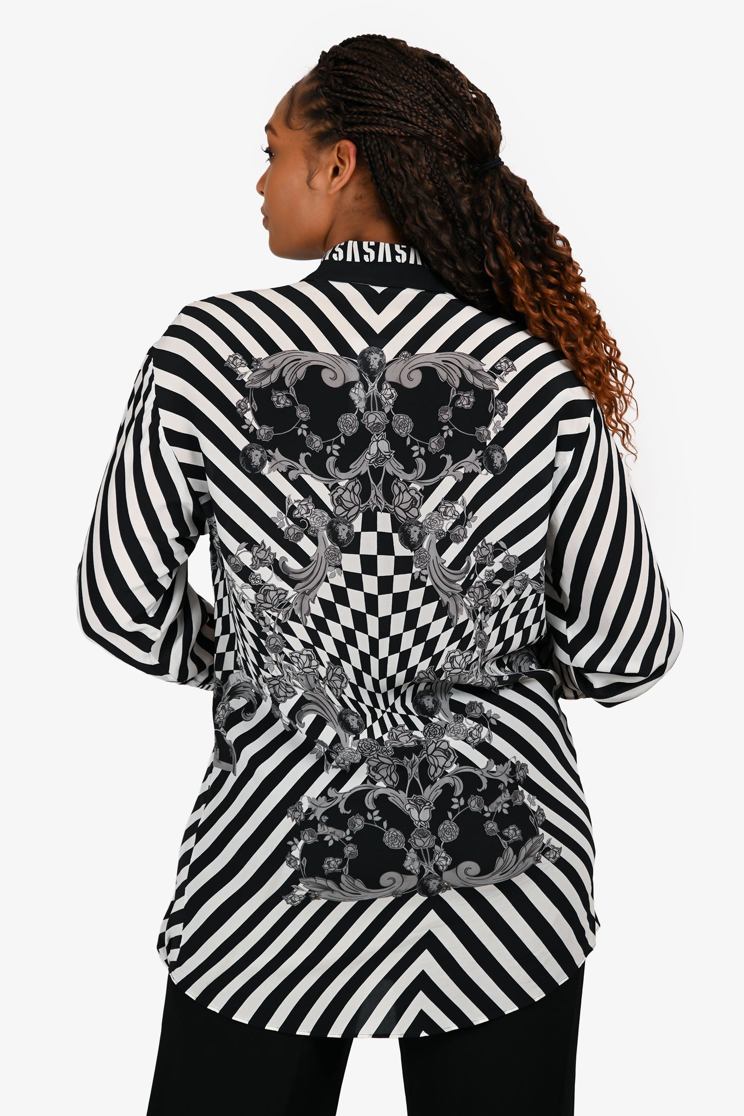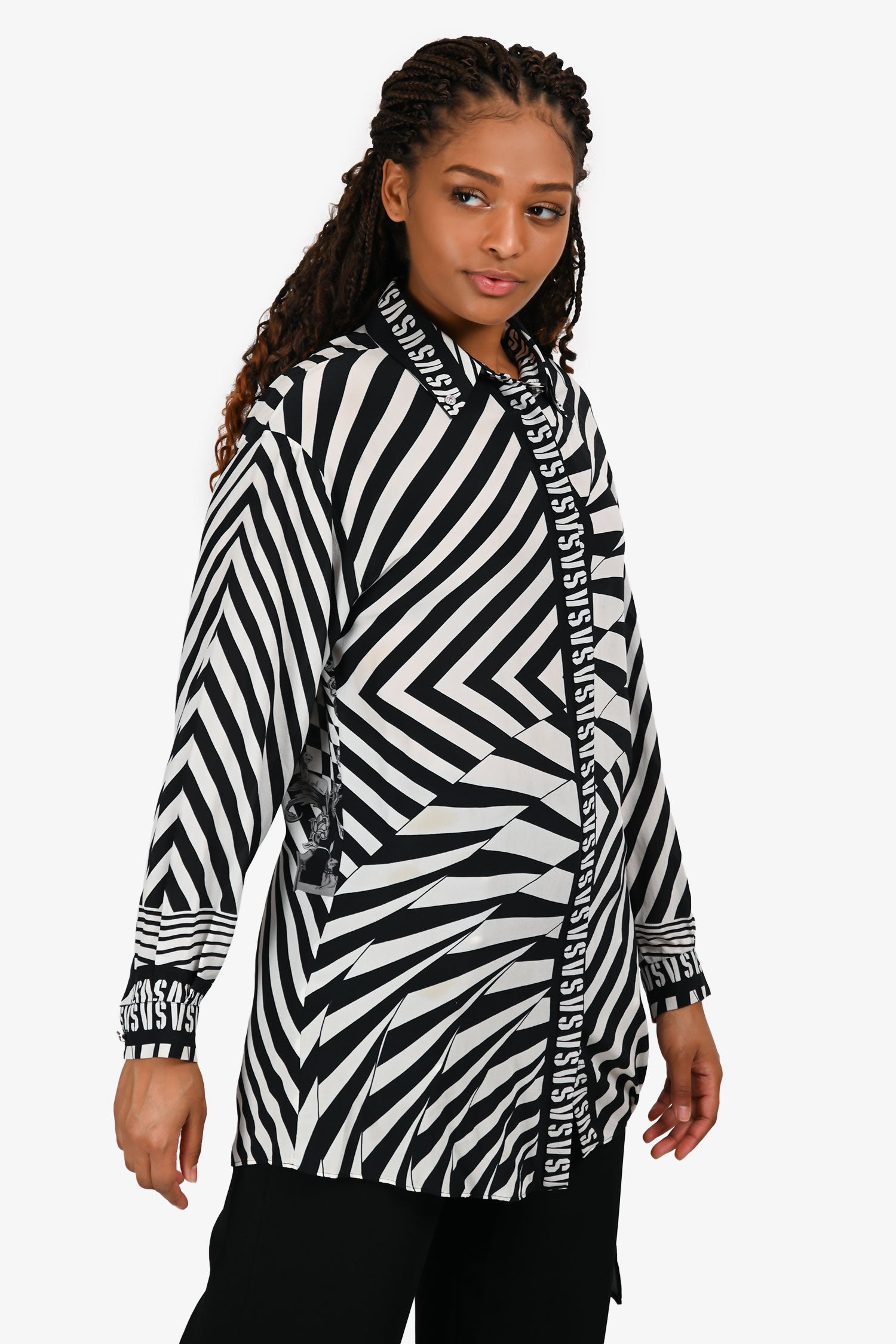 Refresh availabilityVersus Versace Black/White Striped Shirt Dress. Front button-up closure. Buttoned cuffs Silver-tone hardware. Tonal stitching.