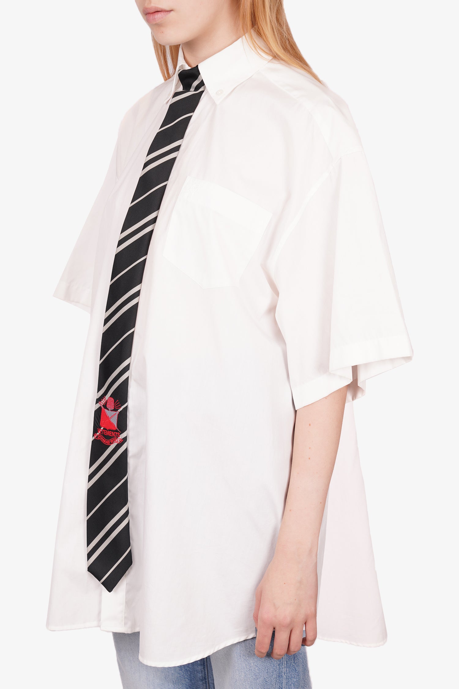 Refresh availabilityVetements White Shirt w/ Tie. Collared neckline. Front button up closure. Tonal stitching.