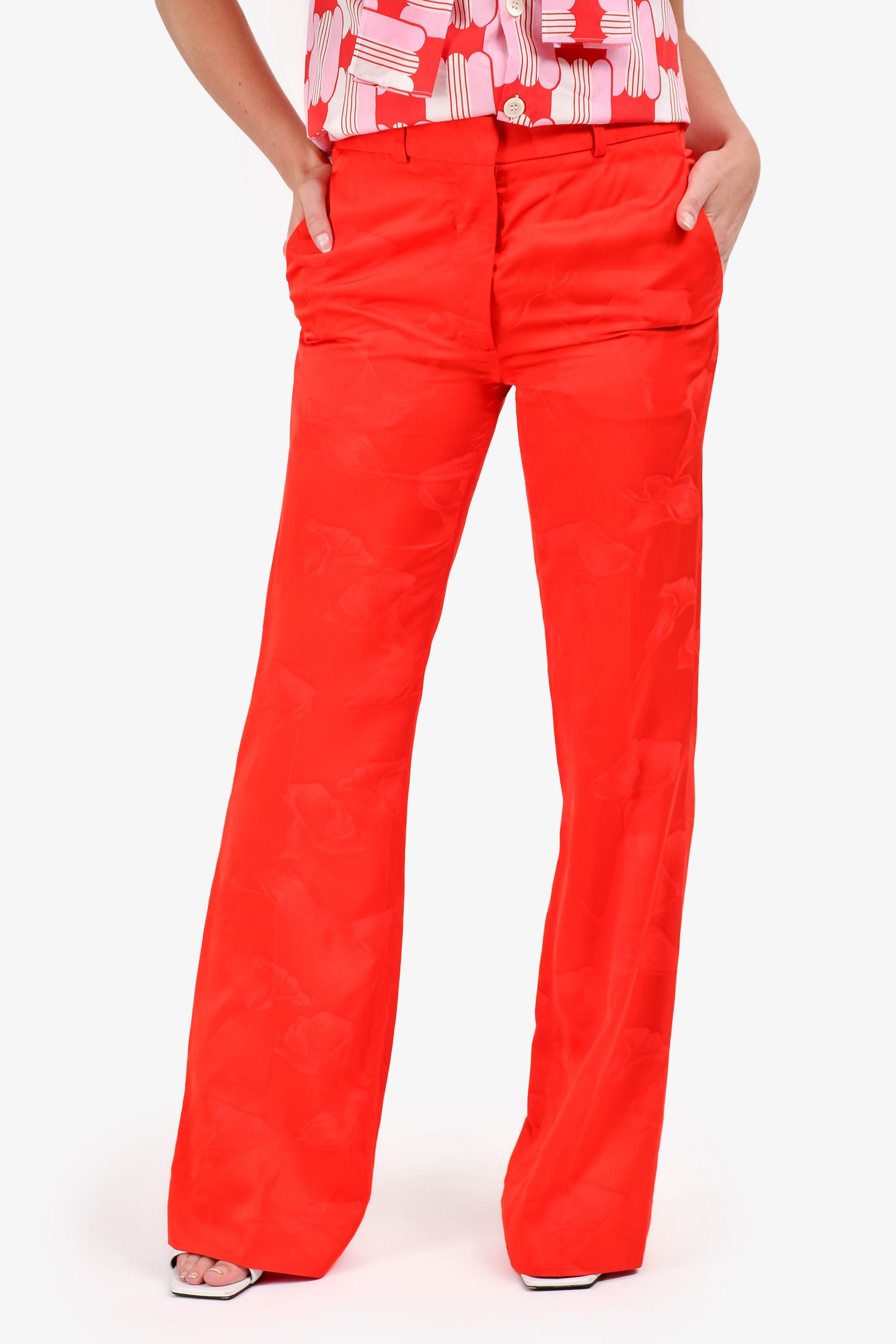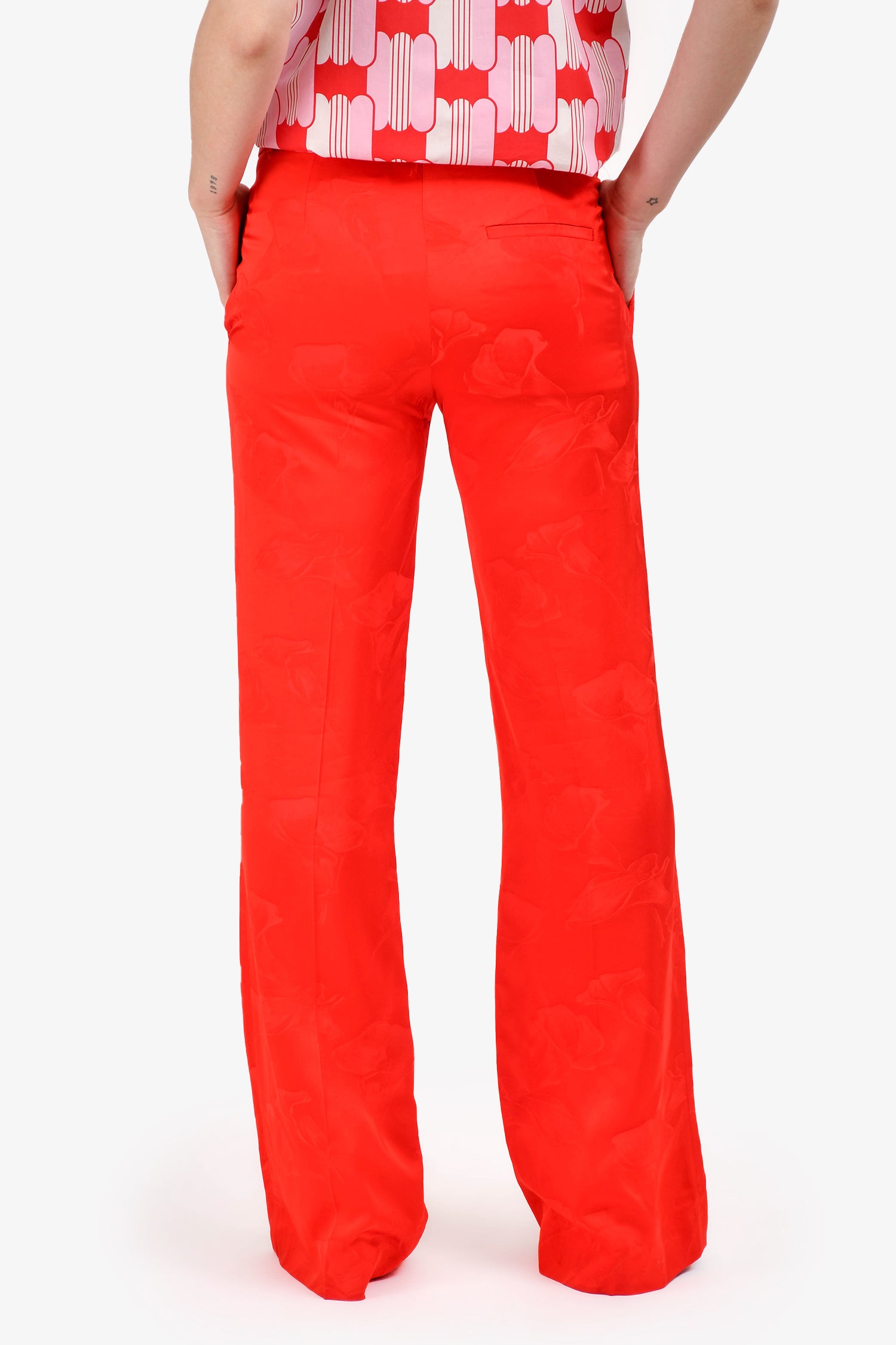 Refresh availabilityVictoria Beckham Red Jacquard Wide Leg Trousers. Front zip and hook closure. Side slit pockets. Tonal stitching.