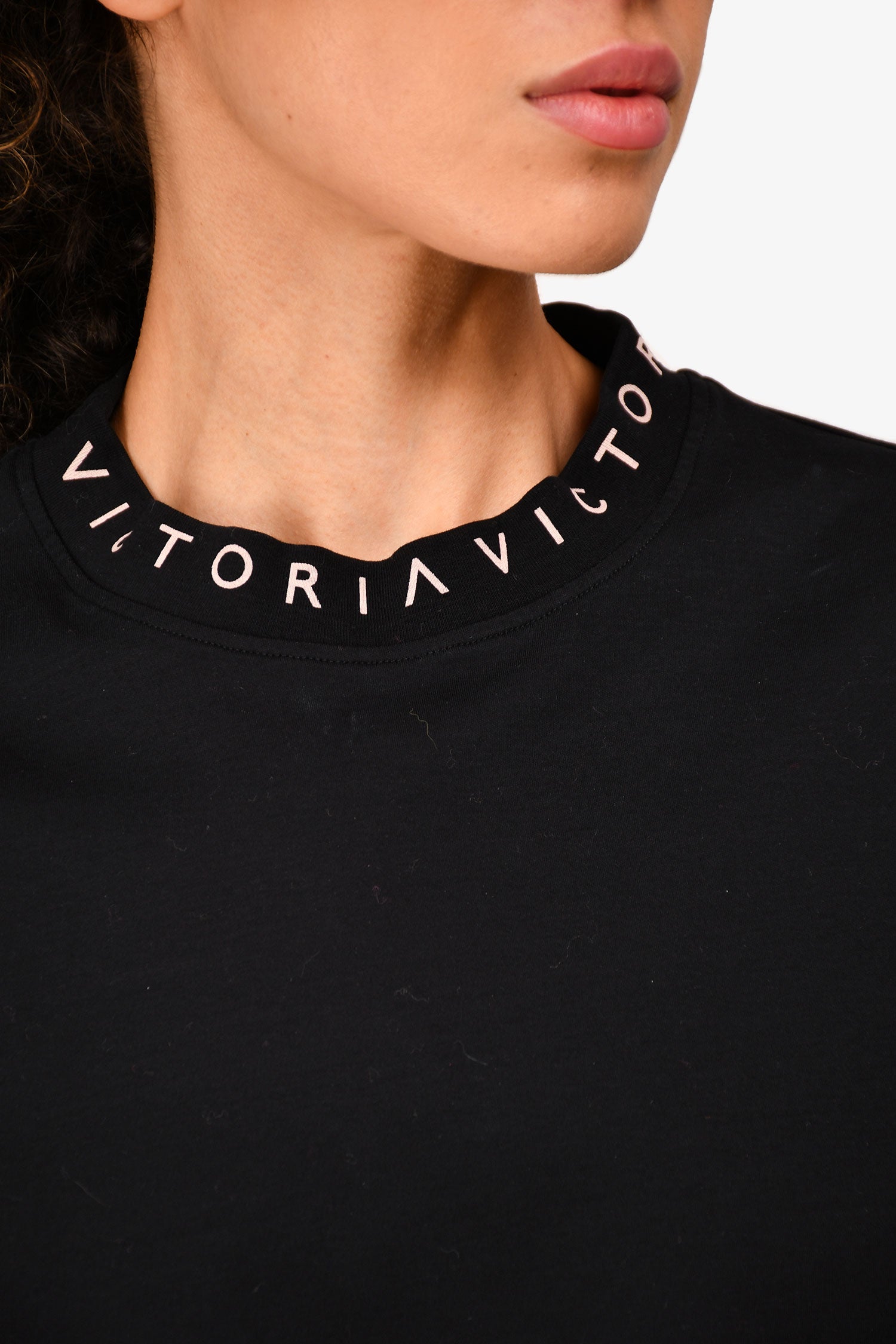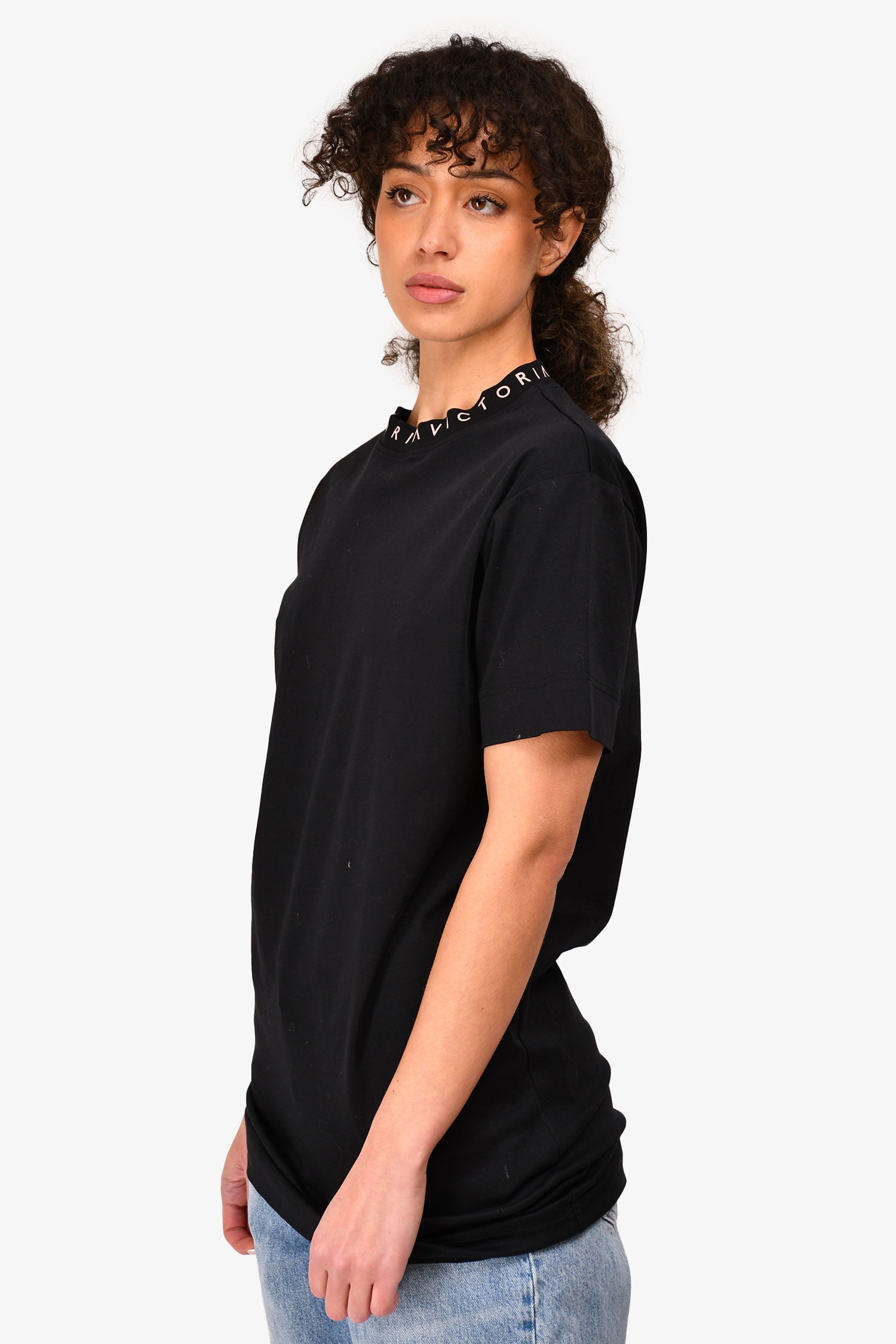 Refresh availabilityVictoria by Victoria Beckham Black Logo T-Shirt. Pull-on. Round neck. Ribbed collar. Tonal stitching.