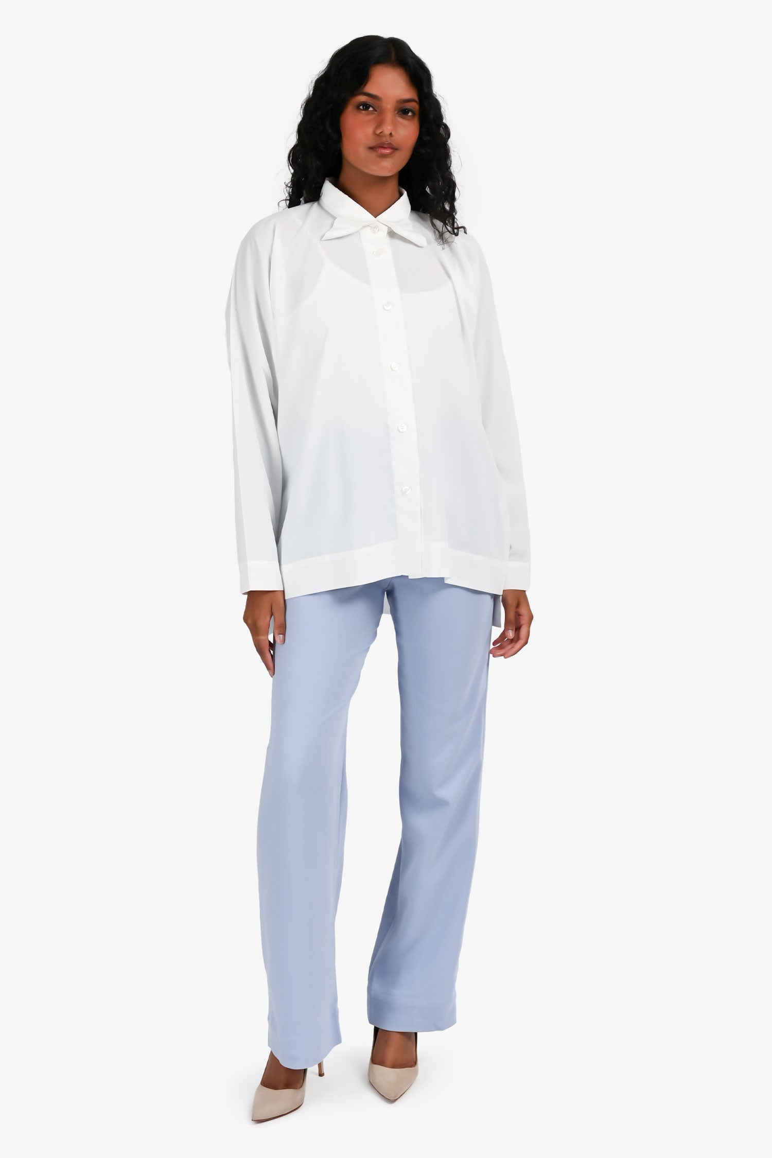 Refresh availabilityVince Blue High Waisted Pants. Front zip fly and hook-and-bar closure. Waist belt loops. Side and back seam pockets. Straight leg silhouette. Tonal stitching.