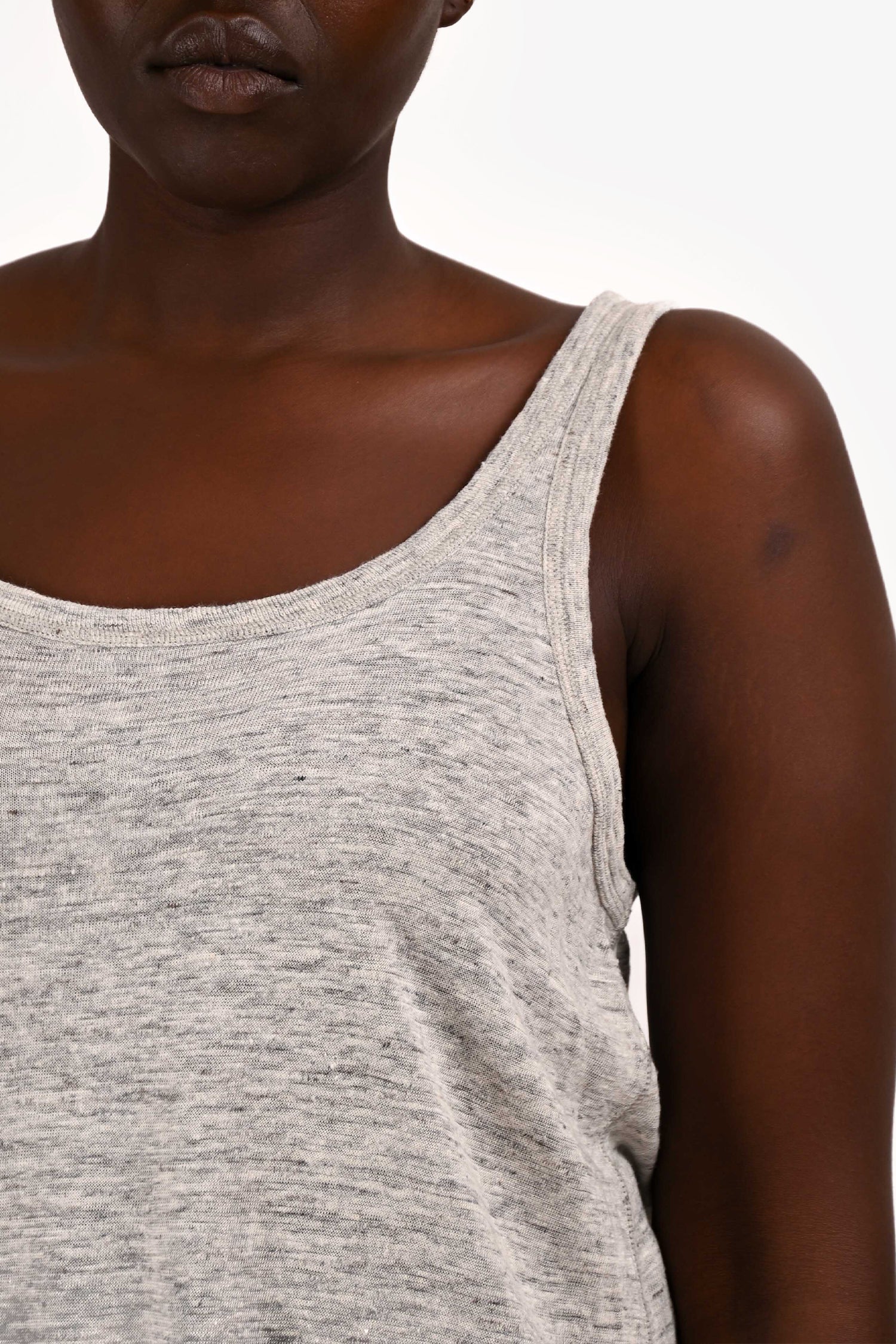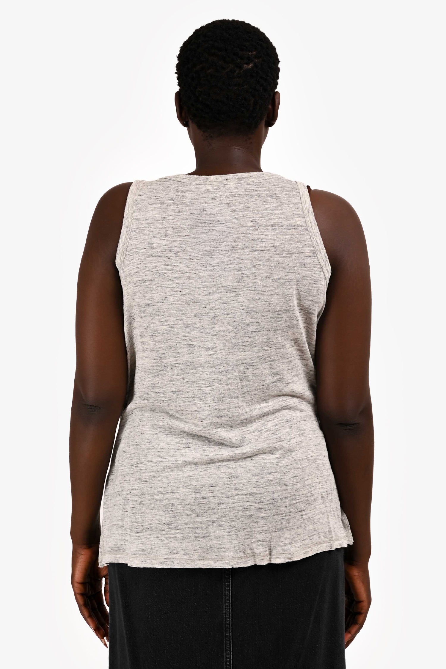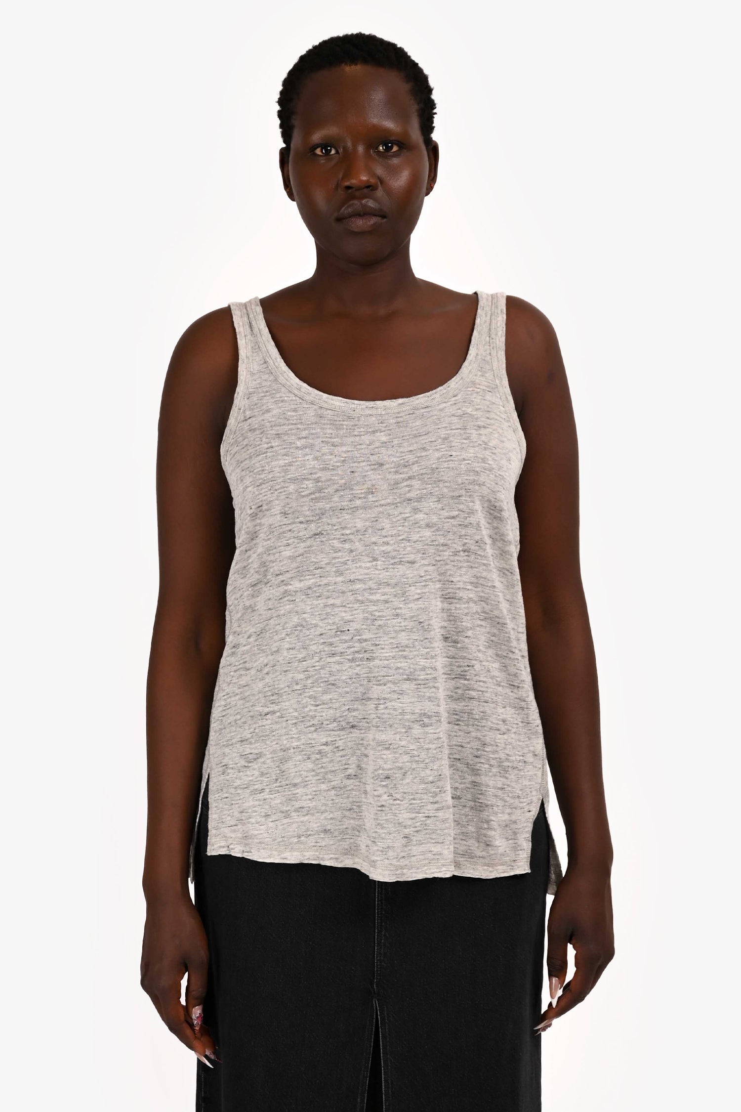 Refresh availabilityVince Grey Marl Linen Scoop Neck Tank Top. Sleeveless design. Tonal stitching.