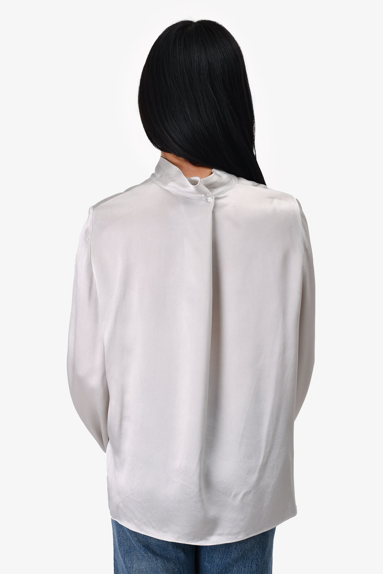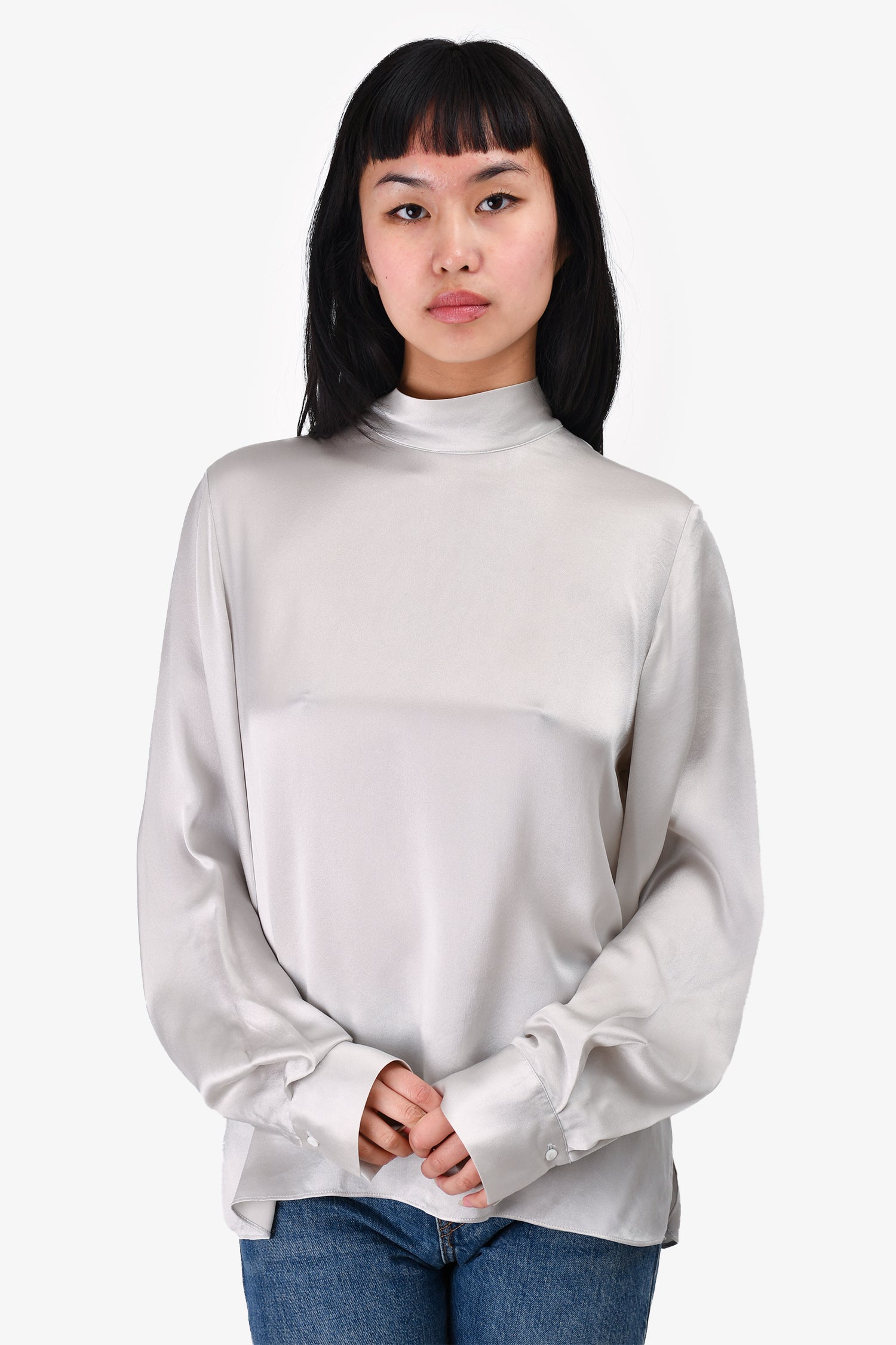 Refresh availabilityVince Grey Silk Mock Neck Blouse. Pull-on. Button closure on the cuffs. Tonal stitching.