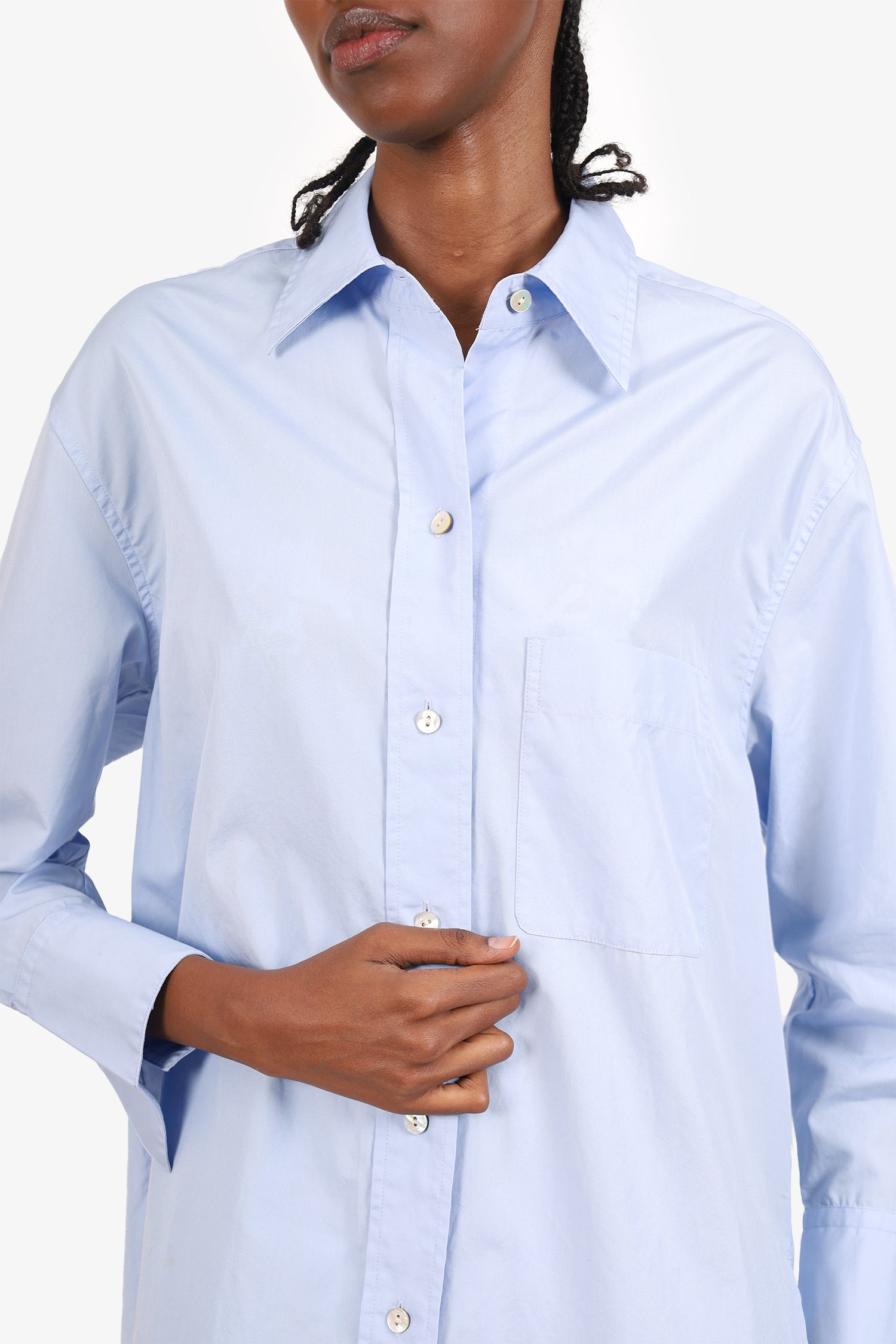 Refresh availabilityVince Light Blue Cotton Long Sleeve Shirt. Collared-neckline. Front button-up closure. Sleeve cuffs with button-up closure. Single front chest pocket. Tonal stitching.