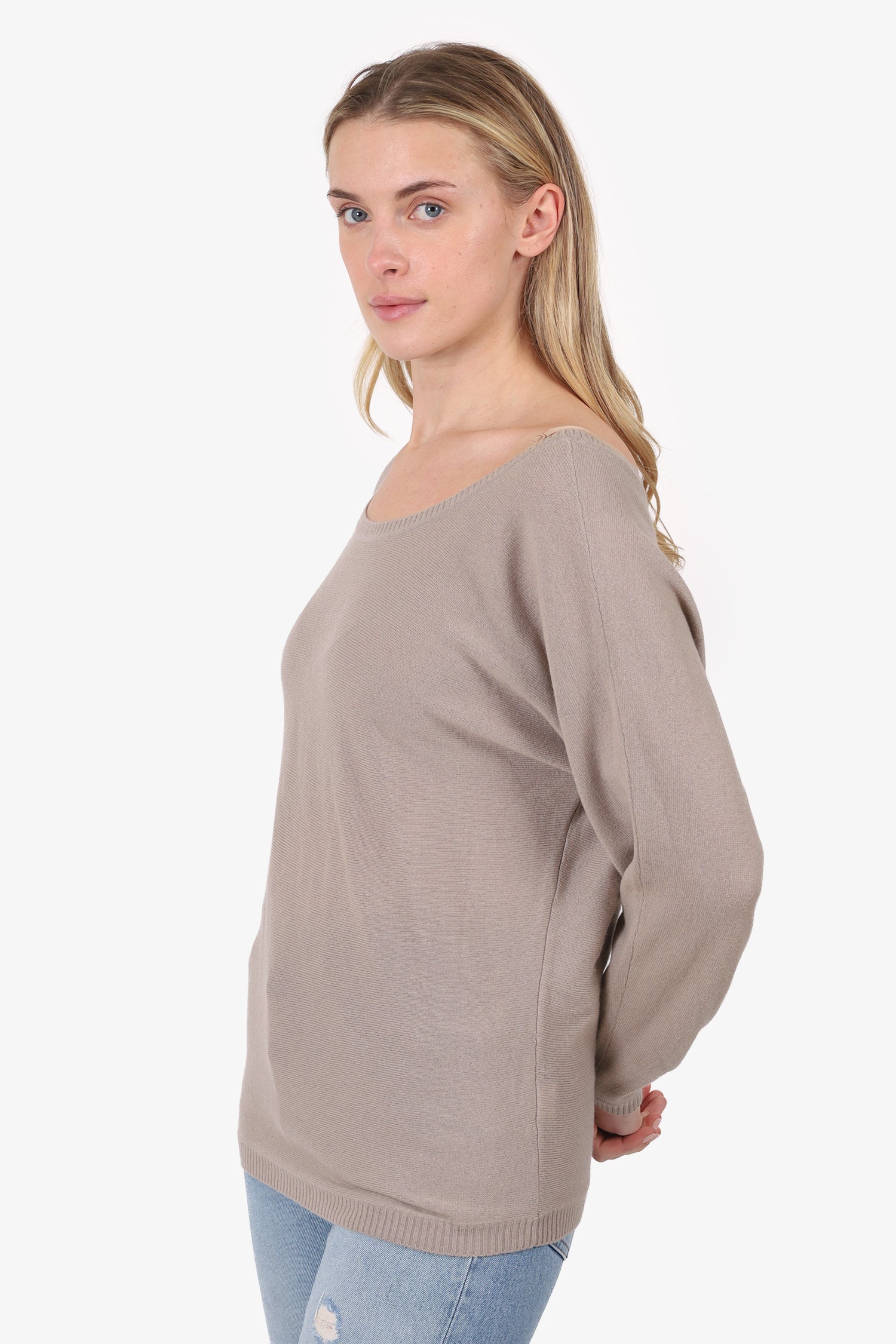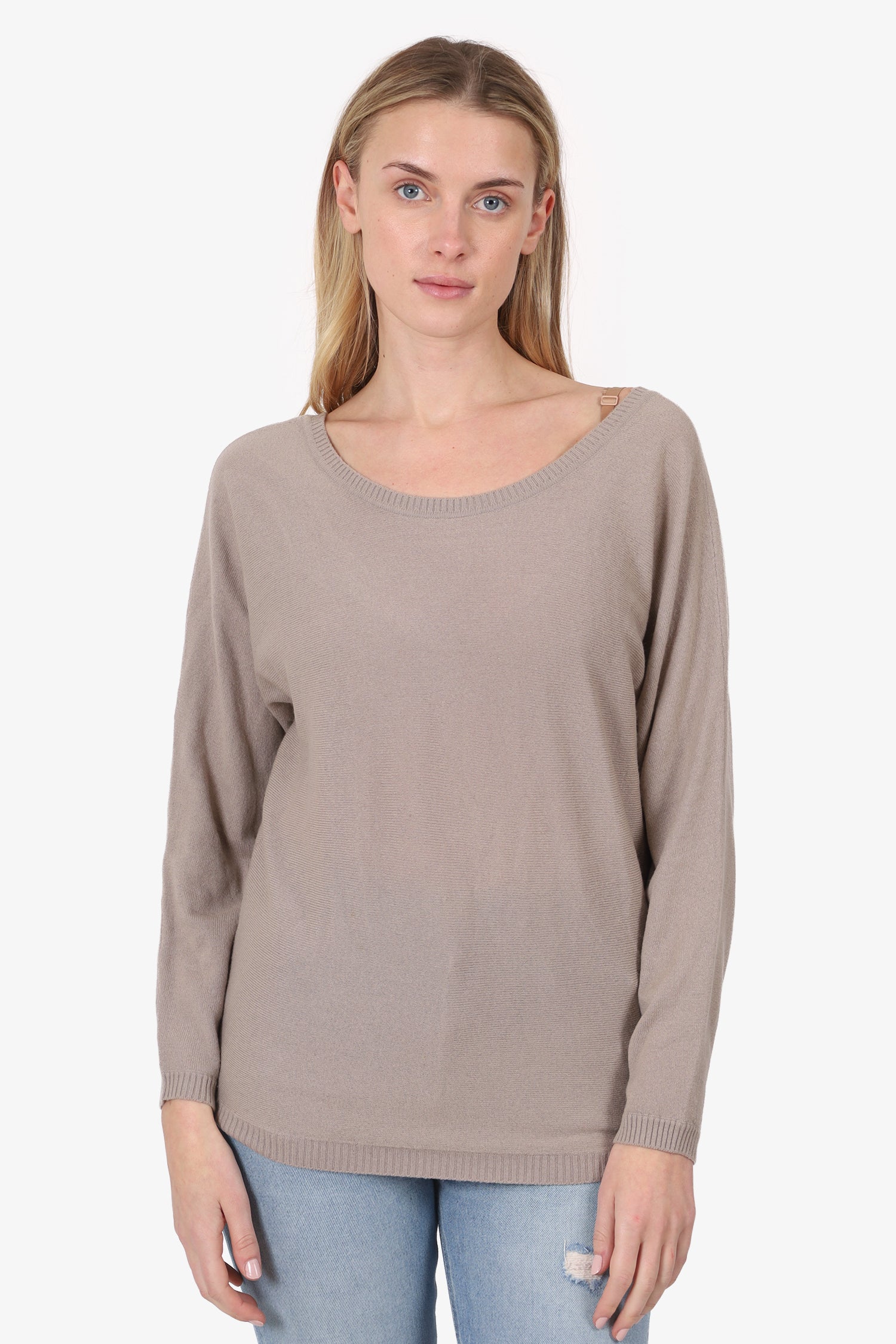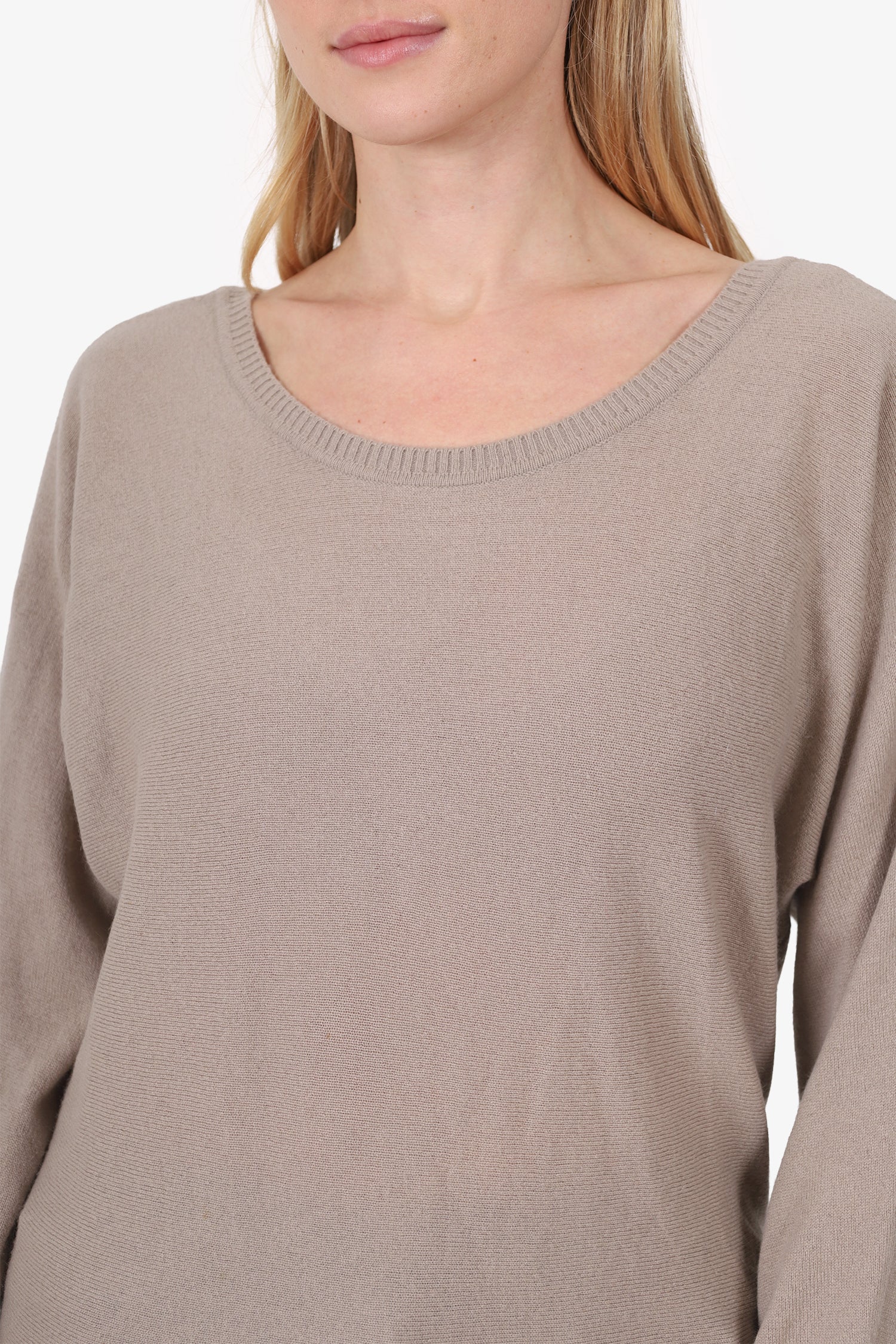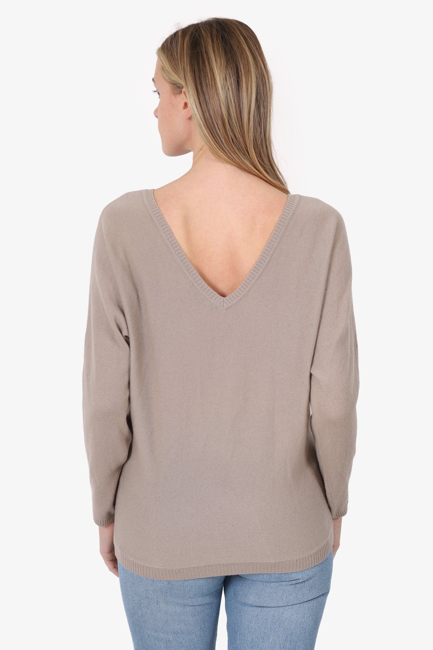 Refresh availabilityVince Taupe V-Back Sweater. Pull-on. Round neckline. Tonal stitching.