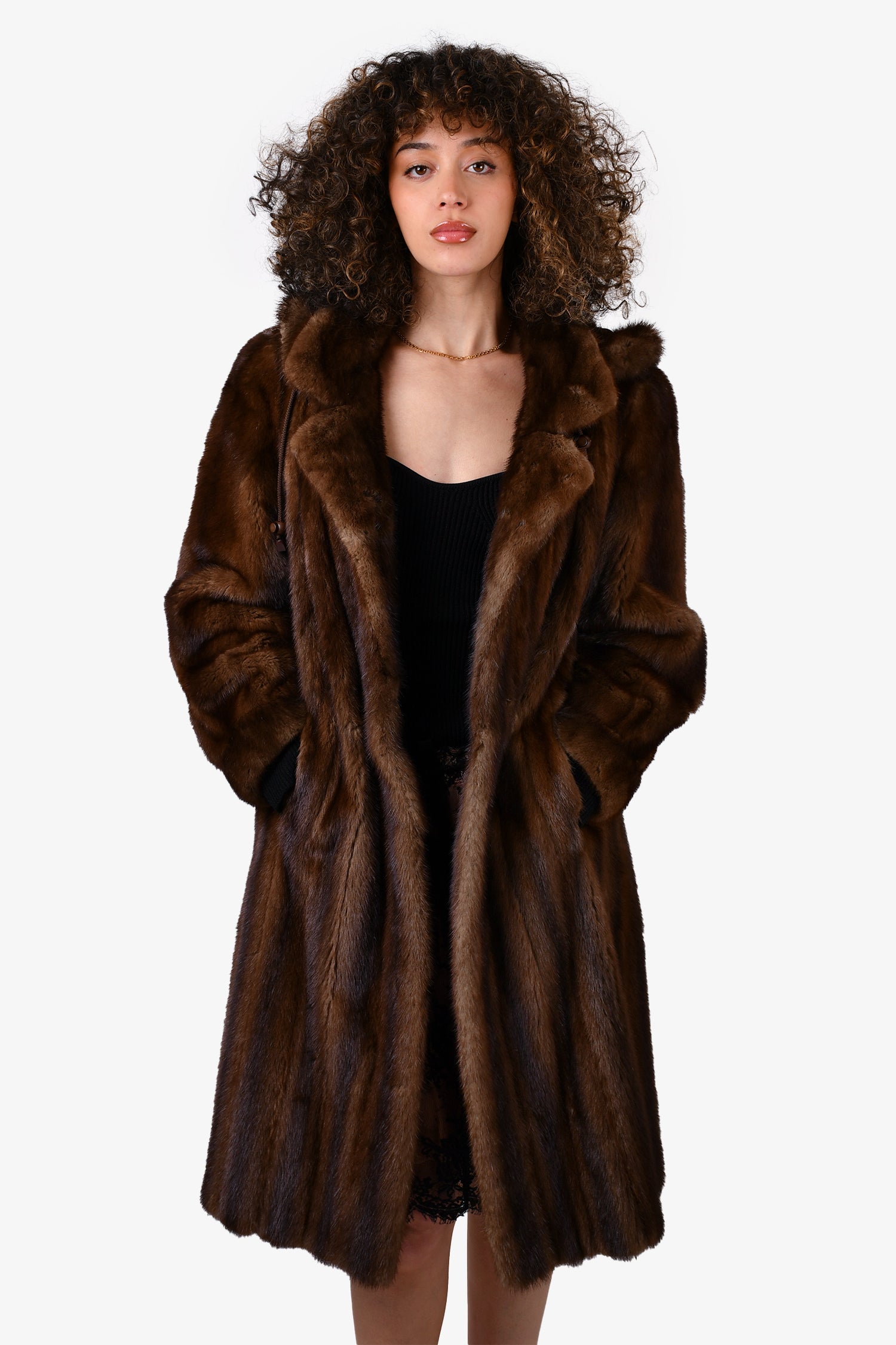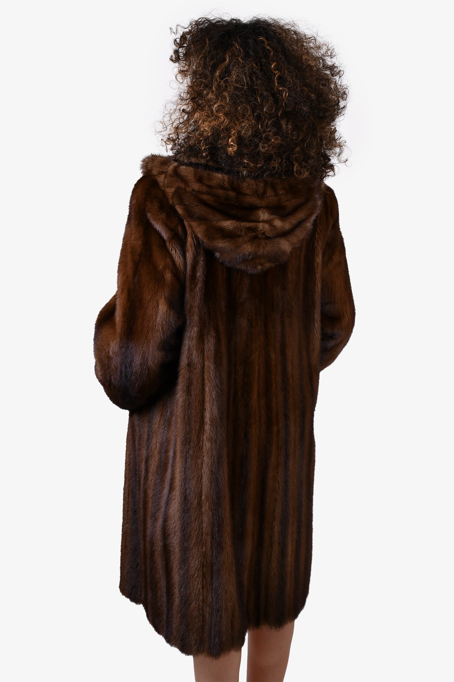 Vintage Black/Brown Canadian Demi Buff Mink Fur Coat with Hood Size 6-8