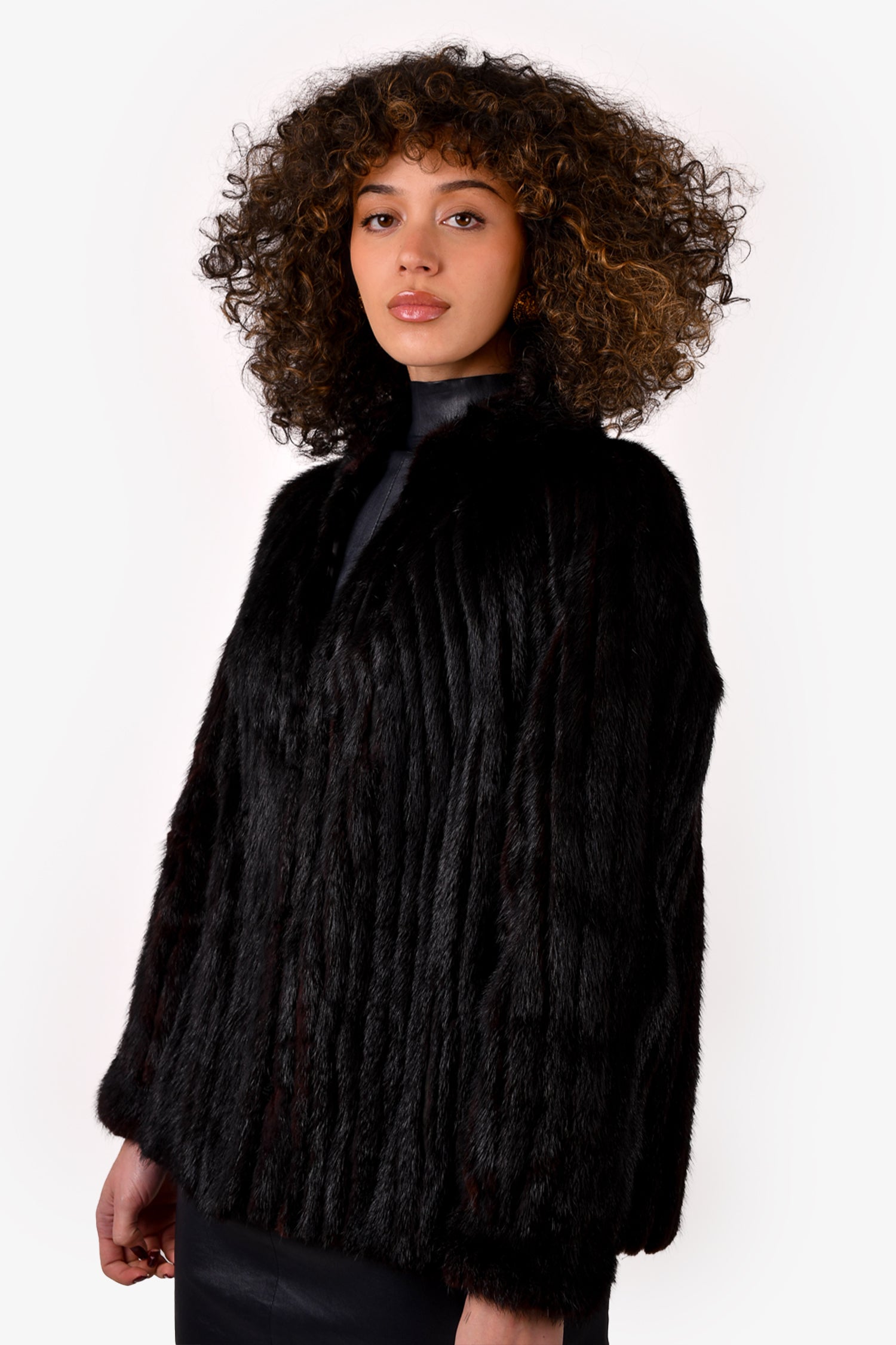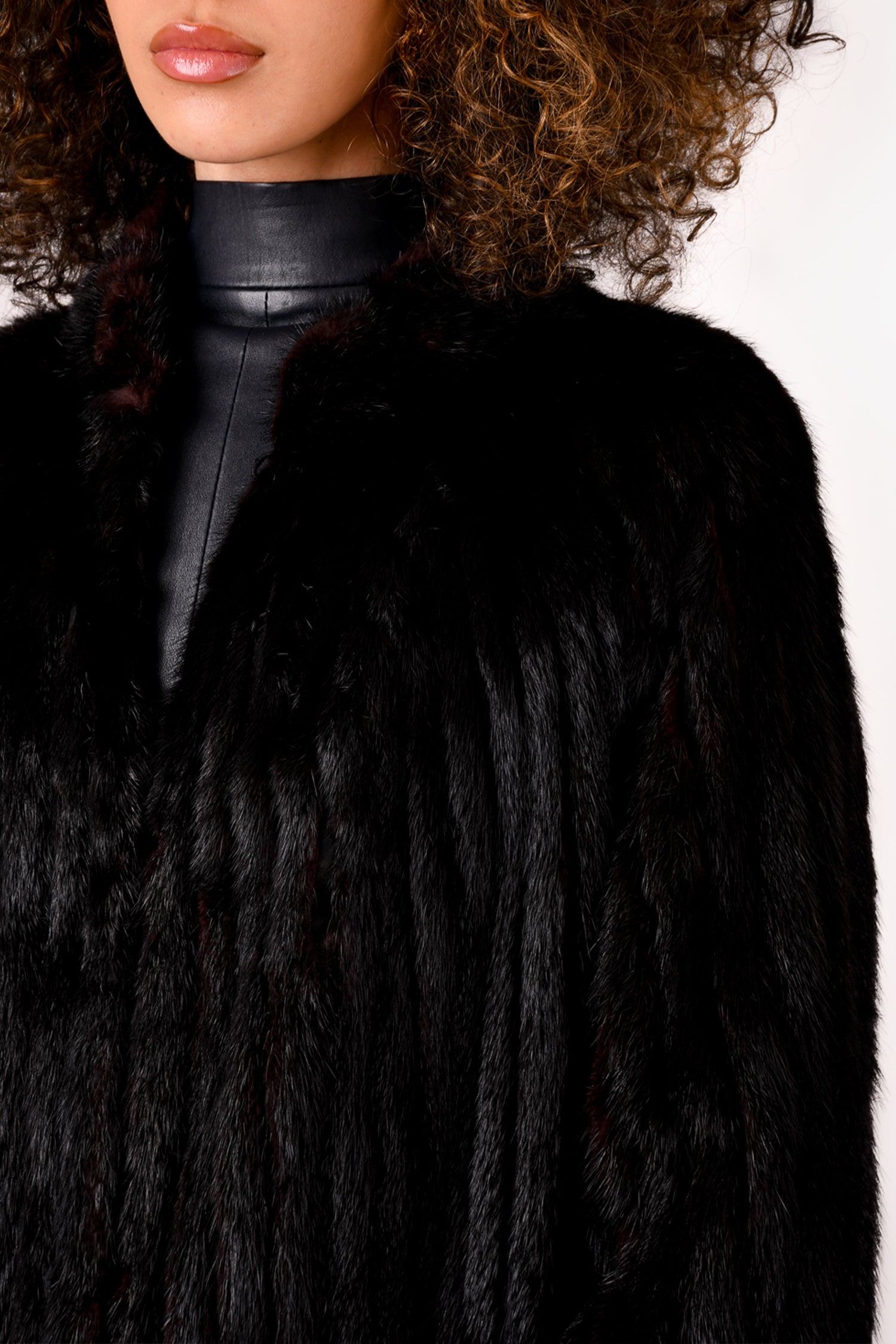 Vintage Black/Brown Mink Fur Coat. Clasp closure. 2 front pockets. Lined.