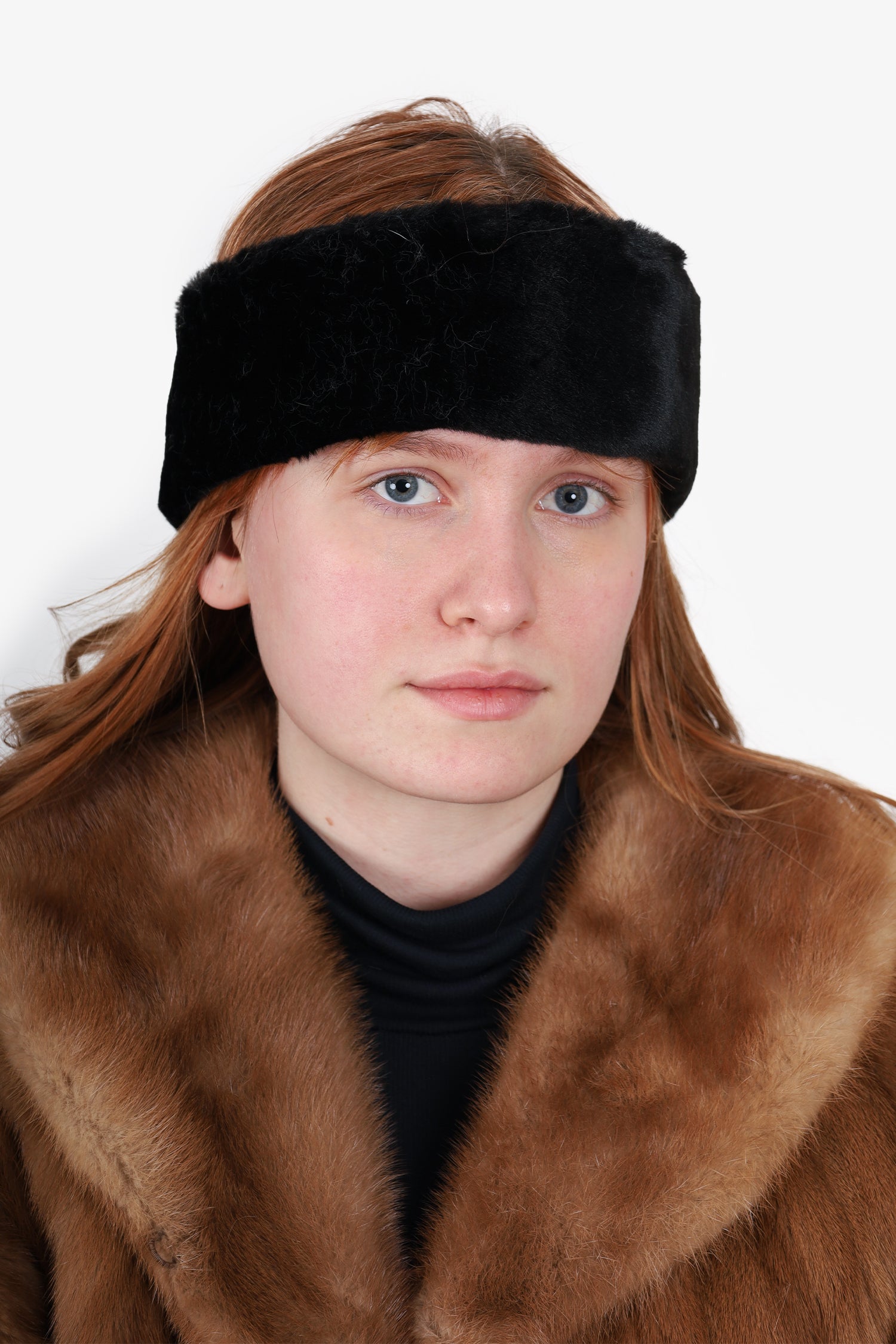 Vintage Black Faux Fur Headband Head Wrap Size 2