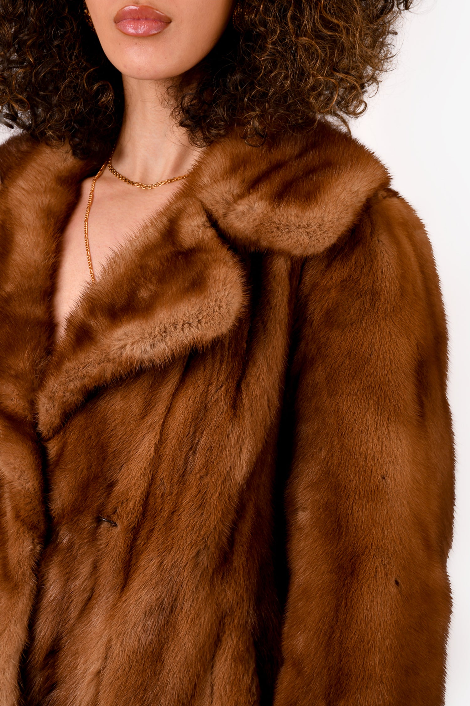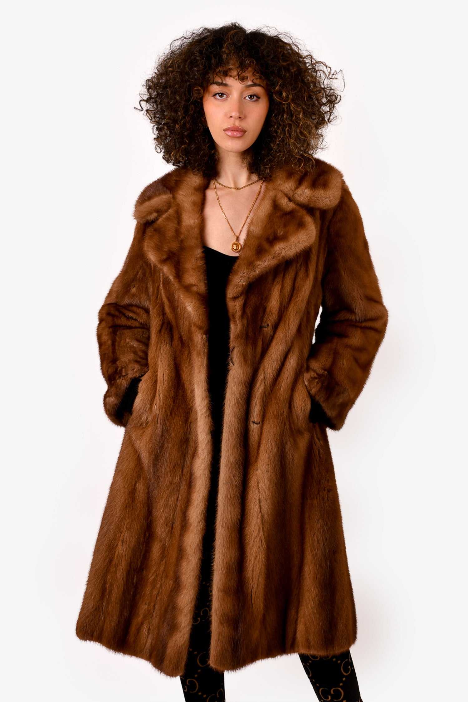 Refresh availabilityVintage Brown Canadian Demi Buff Mink Fur Coat. 1 interior slip pocket. 2 exterior slip pockets. Lined.