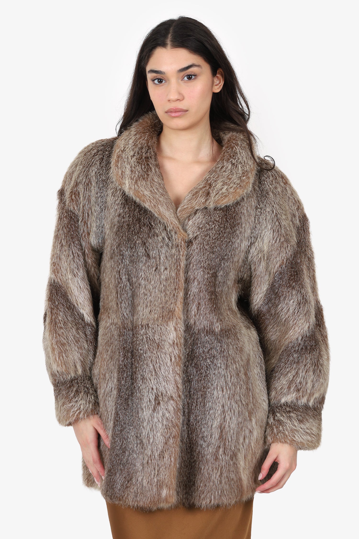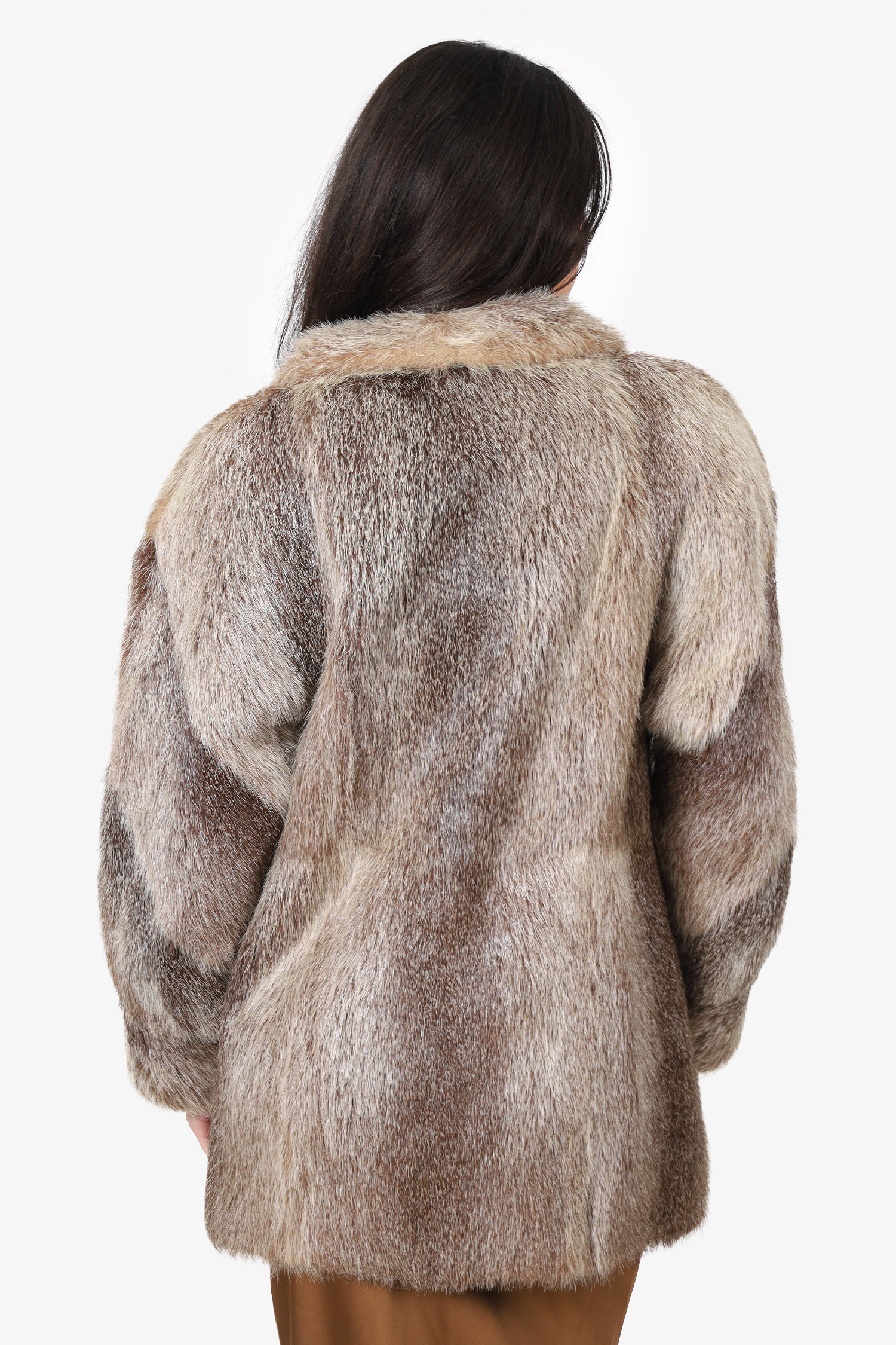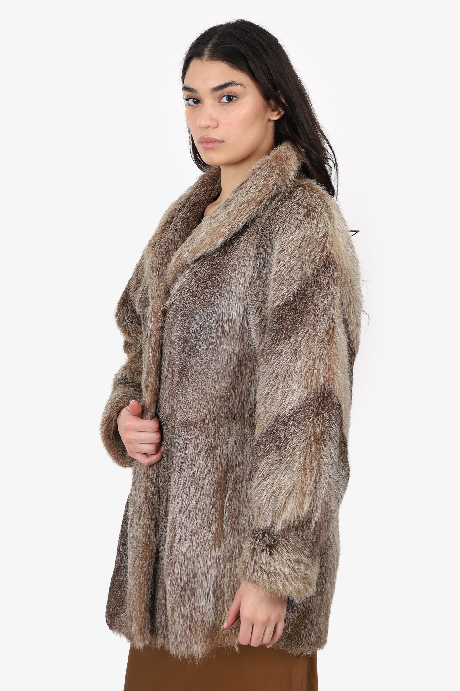 Refresh availabilityVintage Brown Fur Coat. Slip-on. Collared neckline. Front hook closure. 2 exterior slip pockets. Lined interior. Tonal stitching.