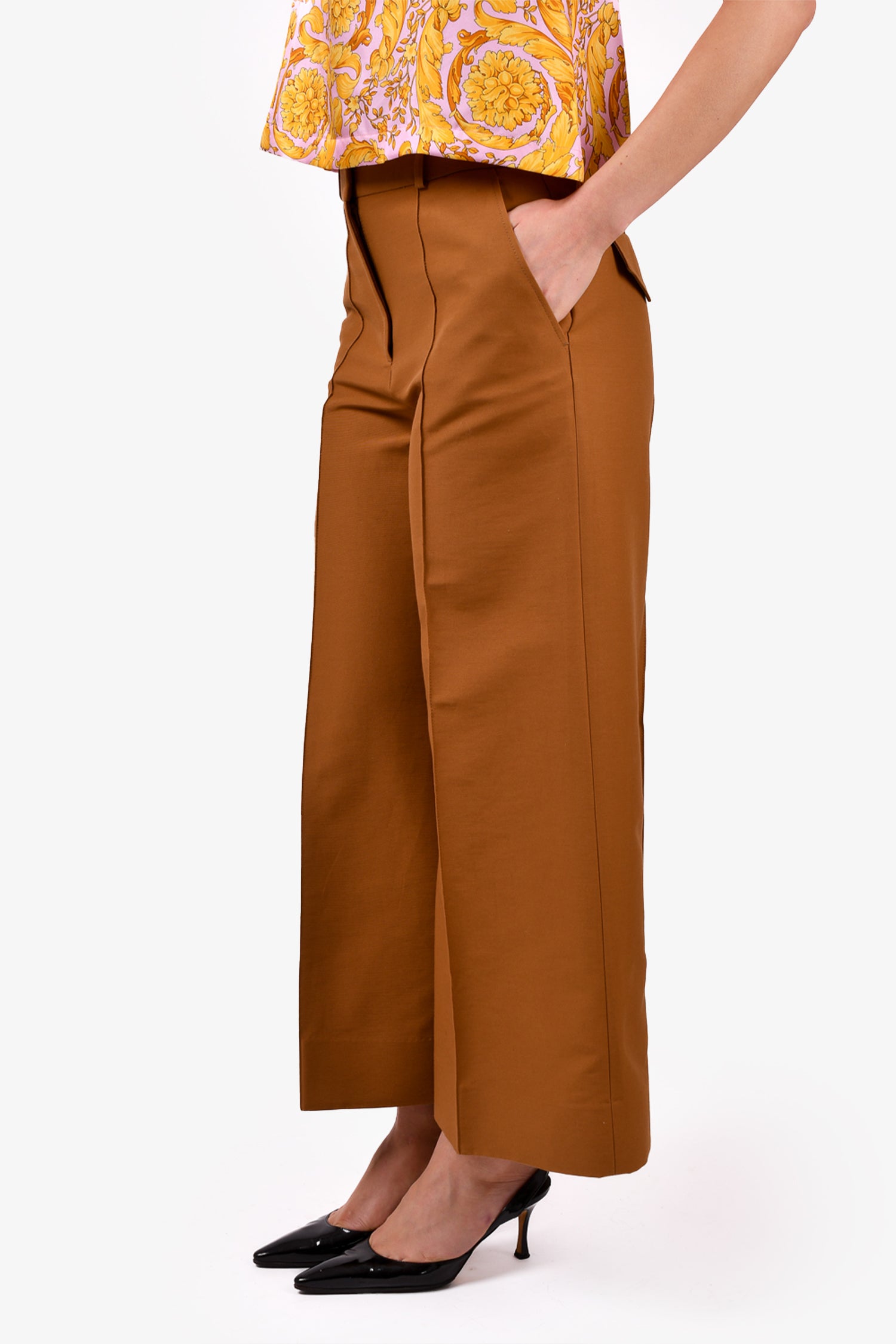 Refresh availabilityVVB Victoria Beckham Brown Wide Legged Pants. Front zip, hook and button closure. Front pockets. Waist belt loops. Tonal stitching.