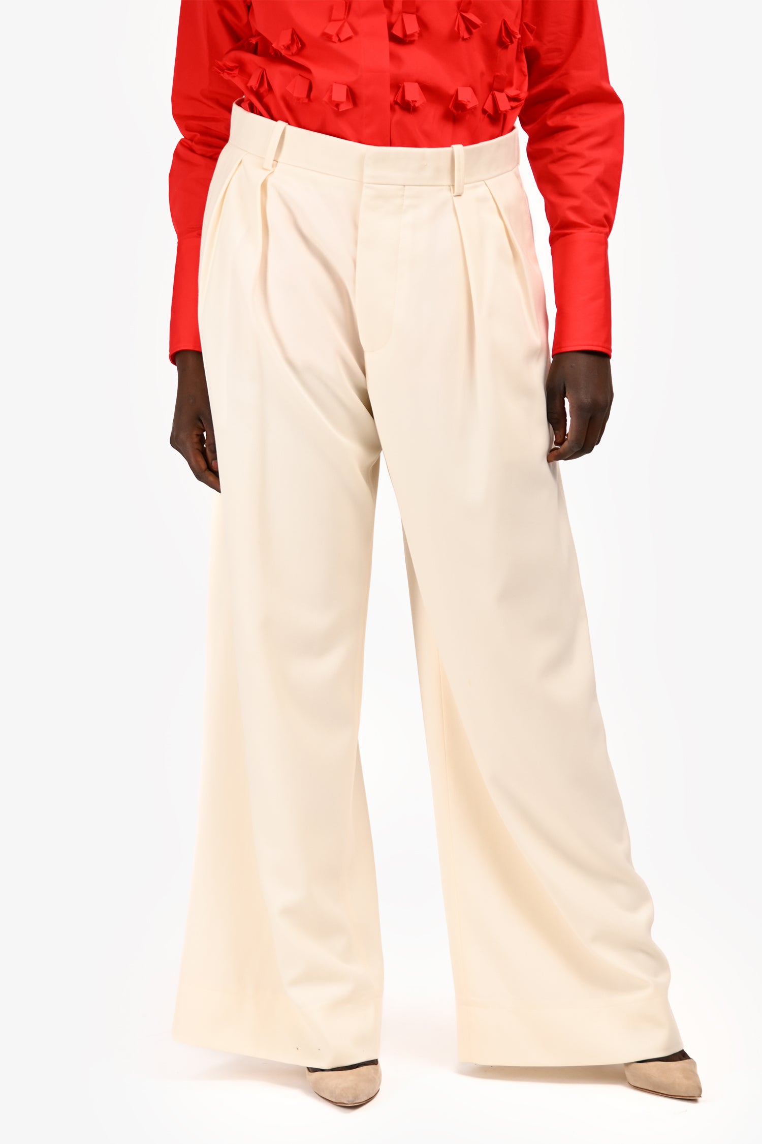 Wardrobe NYC White Wool Wide Leg Trousers Size L