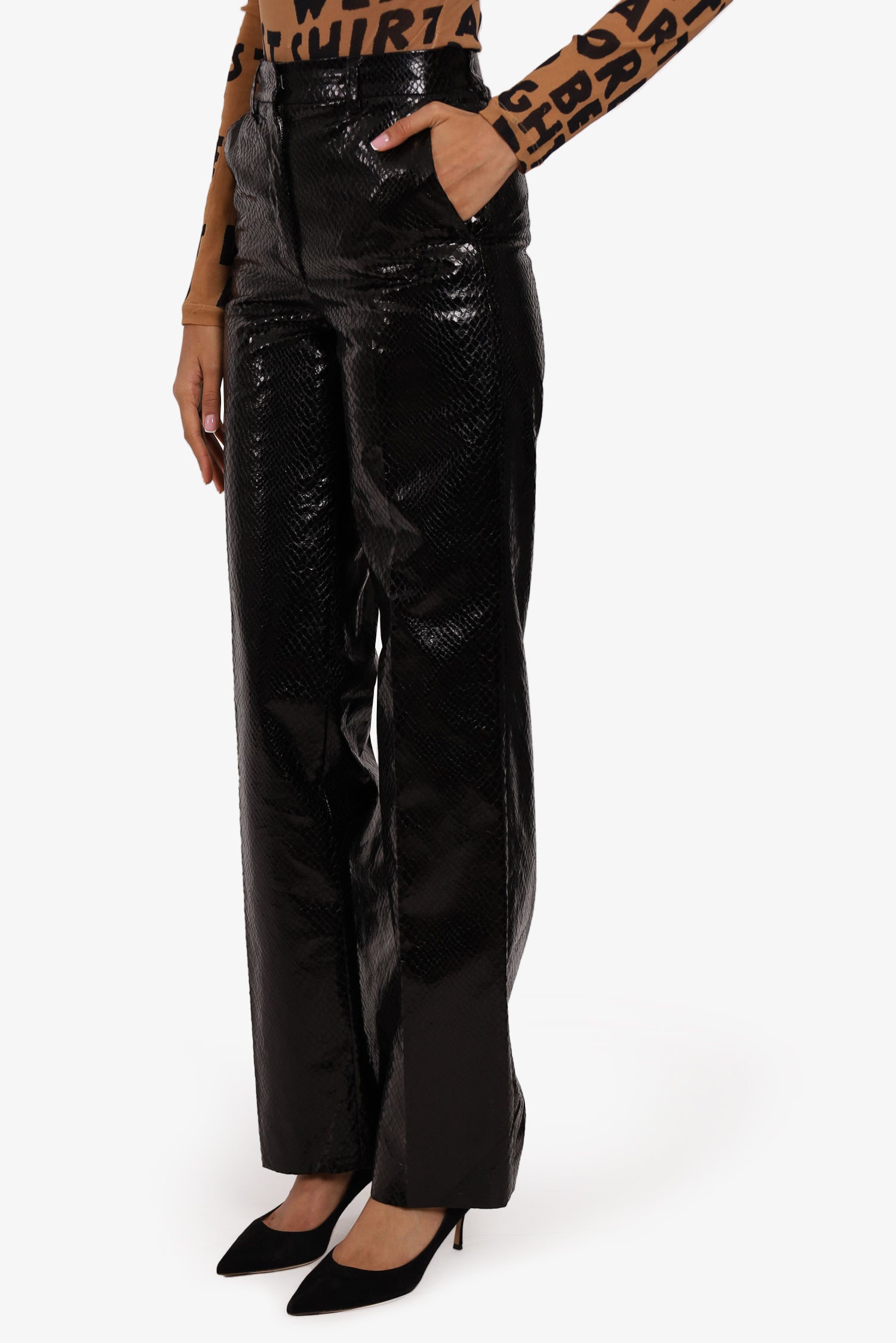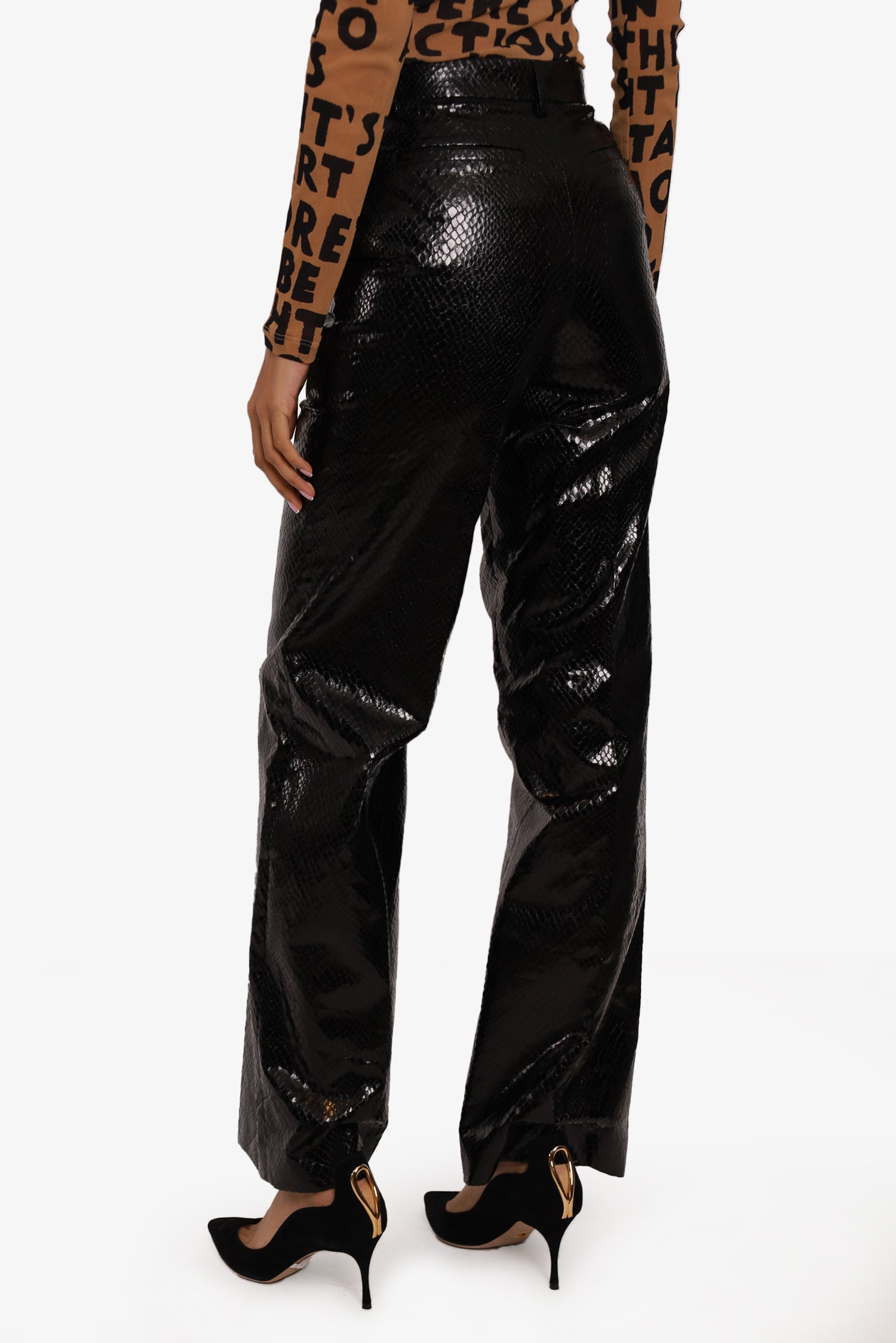 Refresh availabilityWe11Done Black Snake Print Leather Pants. Button and zip fly. Four pockets; 2 front, 2 rear.