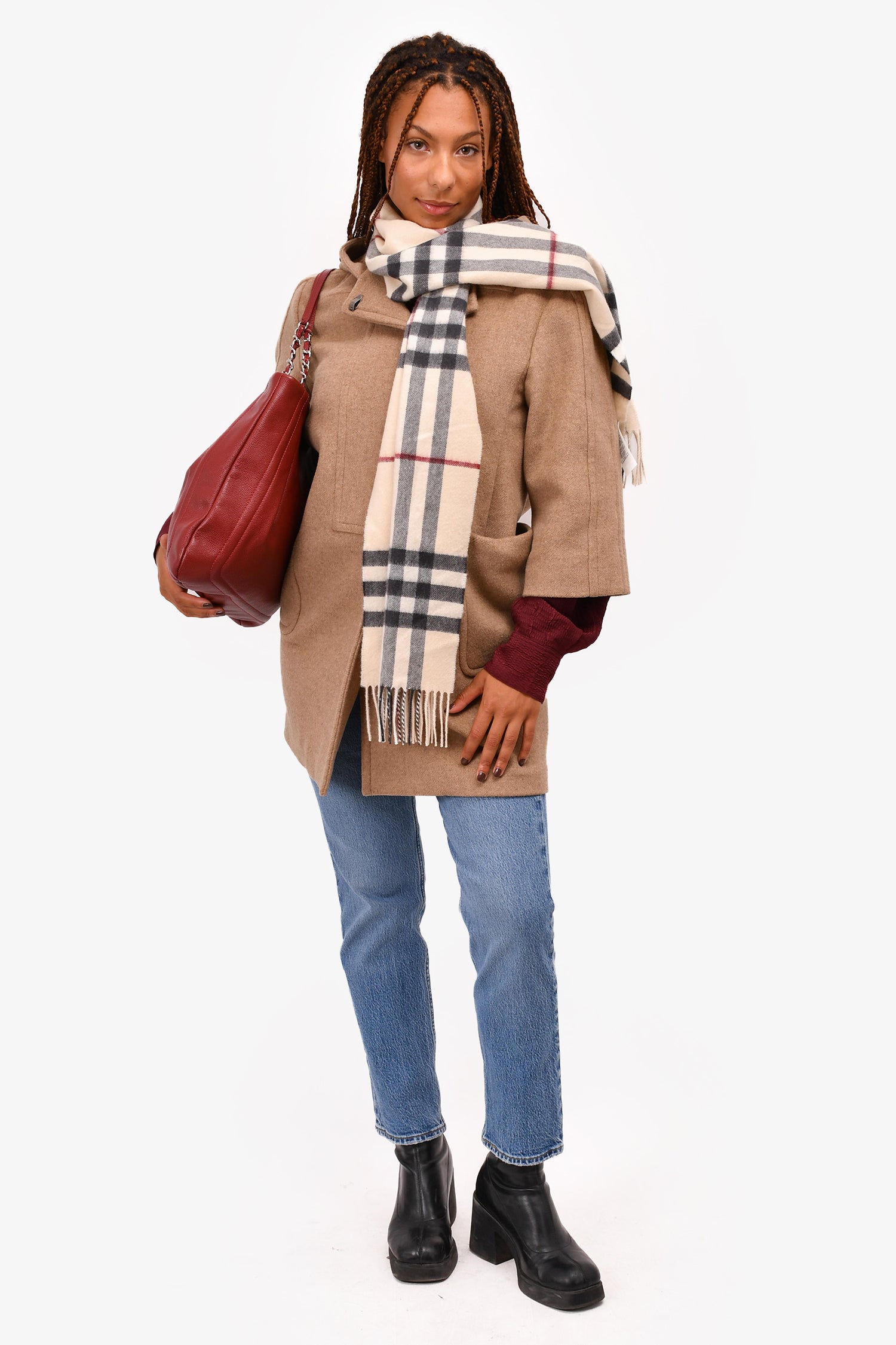 Weekend Max Mara Beige Virgin Wool 3/4 Sleeve Peacoat Size 8 US