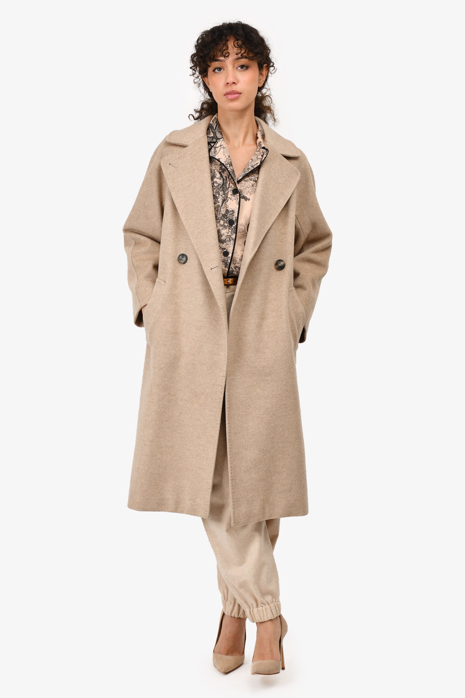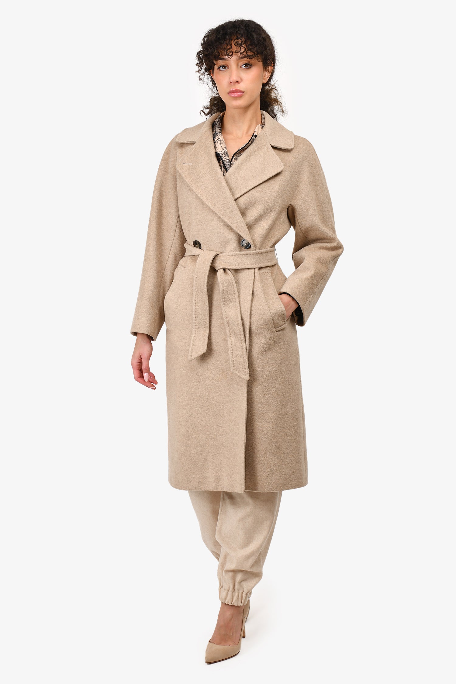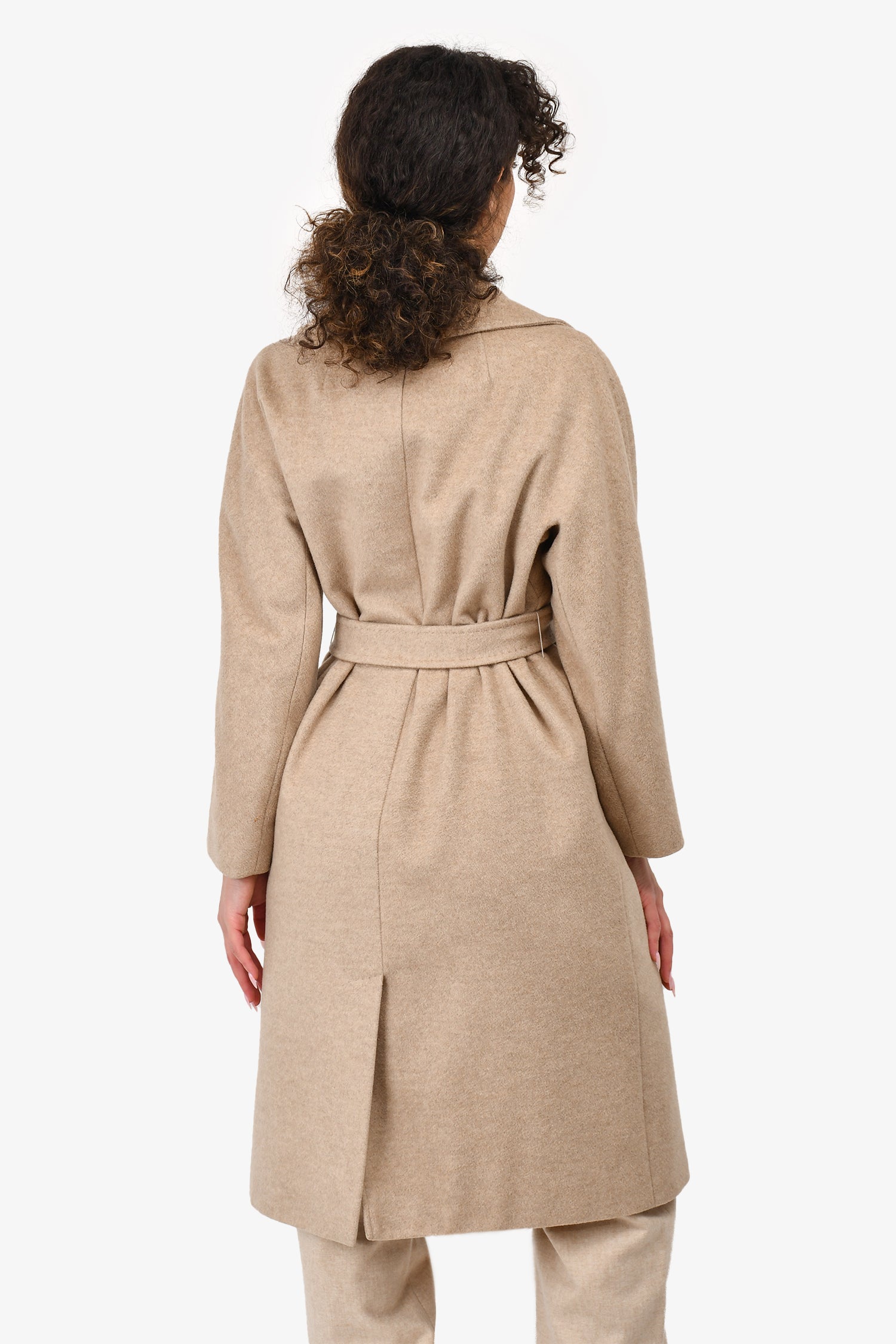 Refresh availabilityWeekend Max Mara Beige Wool Belted Coat. Long sleeved. Lined. Front button closure. Tonal stitching.