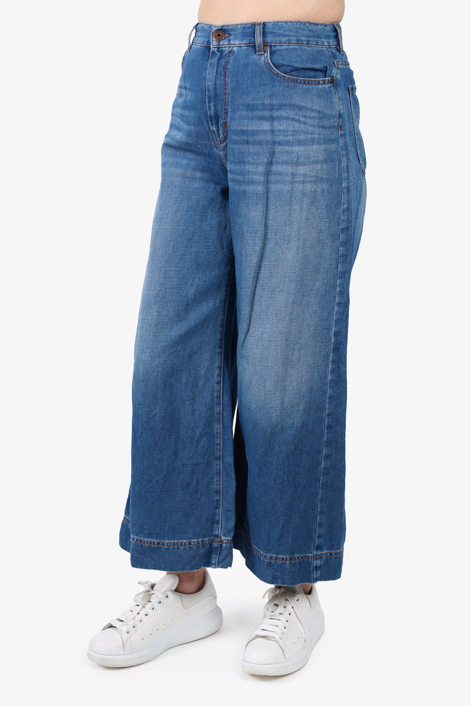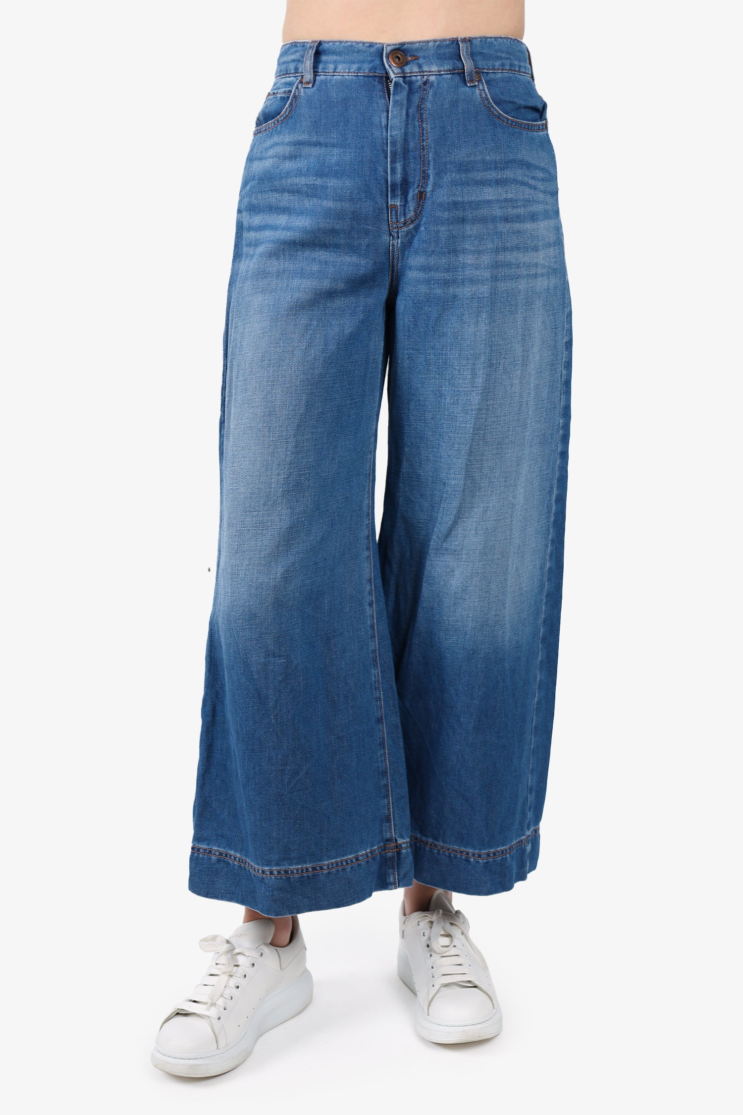 Refresh availabilityWeekend Max Mara Blue Denim Wide Leg Jeans. Dual side open pockets. Dual back open pockets. Tonal stitching.