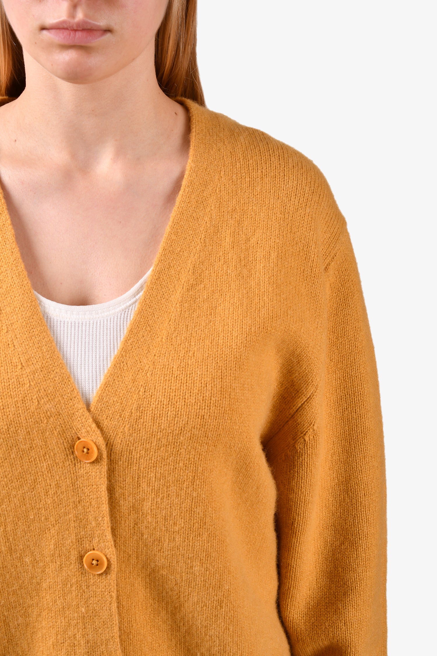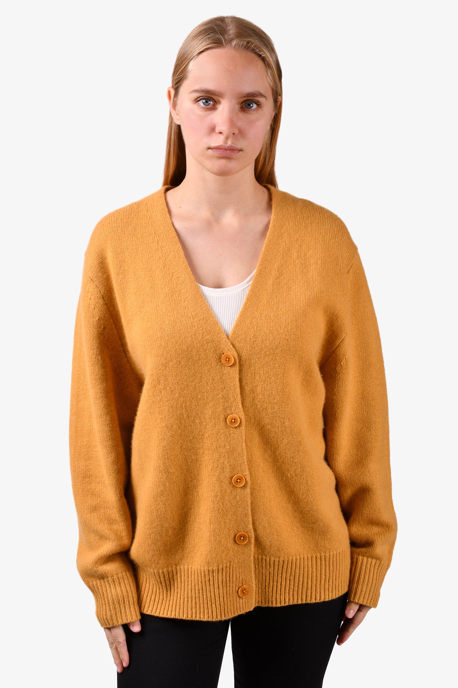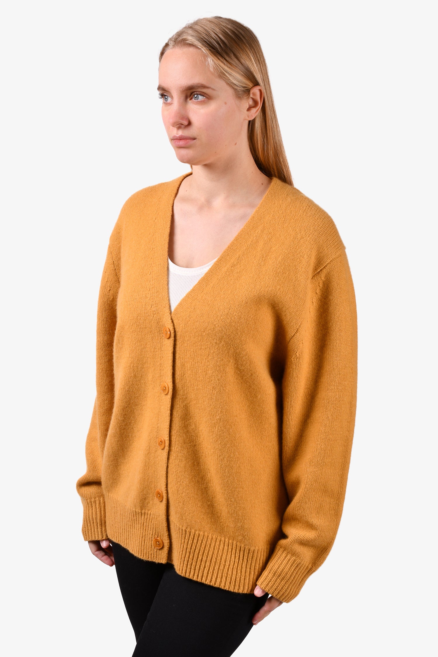 Refresh availabilityWilfred Yellow Cashmere Cardigan. Front button-up closure. Ribbed cuffs and hem. Tonal stitching.