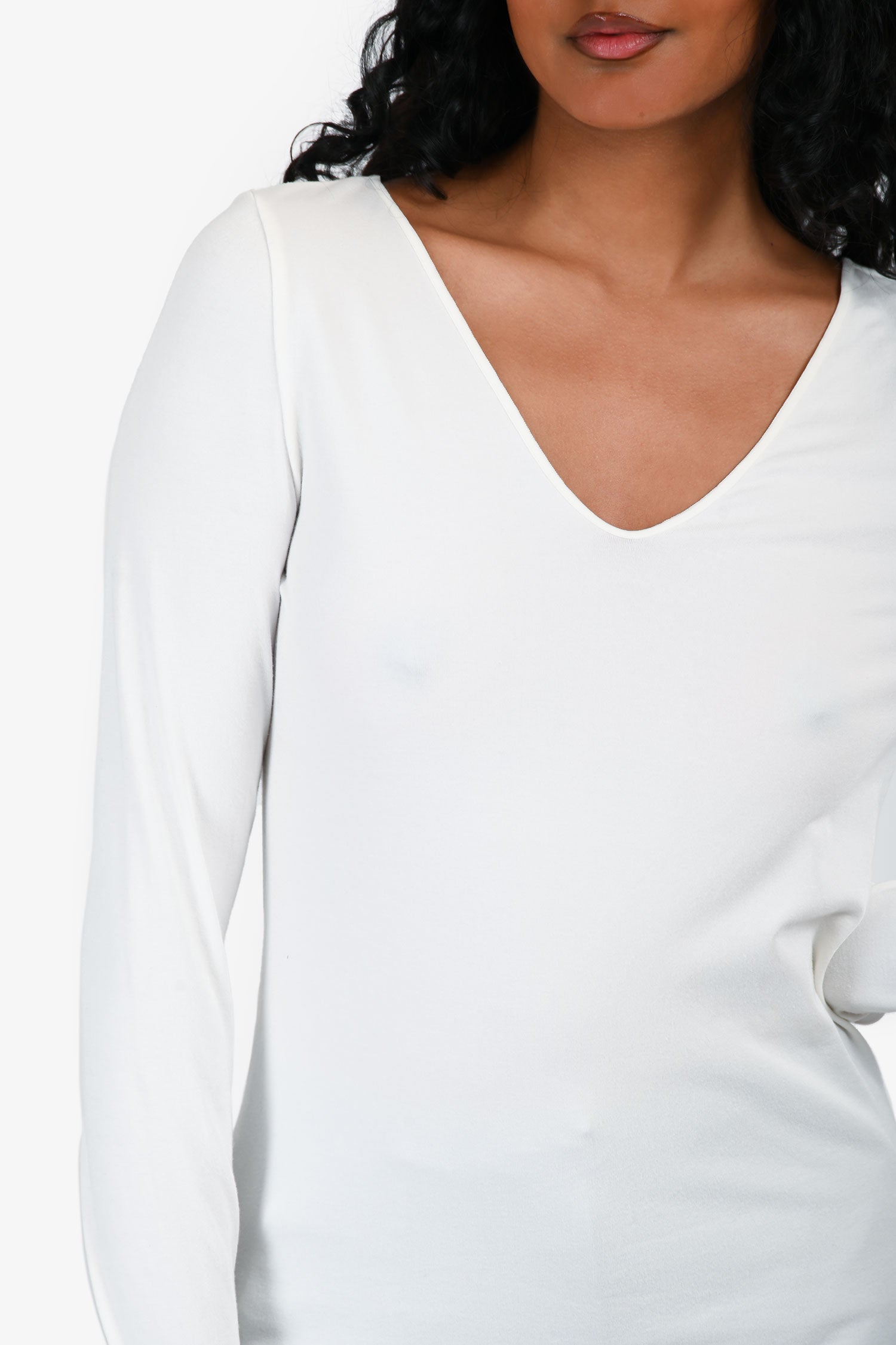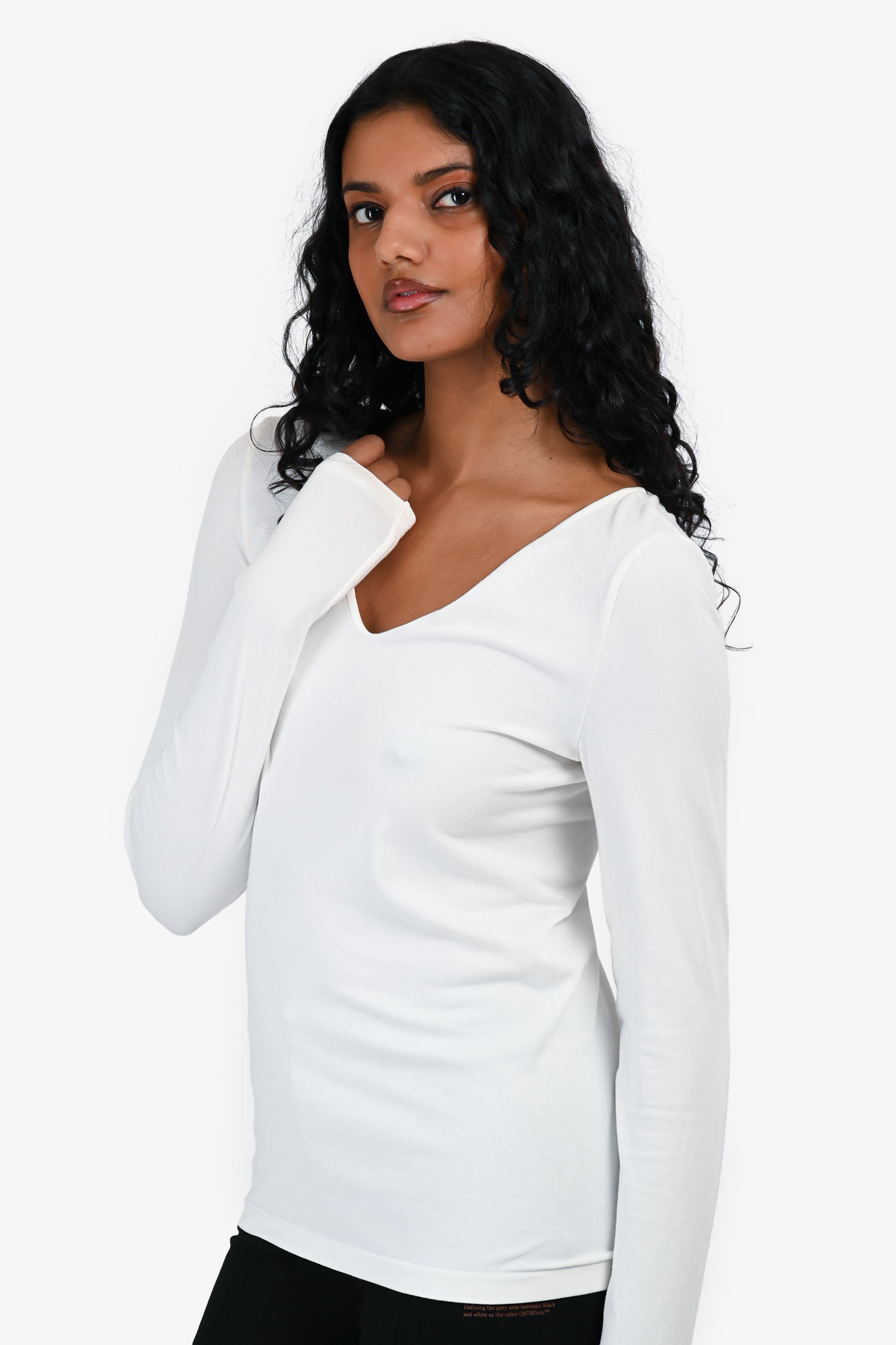 Refresh availabilityWolford White V-Neck Long Sleeve Top. Pull-on. Tonal stitching.
