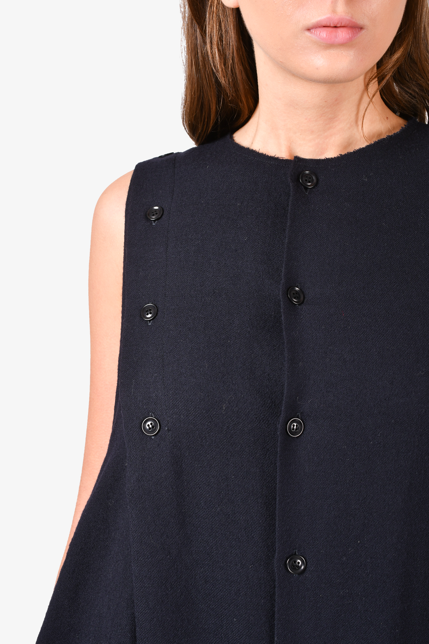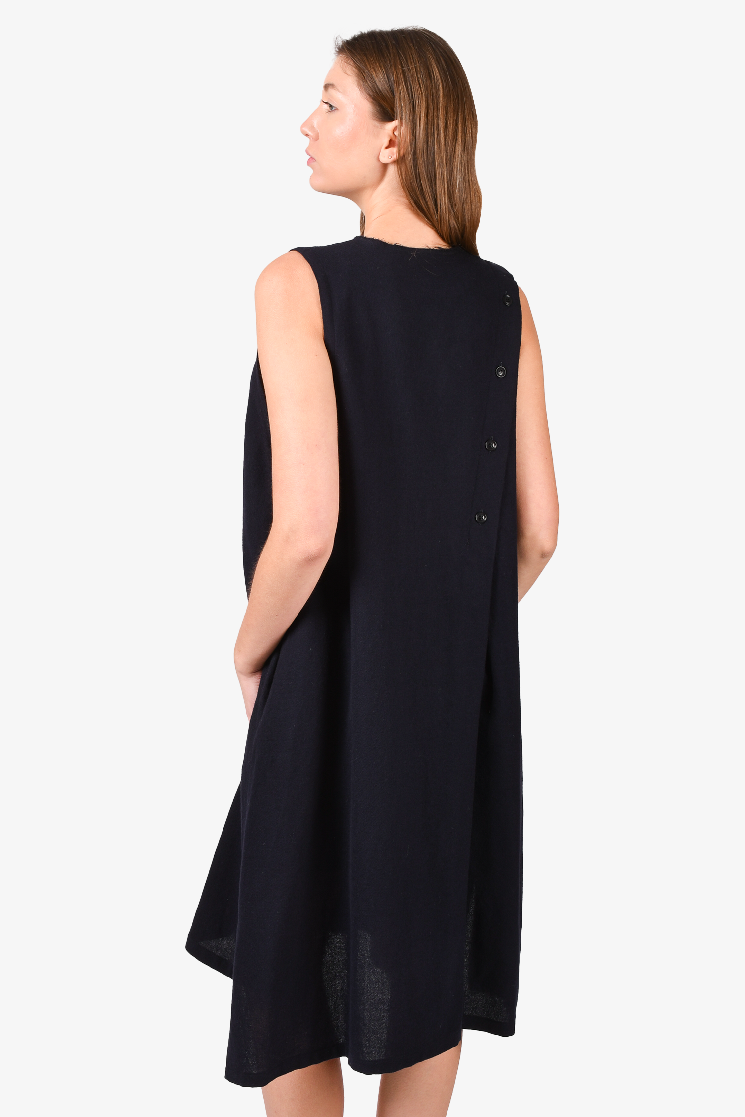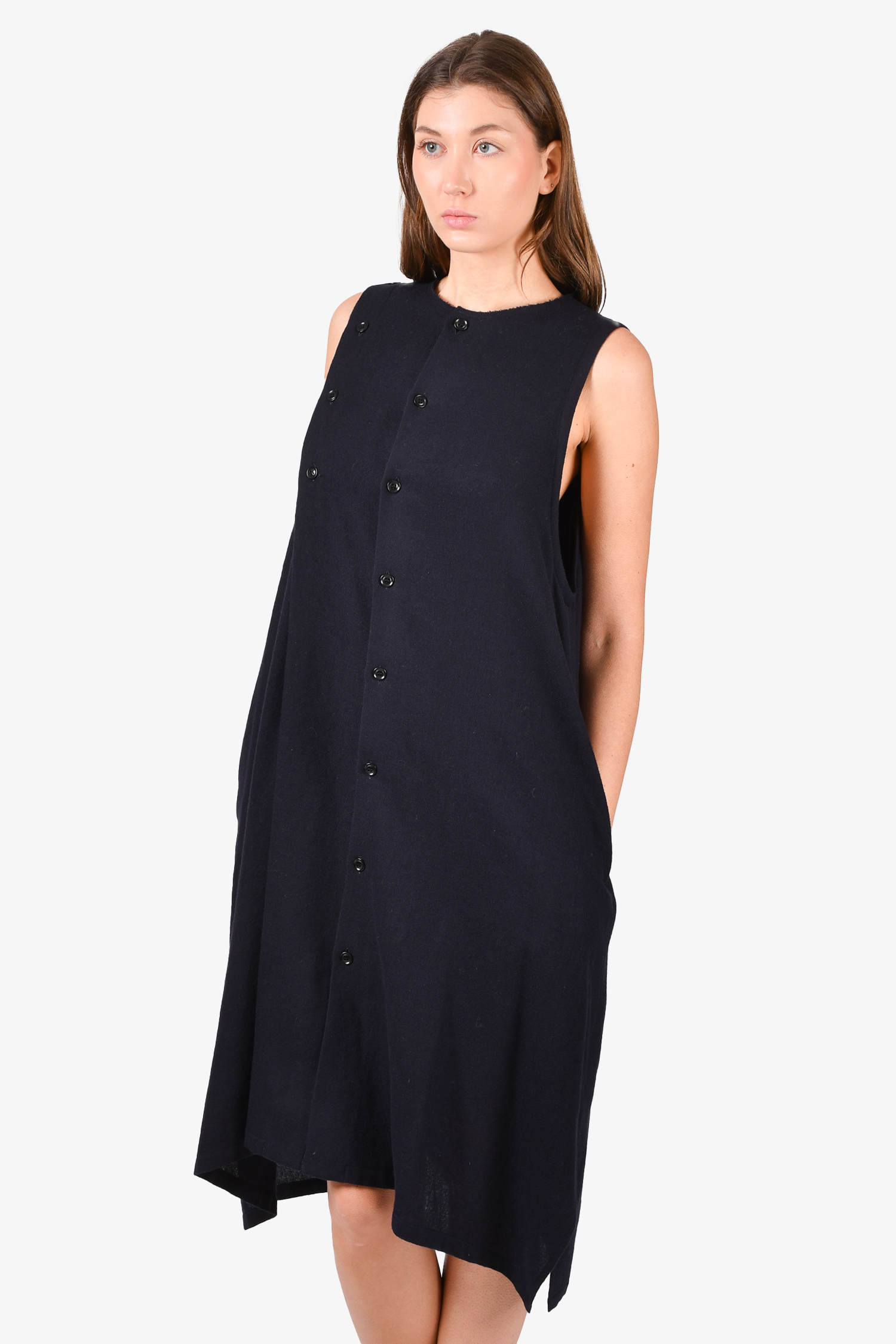 Y's by Yohji Yamamoto Navy Blue Wool Button-Up Sleeveless Midi Dress Size 1