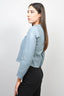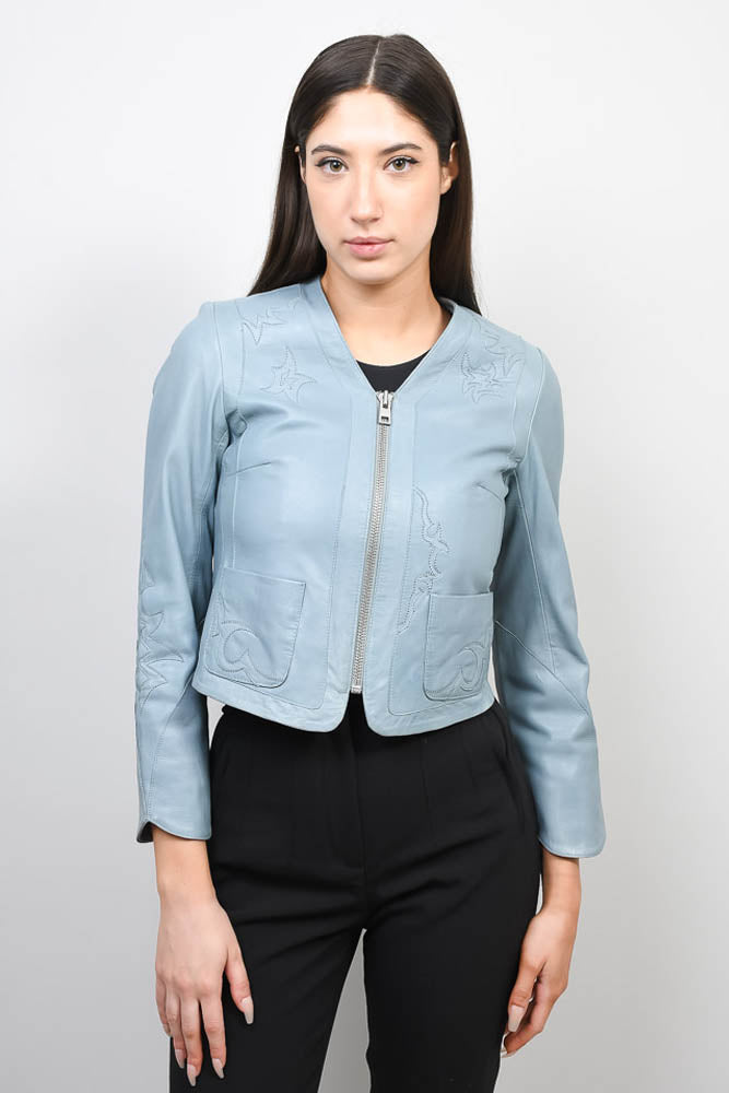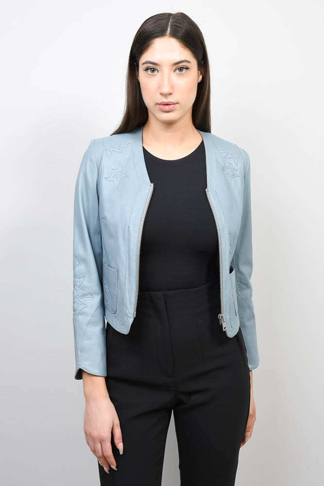Zadig & Voltaire Light Blue Leather Embroidered Zip-Up Jacket Size S