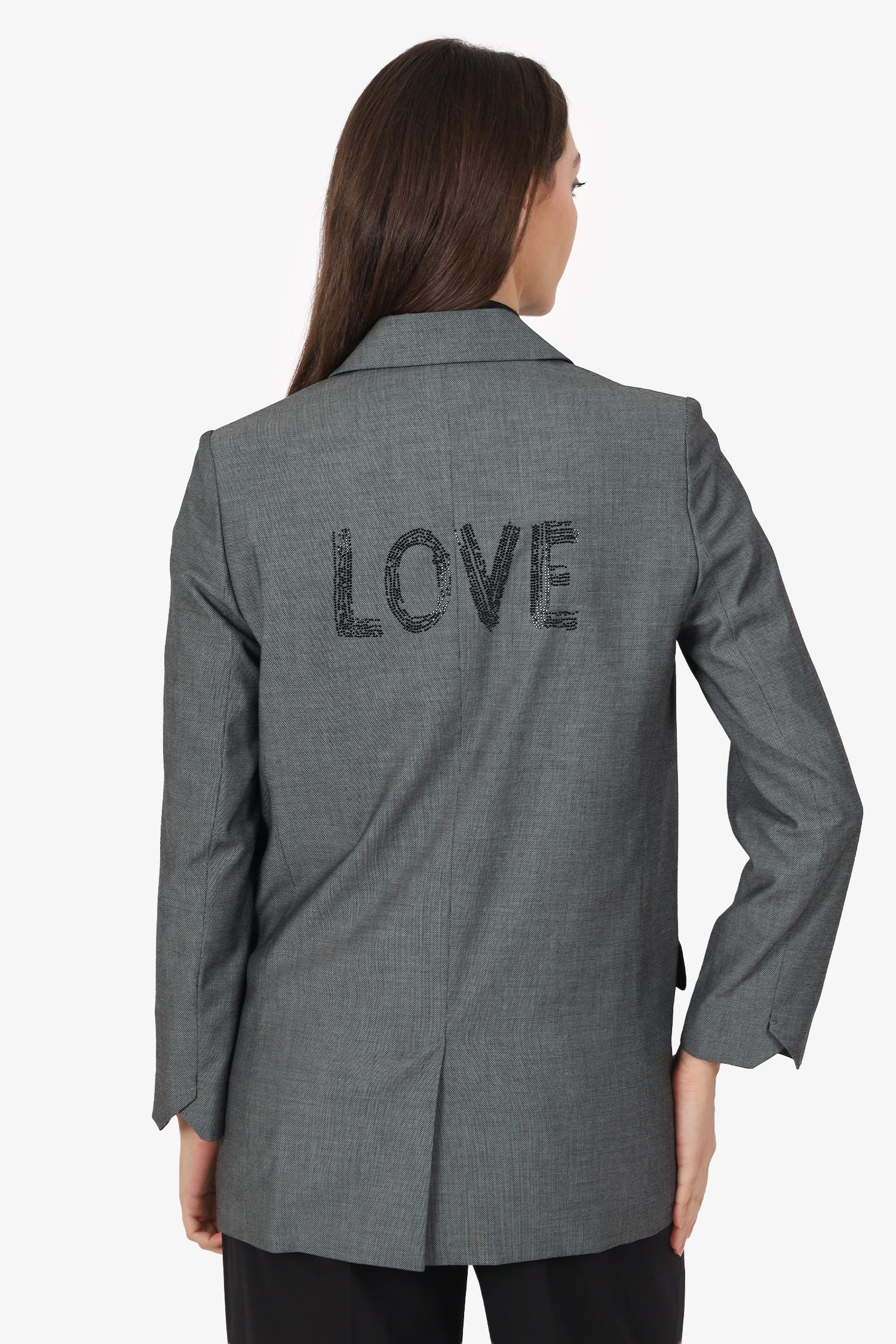 Refresh availabilityZadig & Voltaire Grey 'Love' Single Breasted Blazer. Pull-on. Notch lapel. Front button-up closure. Padding to shoulders. 2 exterior front-fold-over-flap pockets. Rear slit. Lined interior with single slip pocket.