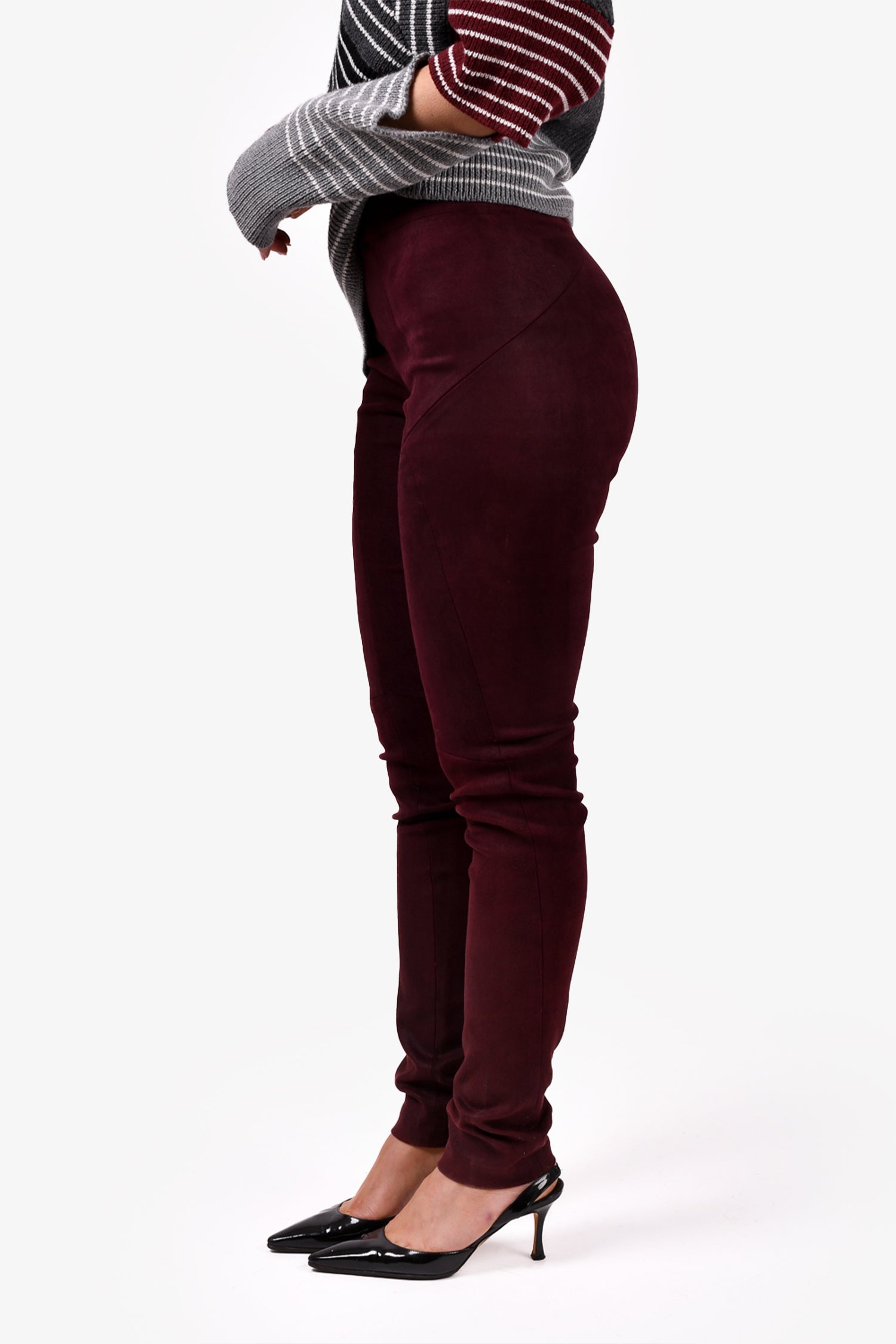 Refresh availabilityZero + Maria Cornejo Burgundy Suede Leggings. Elasticized waist. Lined. Tonal stitching.