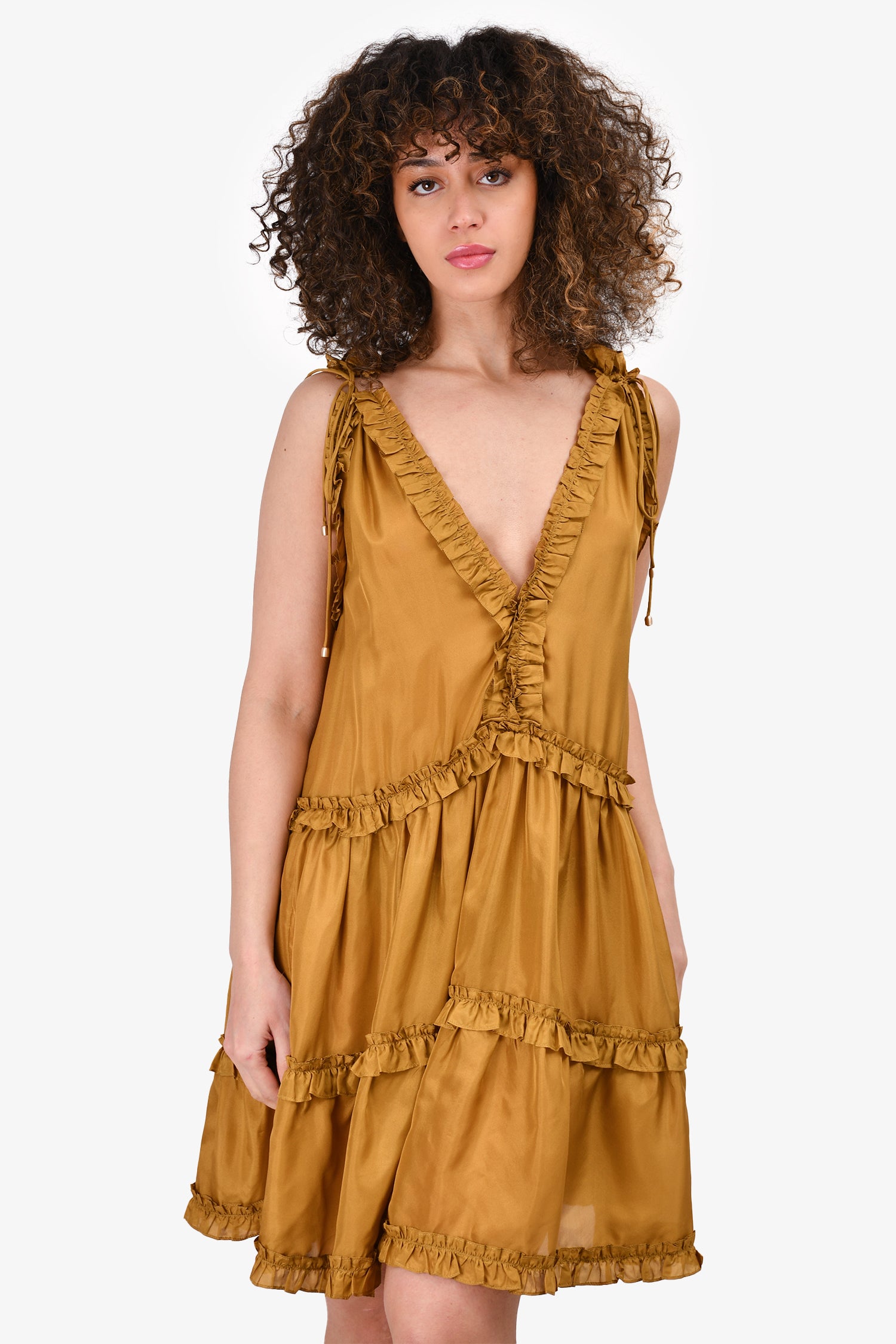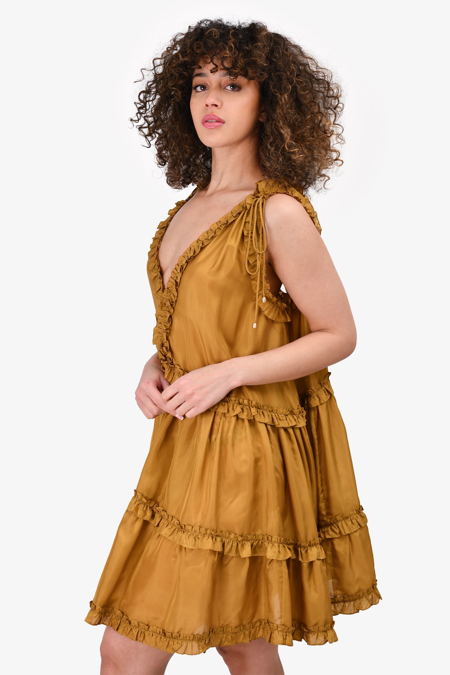 Refresh availabilityZimmerman Gold Tiered Sleeveless Mini Dress. V-neck. Pull-on.