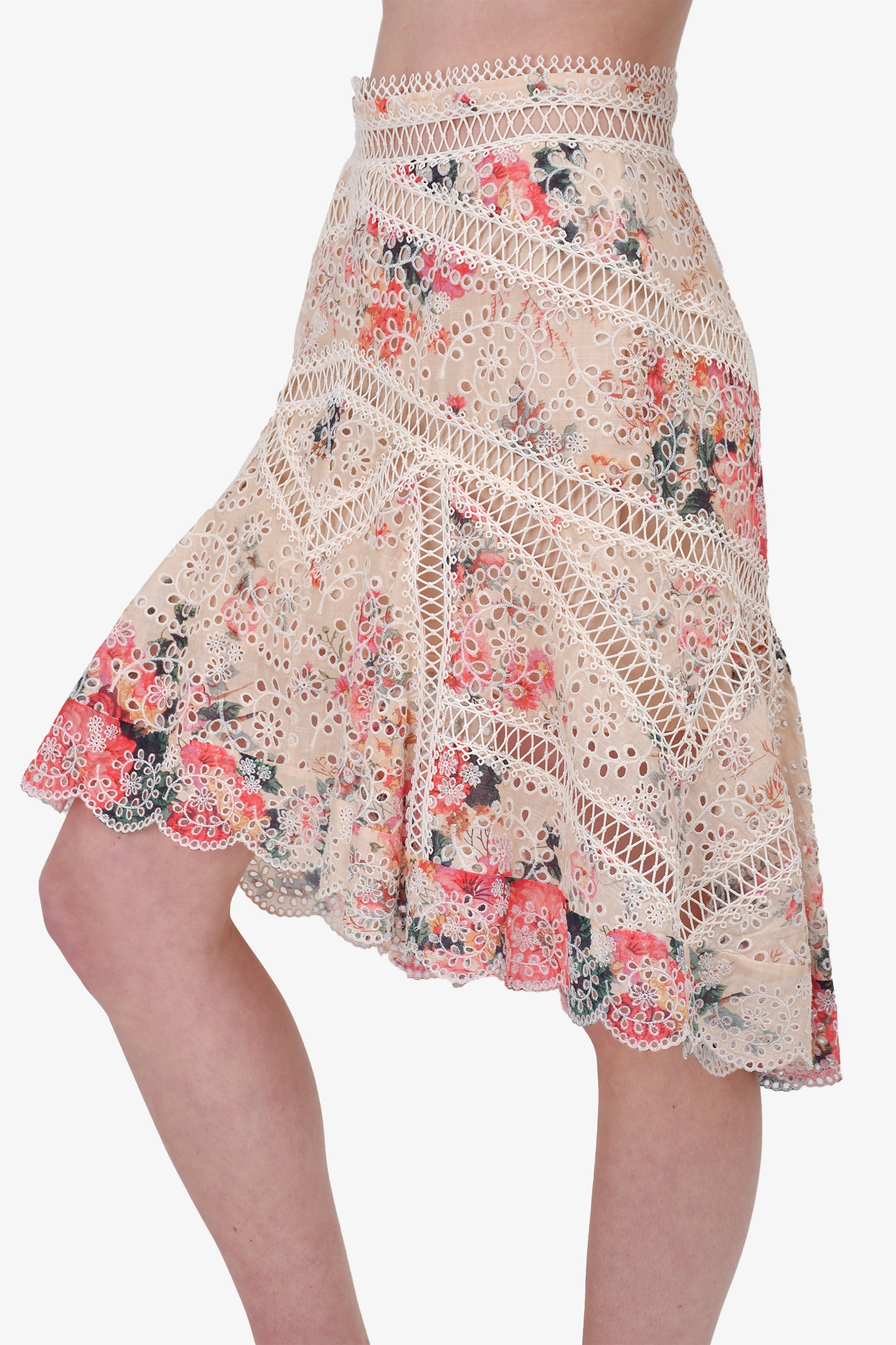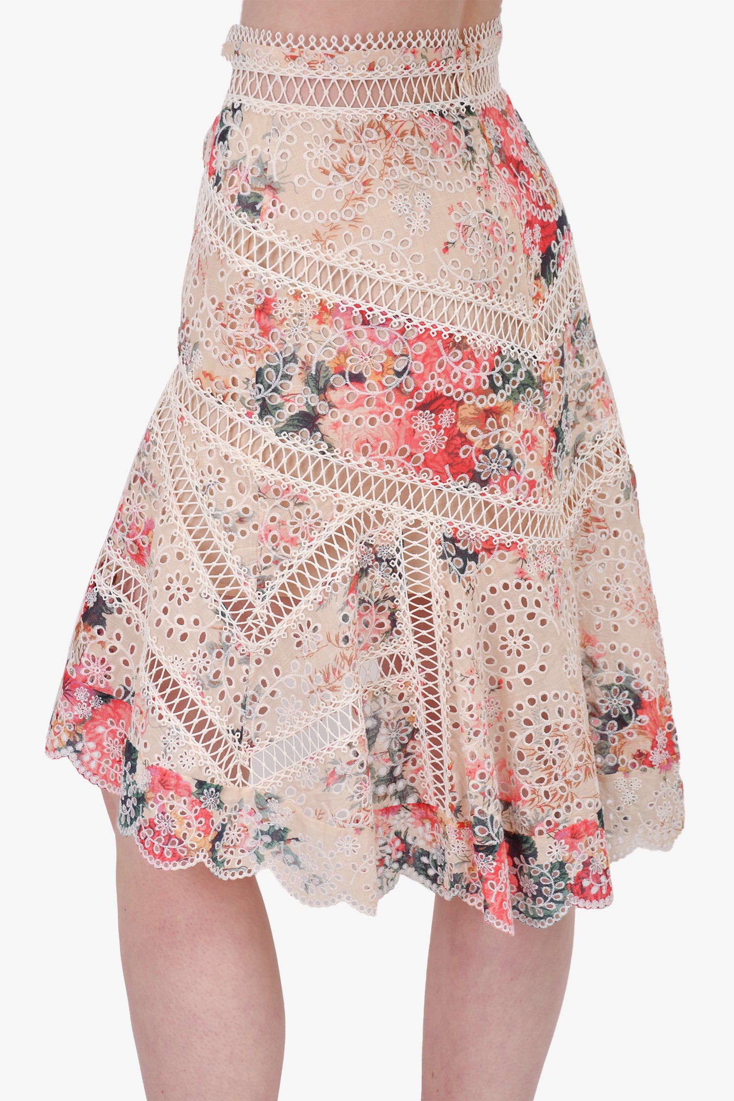 Refresh availabilityZimmerman Pink/Cream Floral Skirt. Rear zip closure. Lined. Tonal stitching.