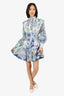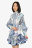 Zimmermann Blue Glassy Fluted Linen Mini Dress Size 1