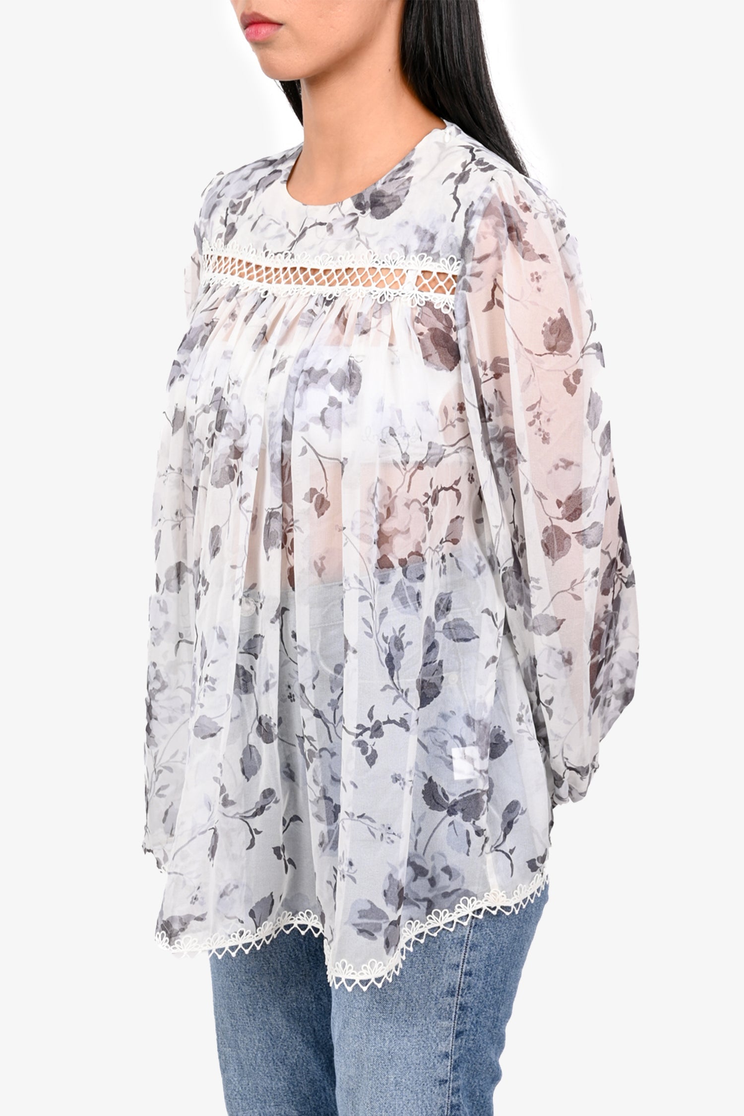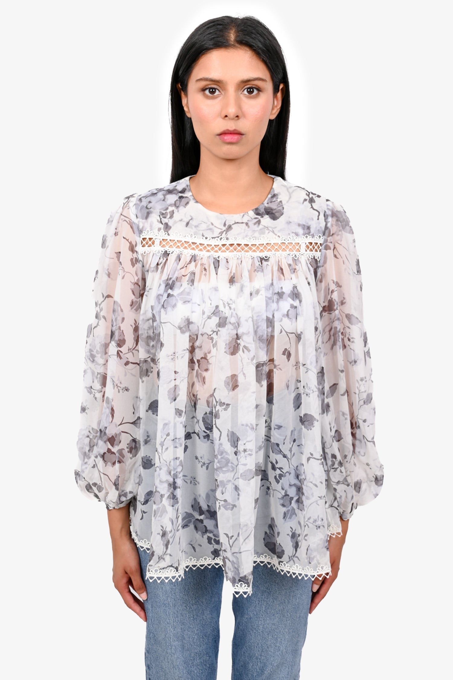 Zimmermann Grey Floral Sheer Silk Blouse Size 1