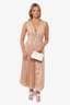 Zimmermann Nude Pleated Stripe V-Neck Maxi Dress Size 4