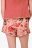 Zimmermann Pink and Red Floral Linen 'Cassia' Scallop Shorts Size 2