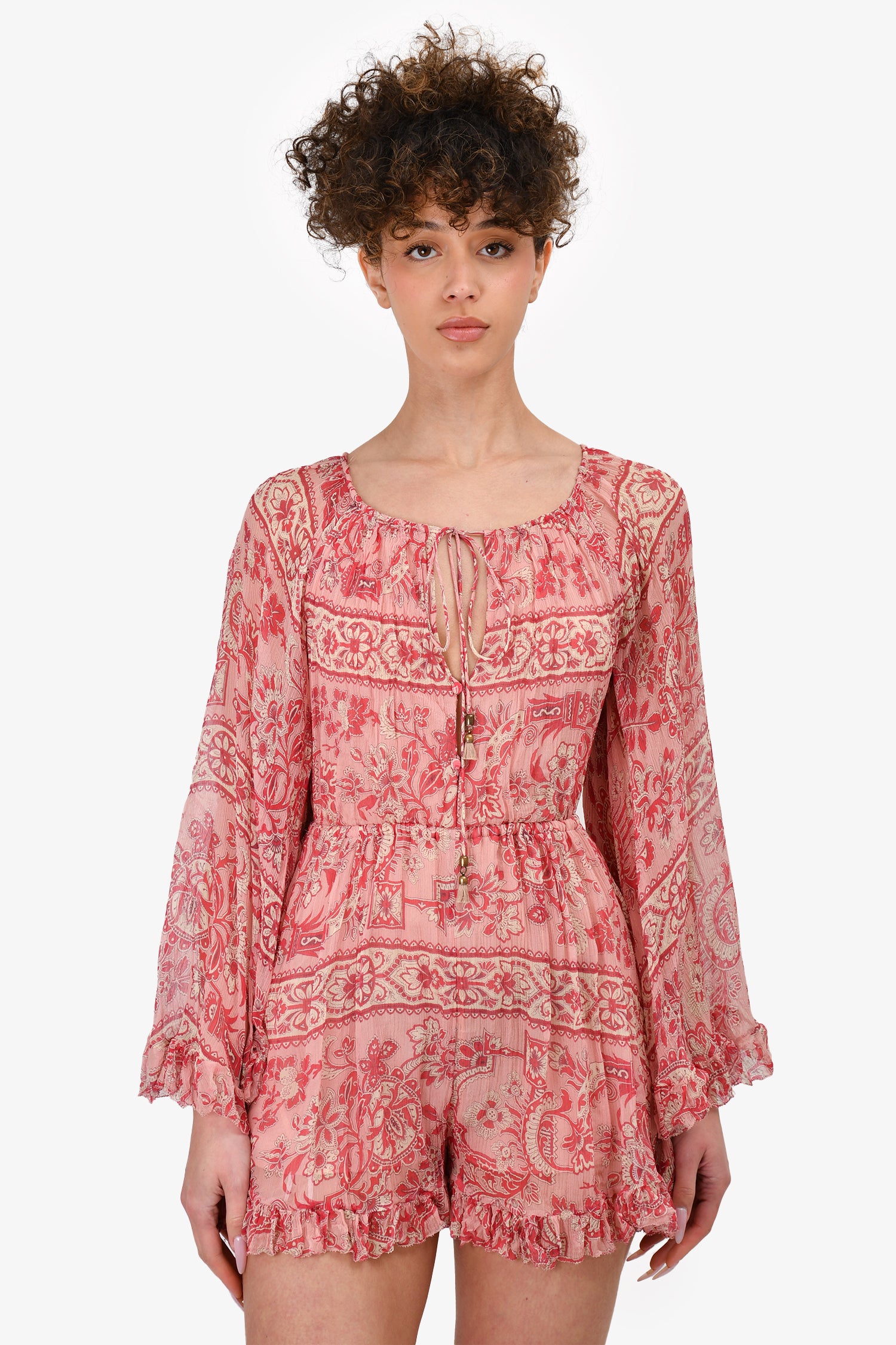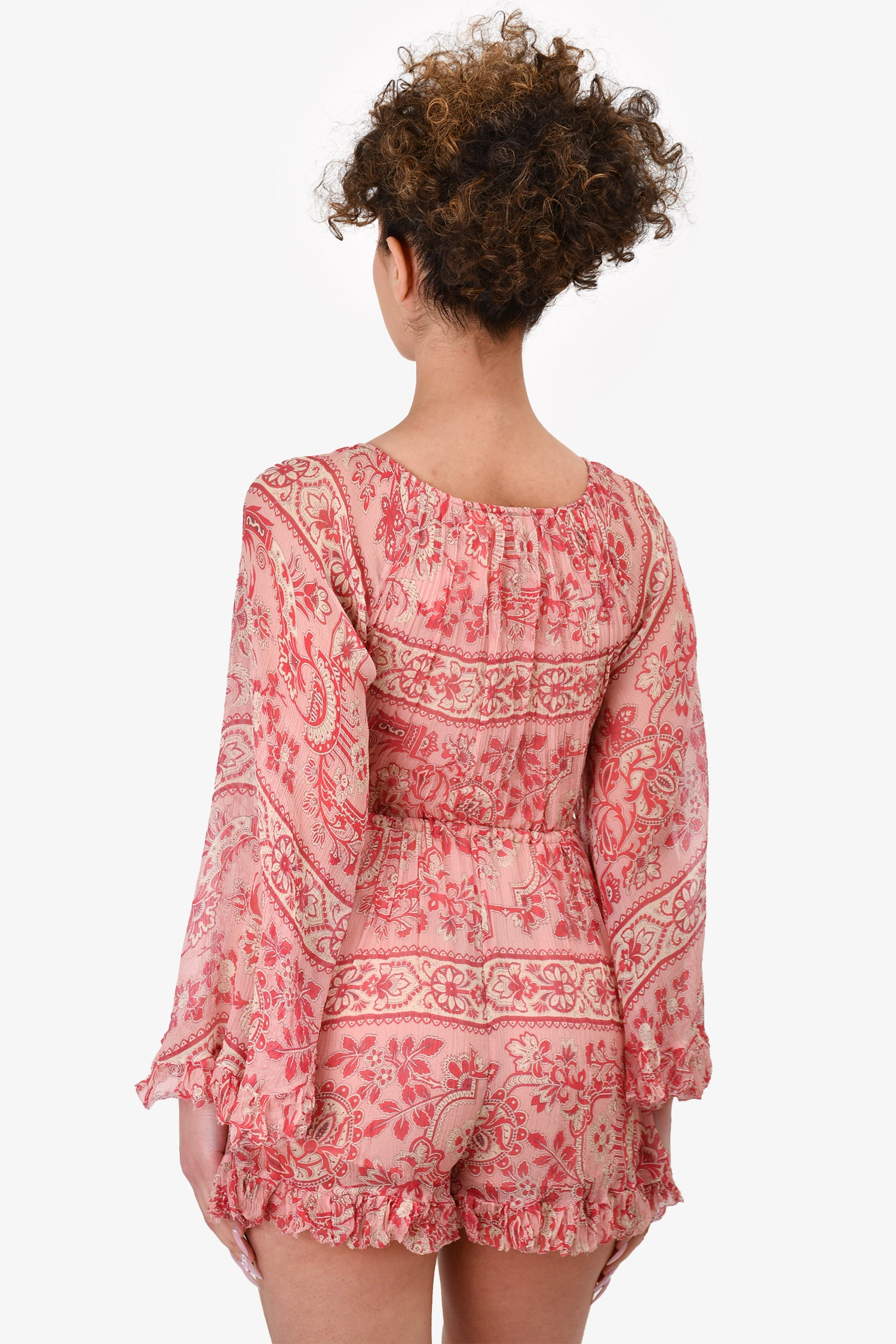 Zimmermann Red/Pink Silk Patterned Romper Size 0