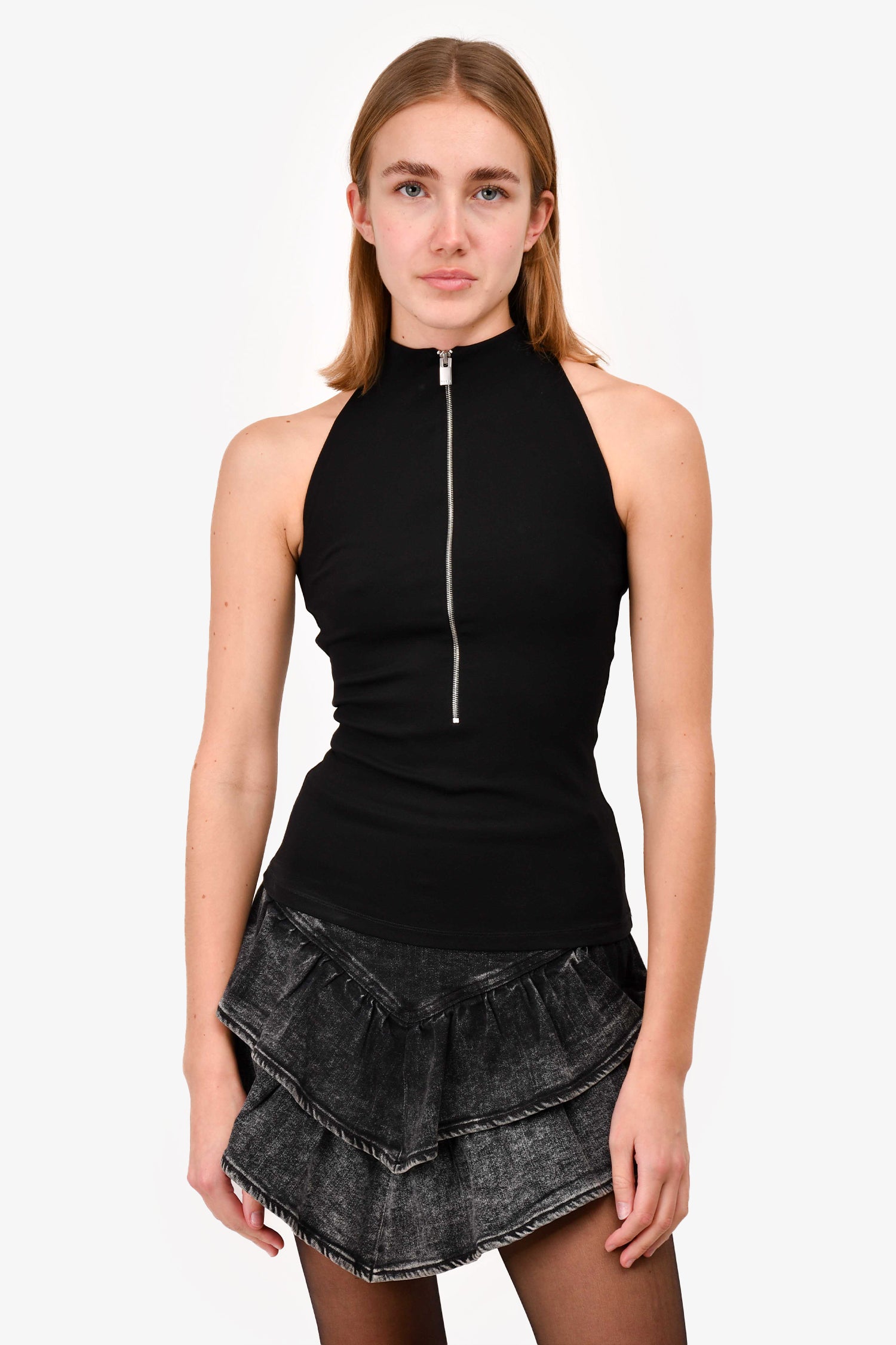 Refresh availability1017 ALYX 9SM Black Half Zip Sleeveless Mockneck Top. Silver-tone hardware. Tonal stitching.